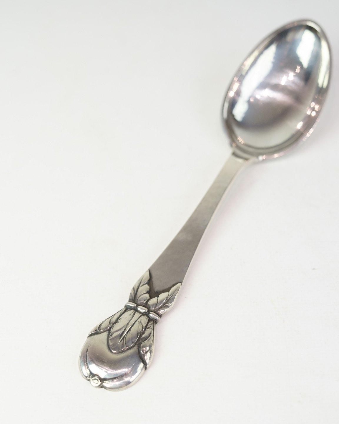 Spiseske fra A.C. Illum, København. Tretårnet sølv stemplet 825, ca. midt 1900-tallet. Længde 20 cm. Illum var kendt for høj kvalitet.— Oprindelse: Danmark, København