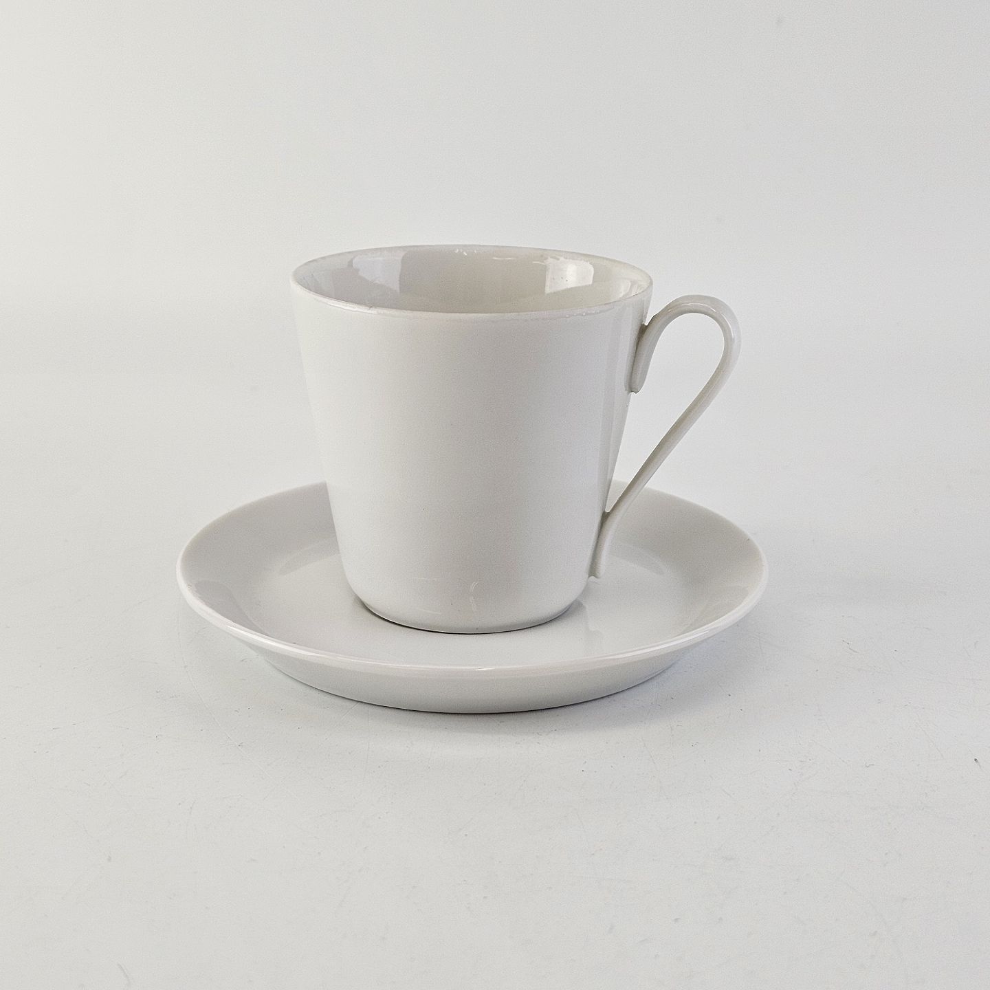Mokkakop med underkop i porcelæn fra stellet Hvid GlasurfarvetProducent Porcelænsfabrikken Danmark, Lyngby