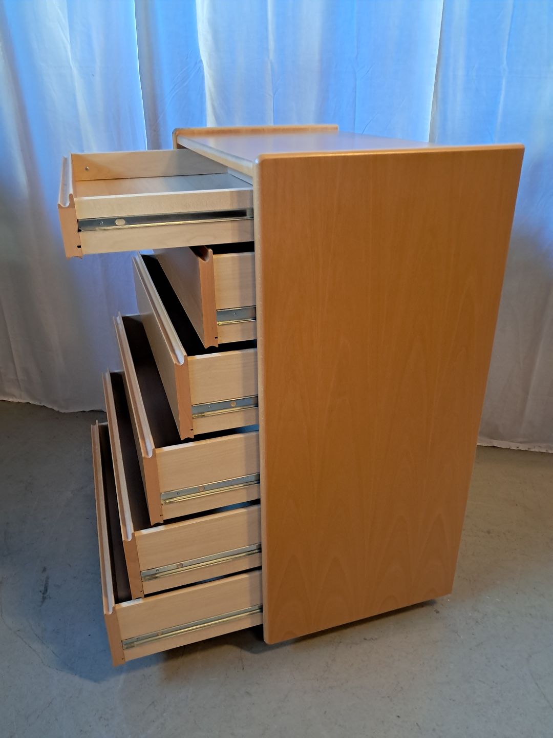 Kommode i fineret bøgetræ, fra 2000erne.Den har brugsspor.