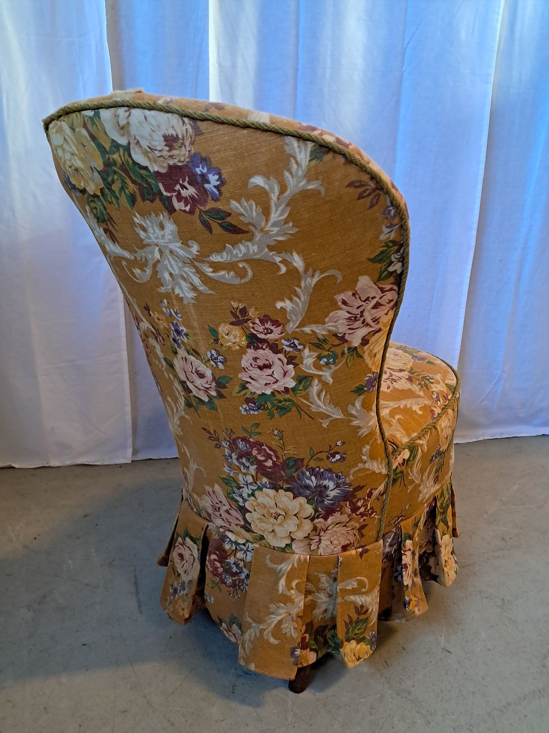 Lænestol fra 1920erne.Den har brugsspor og defekt i betrækket.