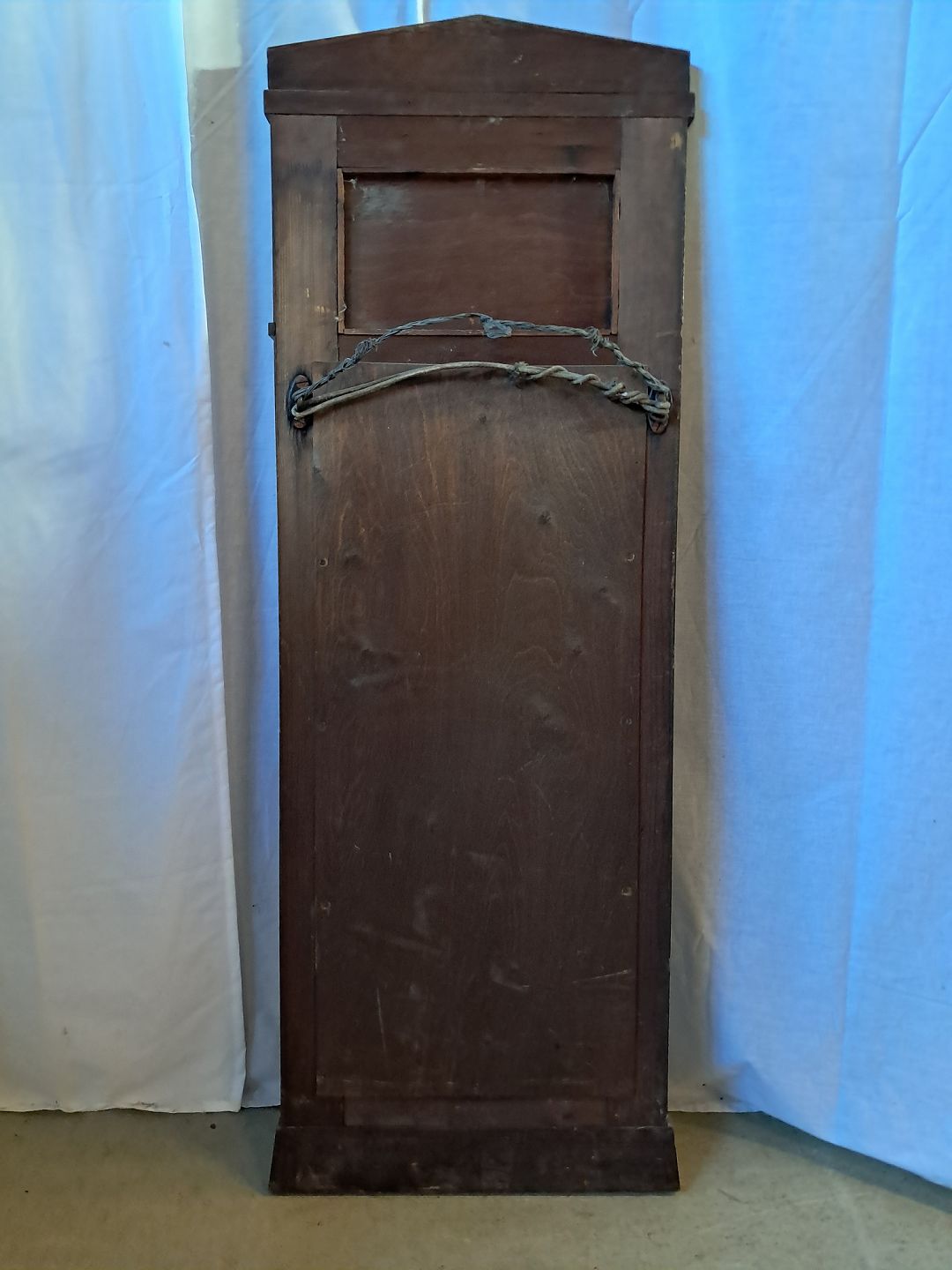 Spejl i fineret mahogni, fra 1900erne.Det har brugsspor.