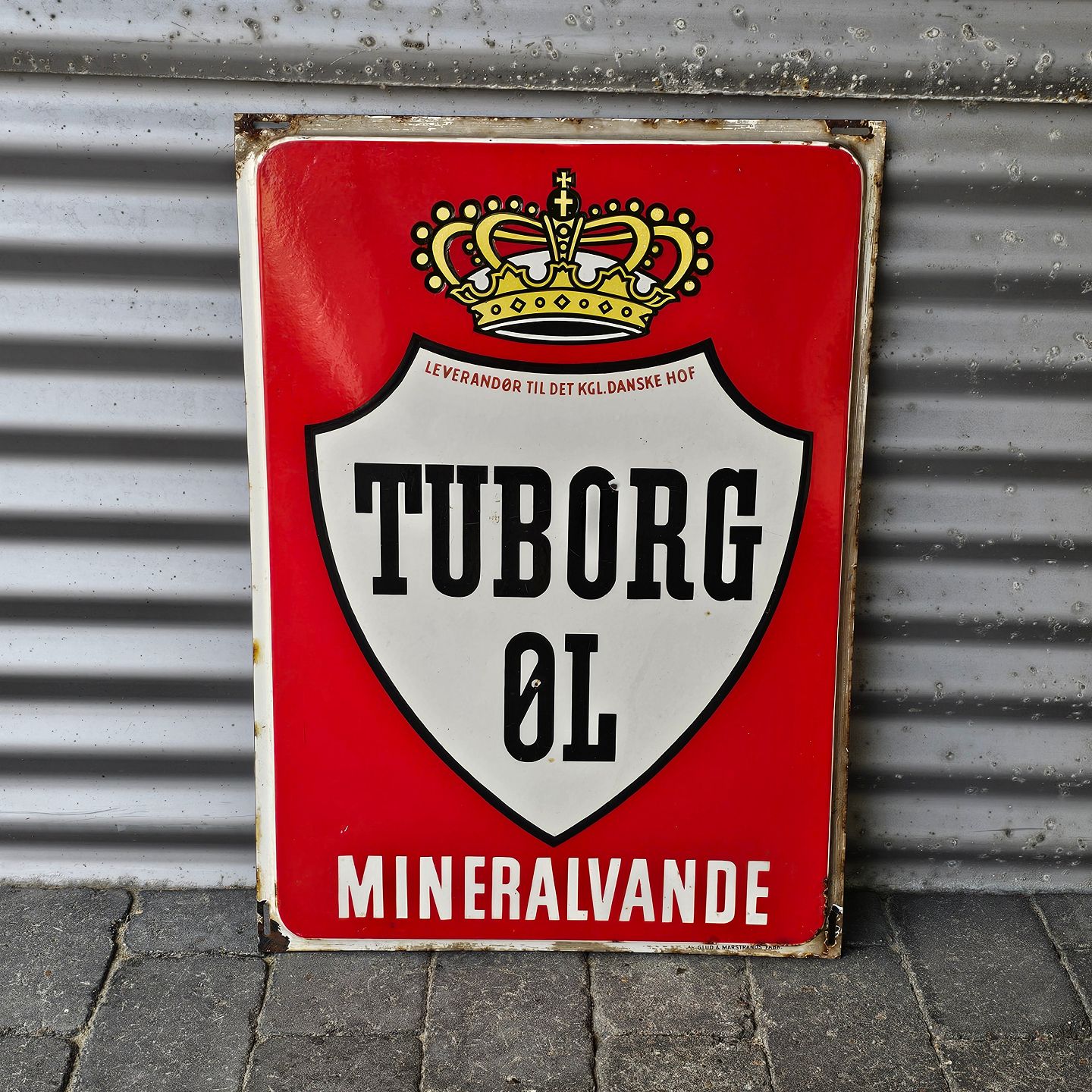 Reklameskilt i emalje fra TuborgMed teksten Leverandør til det kgl. danske hof, Tuborg øl, Mineralvande