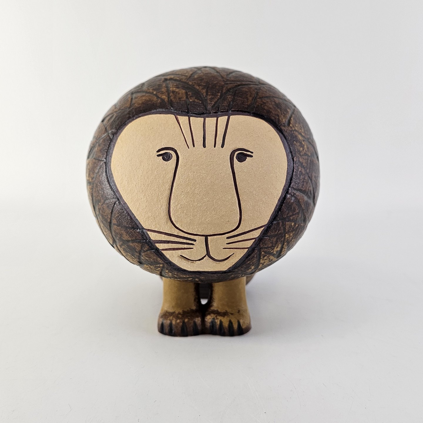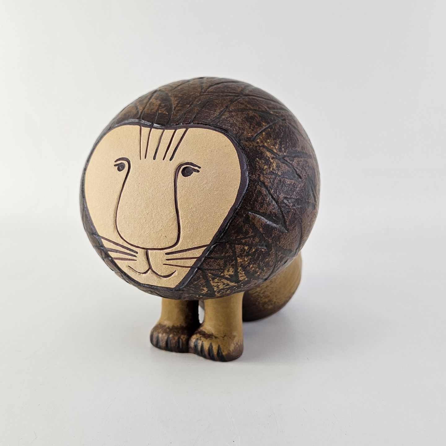 Lejon figur i glaseret stentøj med motiv af en løveDesign Lisa Larson