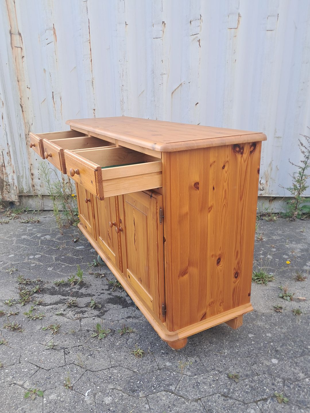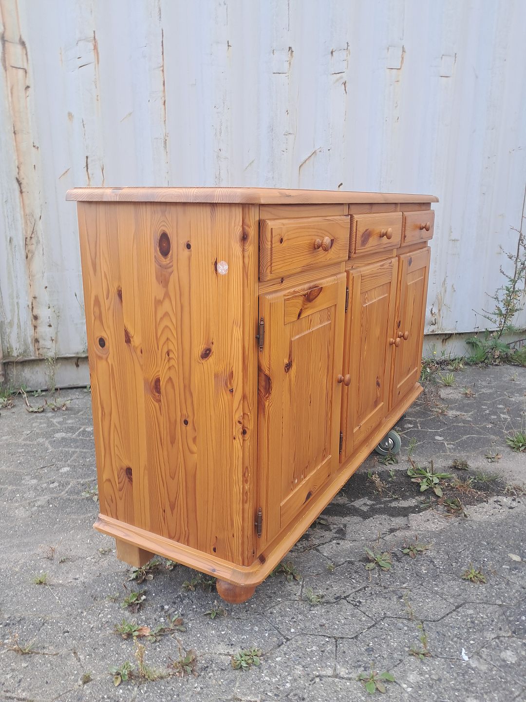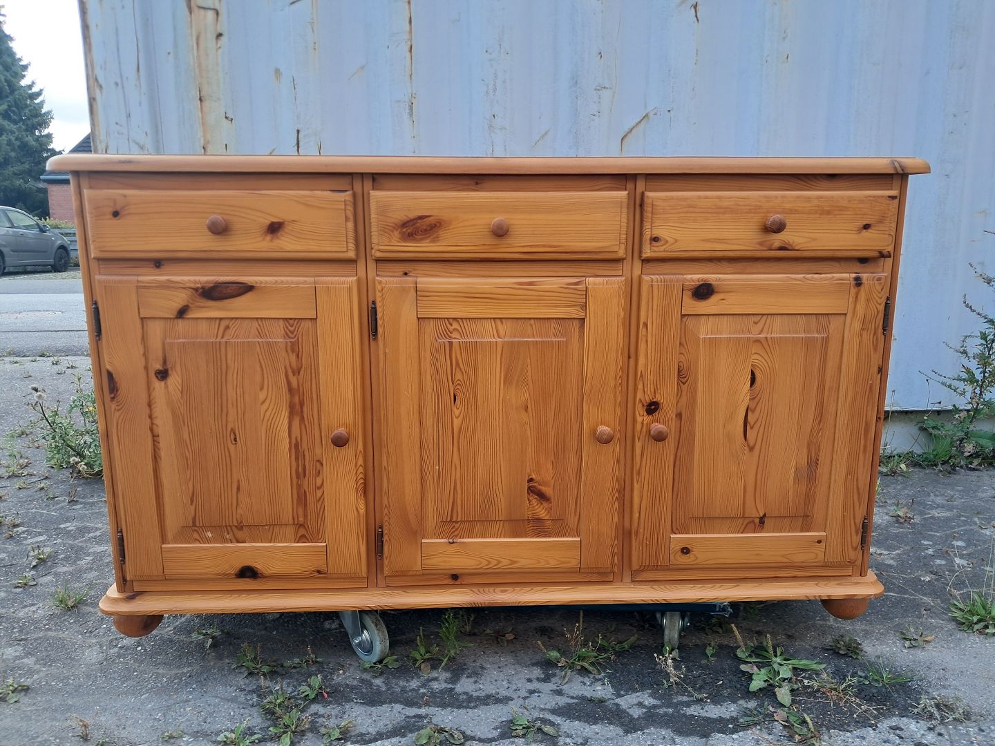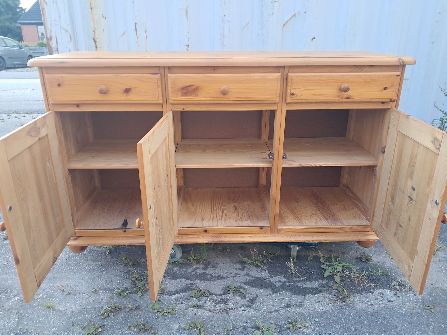 Skænk i massivt fyrretræ, fra 1980erne.Den har brugsspor.