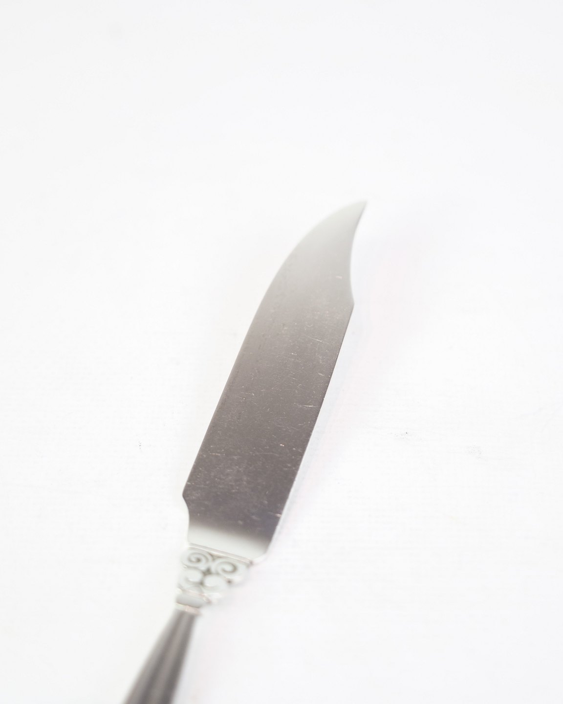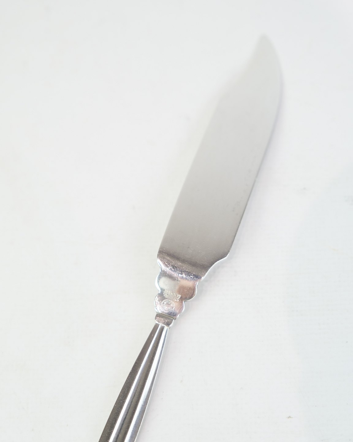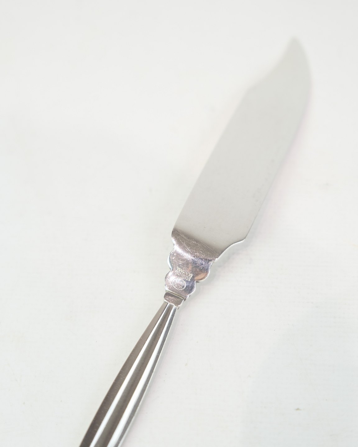 Georg Jensen fiskekniv i sterling sølv. Konge mønster, design af Johan Rohde 1915. Model No. 62. Længde 20,5 cm.— Oprindelse: Danmark