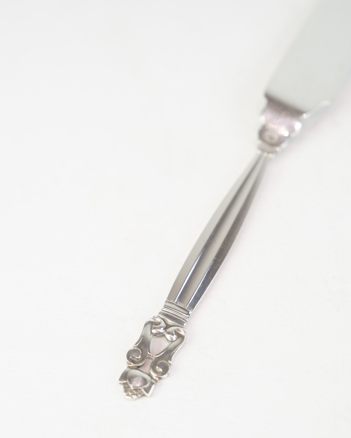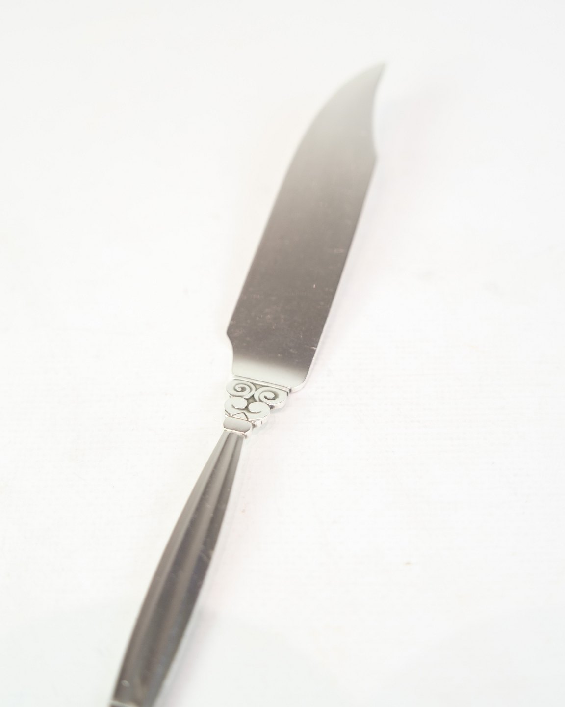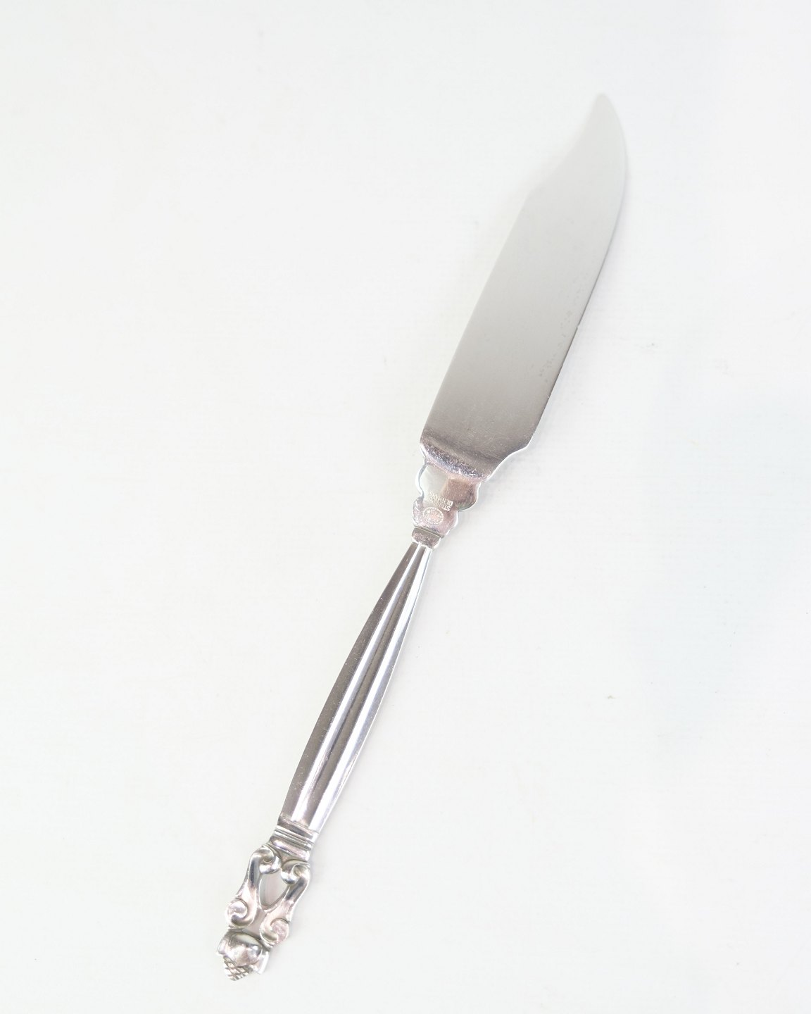 Georg Jensen fiskekniv i sterling sølv. Konge mønster, design af Johan Rohde 1915. Model No. 62. Længde 20,5 cm.— Oprindelse: Danmark