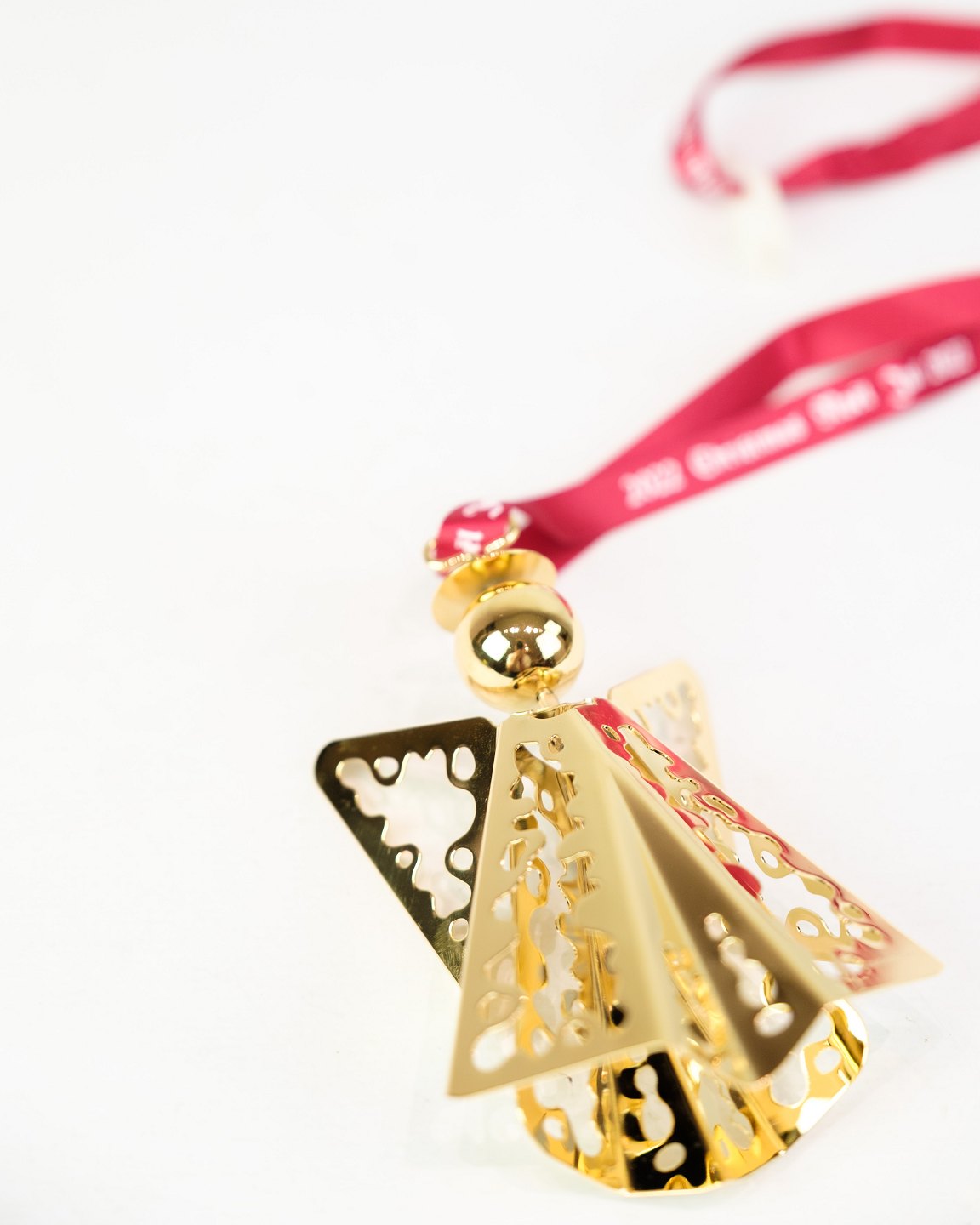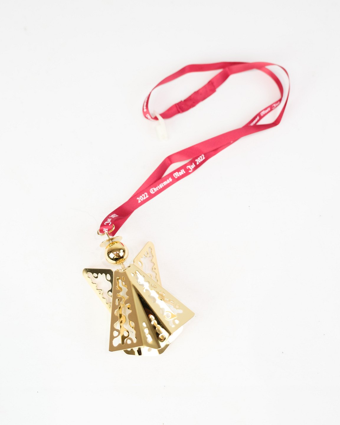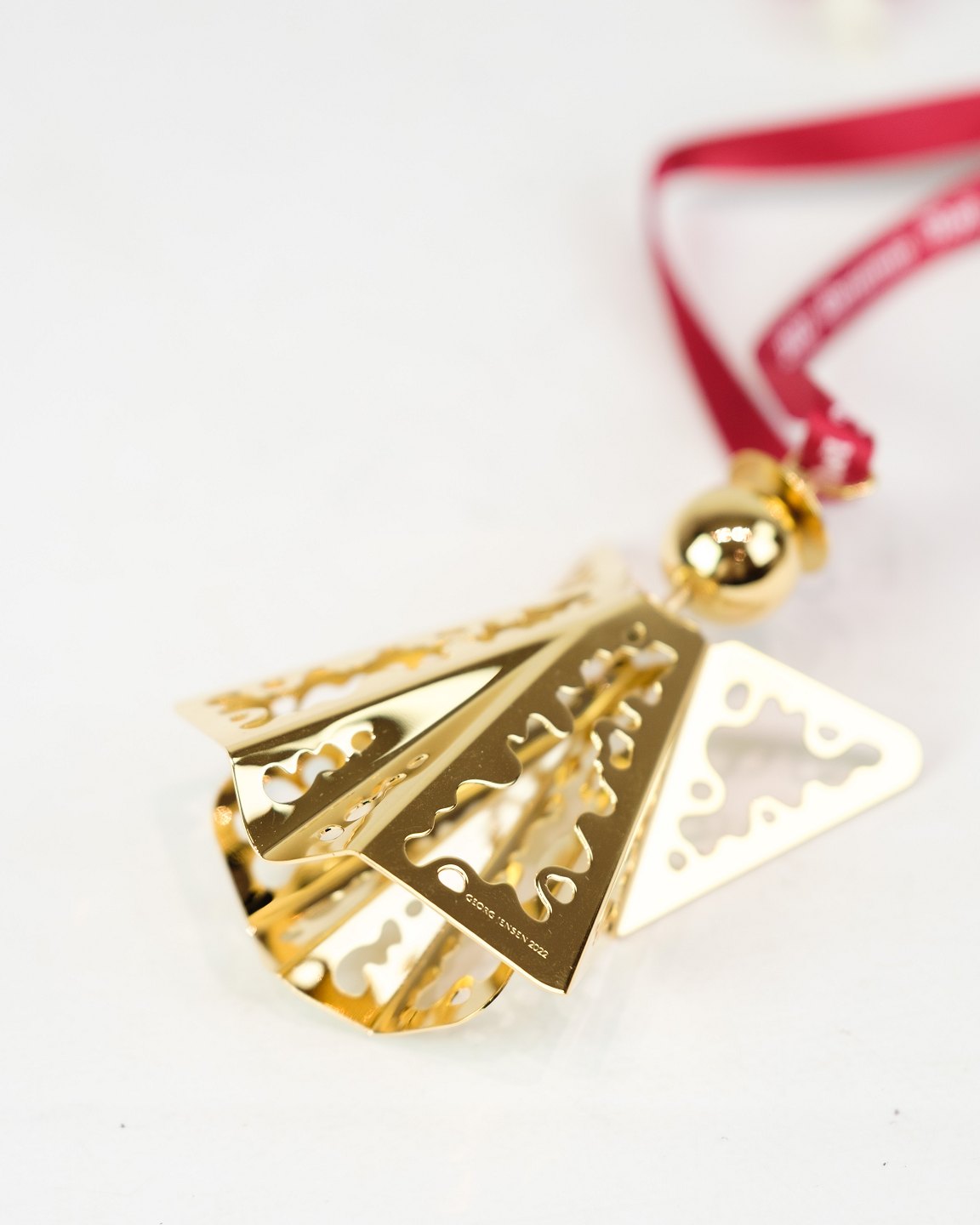 Georg Jensen juleuro fra 2022, udført som en engel med blonde i forgyldt metal. Designet viderefører traditionen med årlige juleuroer, som siden 1980’erne har været populære samlerobjekter verden over.Producent: Georg Jensen