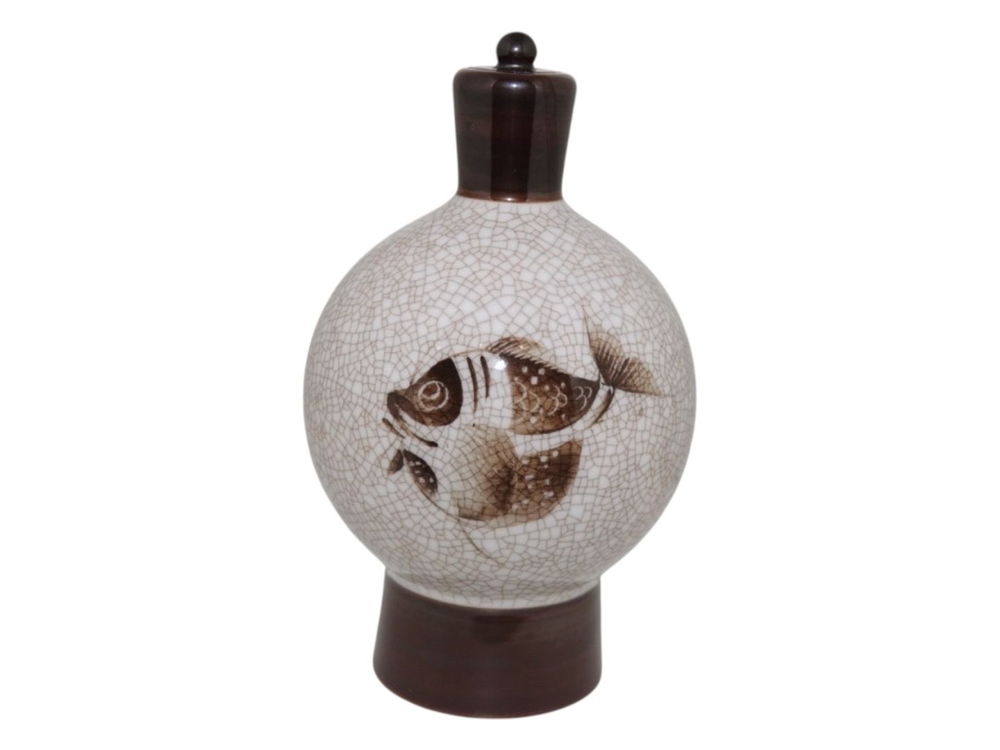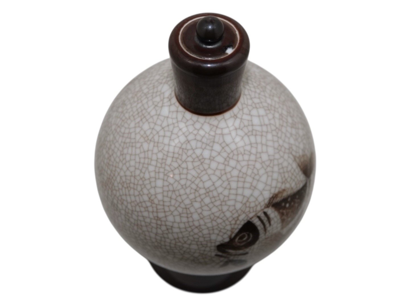 Bing & Grøndahl, craquele (krakele) flakon med fisk.Bemærk denne vare er på vores fjernlager. Den kan købes online eller hvis du vil se den i butikken, så skriv eller ring. Vi kan ofte have den i butikken samme dag.