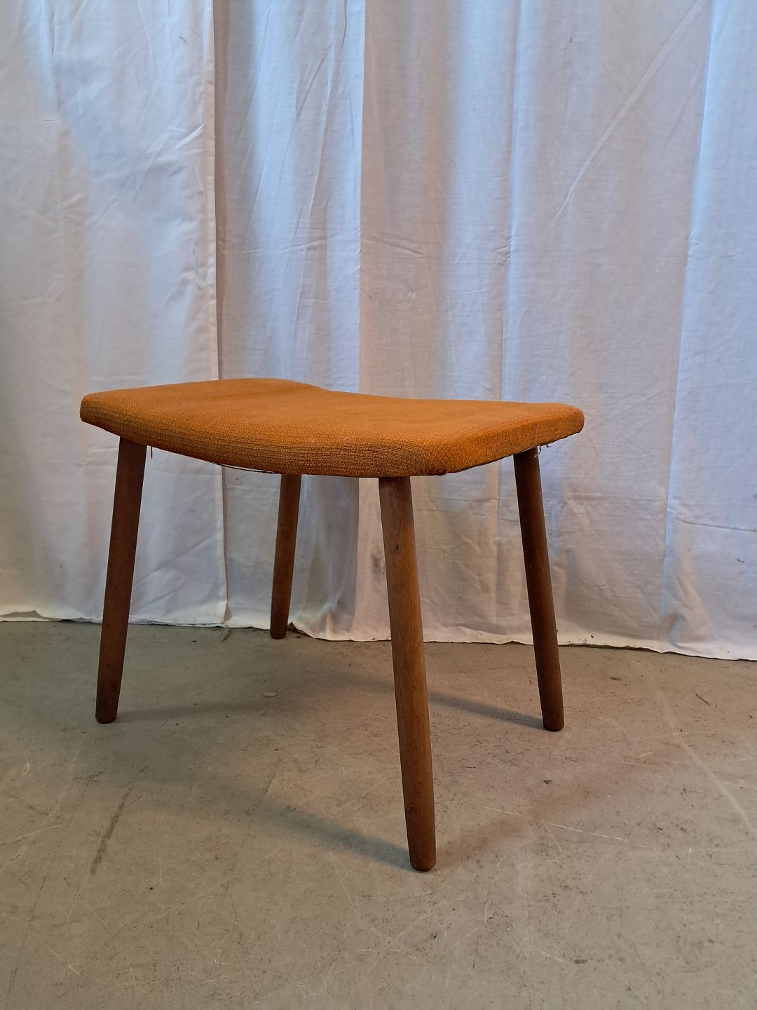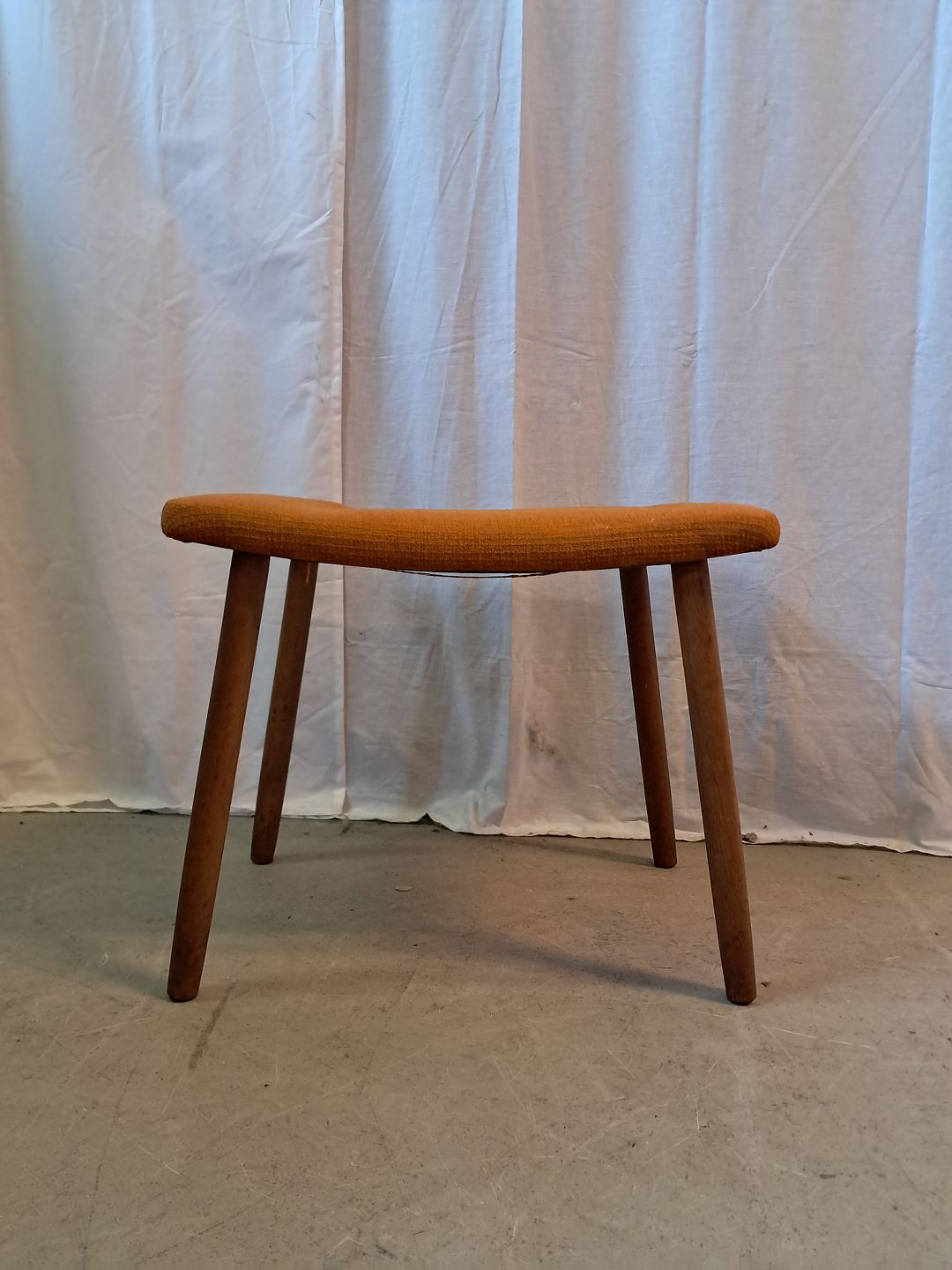 Skammel med ben i bøgetræ, fra 1960erne.Den har brugsspor.