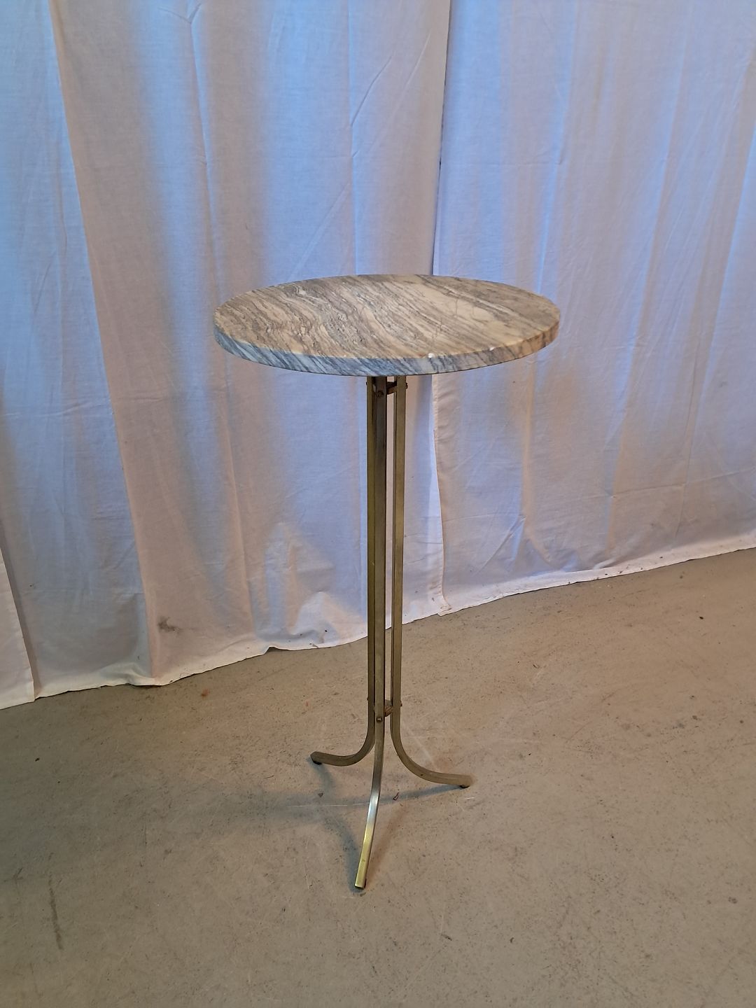 Bord med metalstel og marmorplade, fra 1980erne.Det har brugsspor.