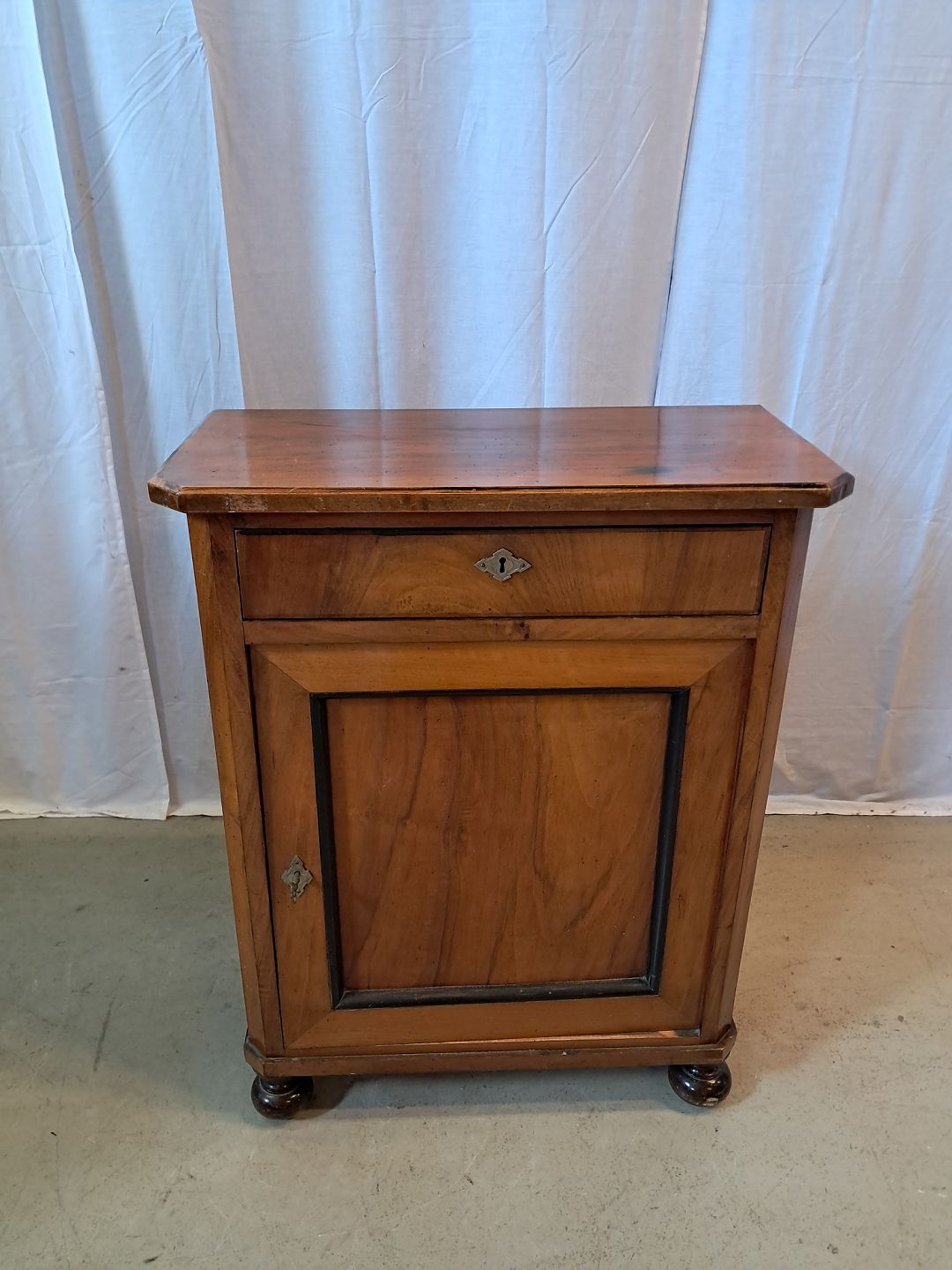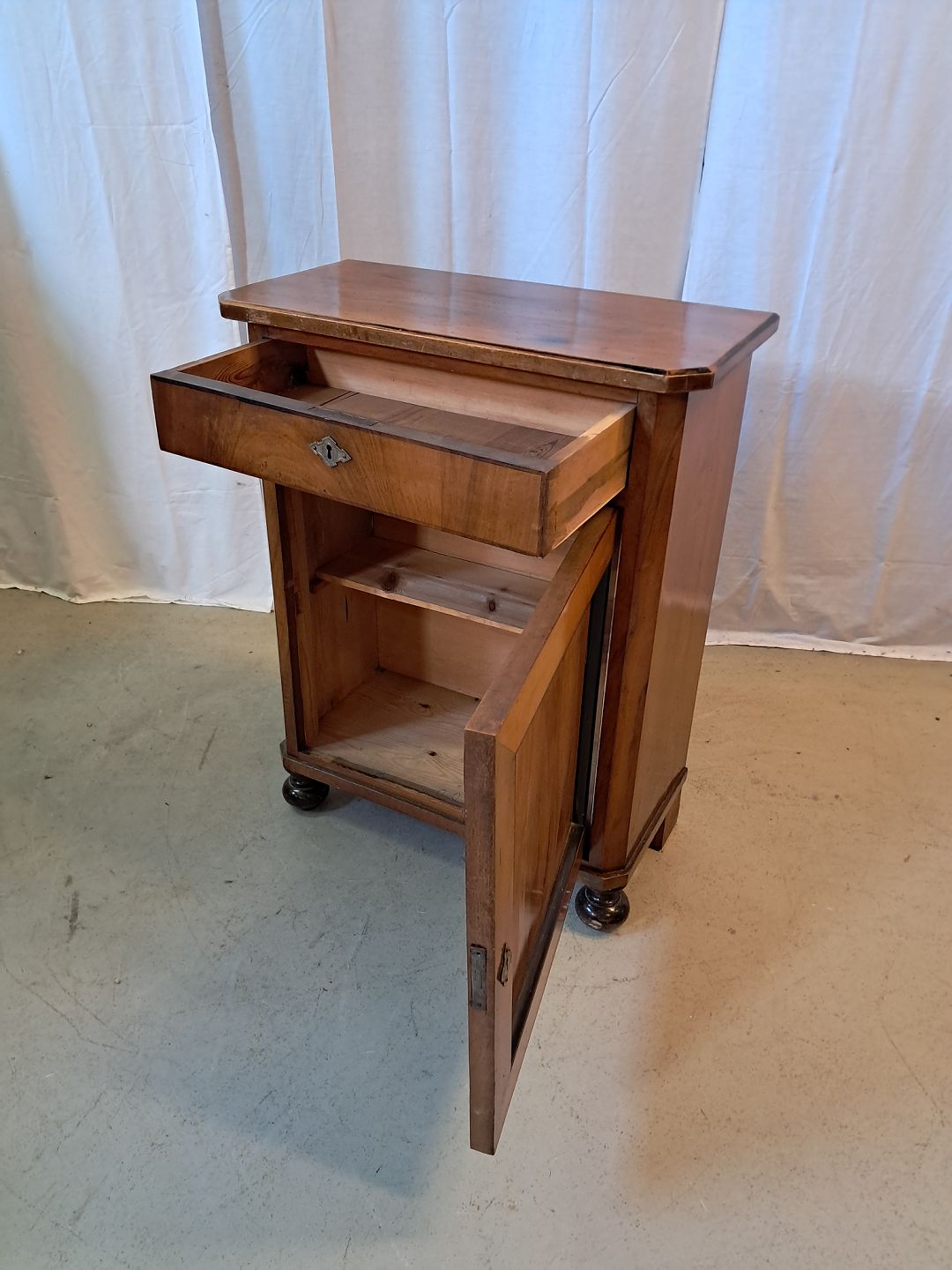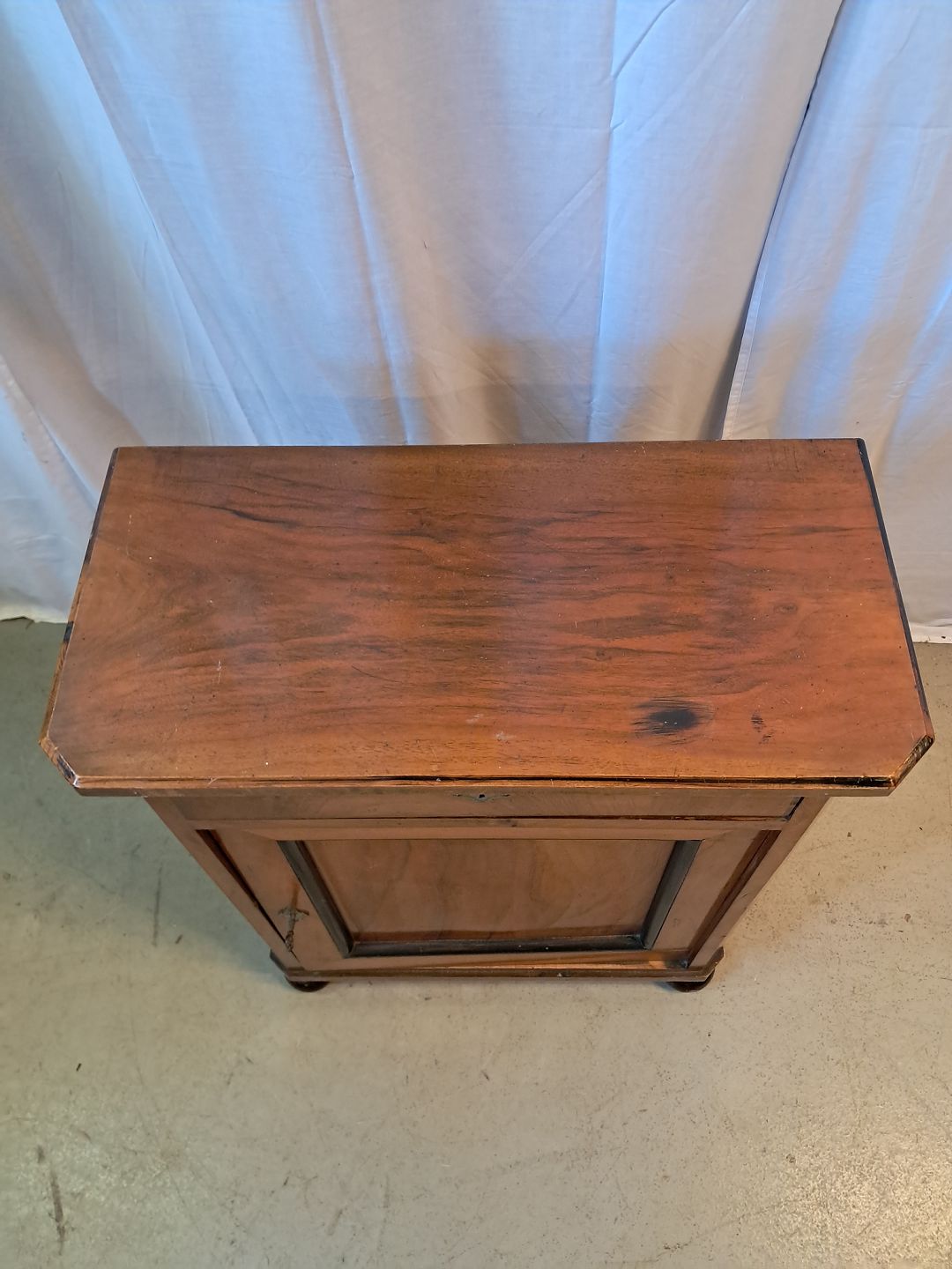 Skab i fineret mahogni, fra 1910erne.Det har brugsspor.