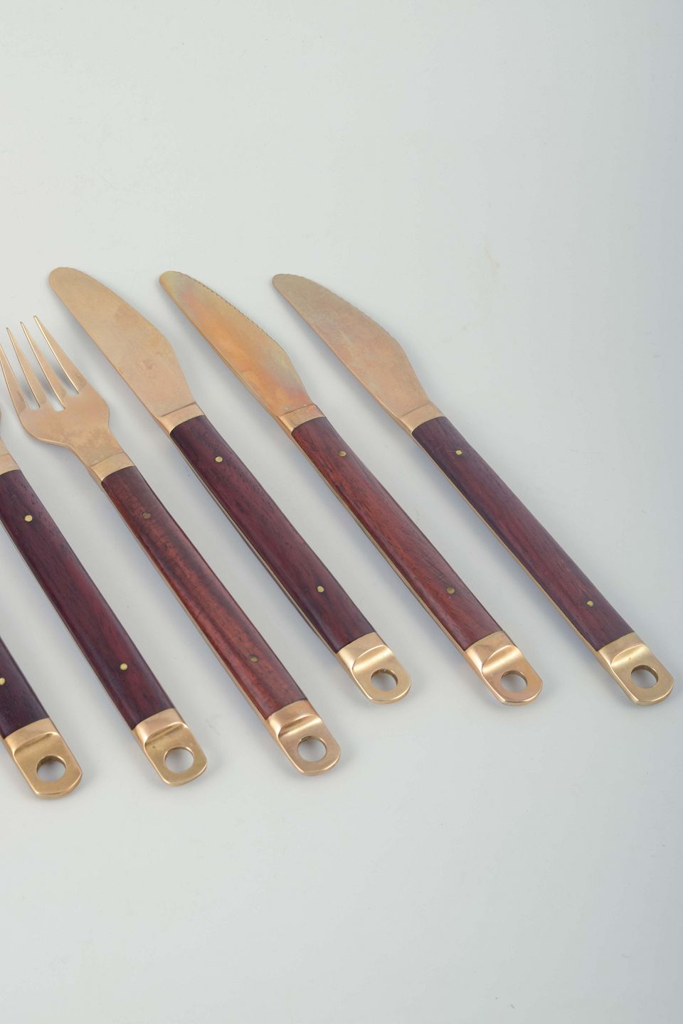 Dette bestik repræsenterer dansk design fra 1960’erne, hvor kombinationen af metaller og eksotiske træsorter blev et tidstypisk udtryk. Model 222 kendes for sine cylindriske skafter i rosentræ og bronzeafslutninger med hul.