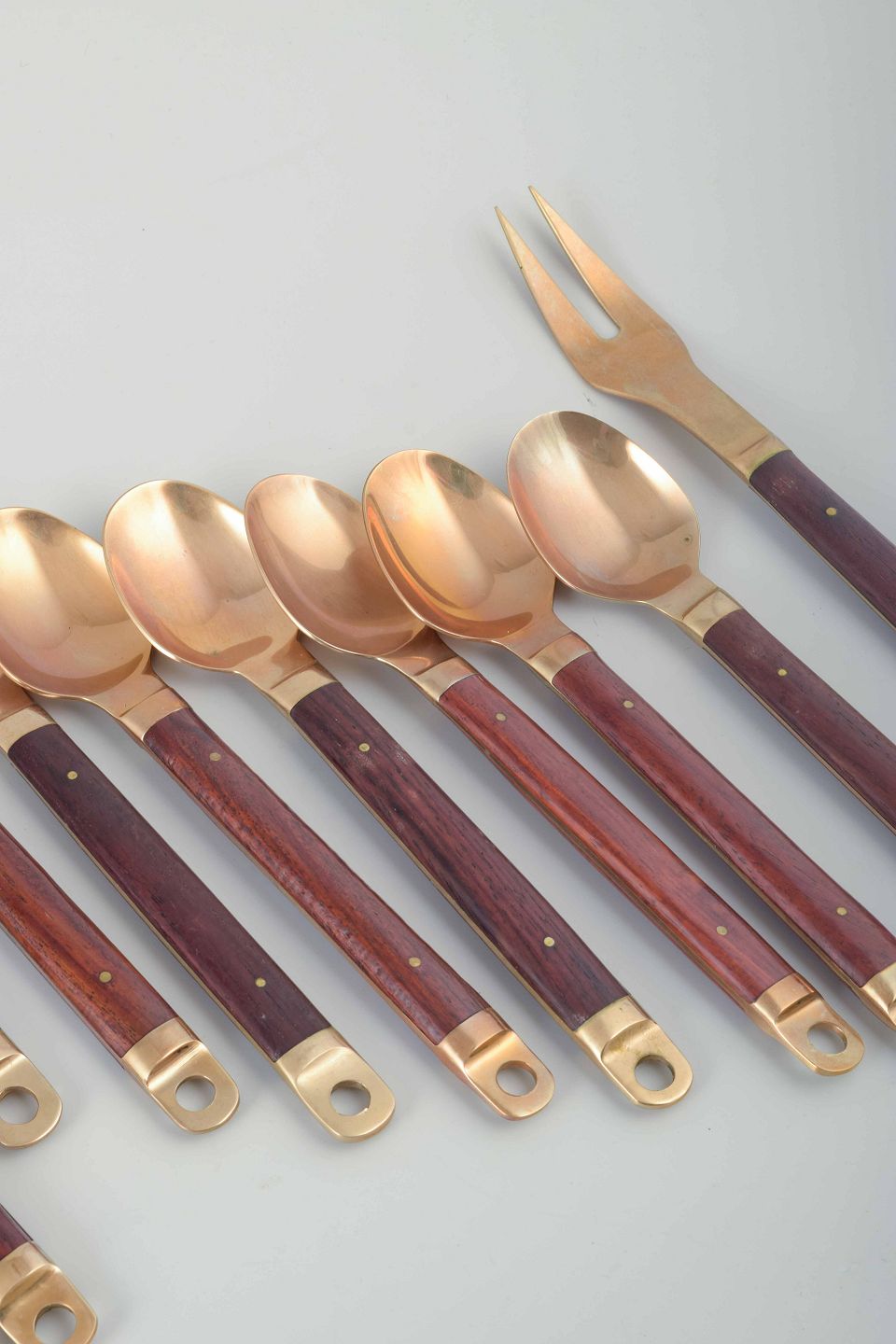 Bio: Brøste var en dansk producent, der i midten af det 20. århundrede skabte en række bestikserier i bronze og træ. Deres design kombinerede enkel skandinavisk formgivning med varme materialer og blev et tidstypisk indslag i mange moderne hjem. I dag efterspørges Brøstes bestik især for sit tidløse udtryk og for at repræsentere en særlig gren af dansk designhistorie fra 1960’erne og 1970’erne.