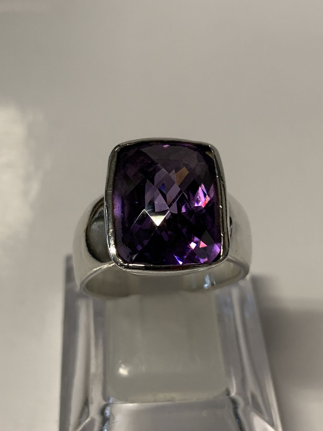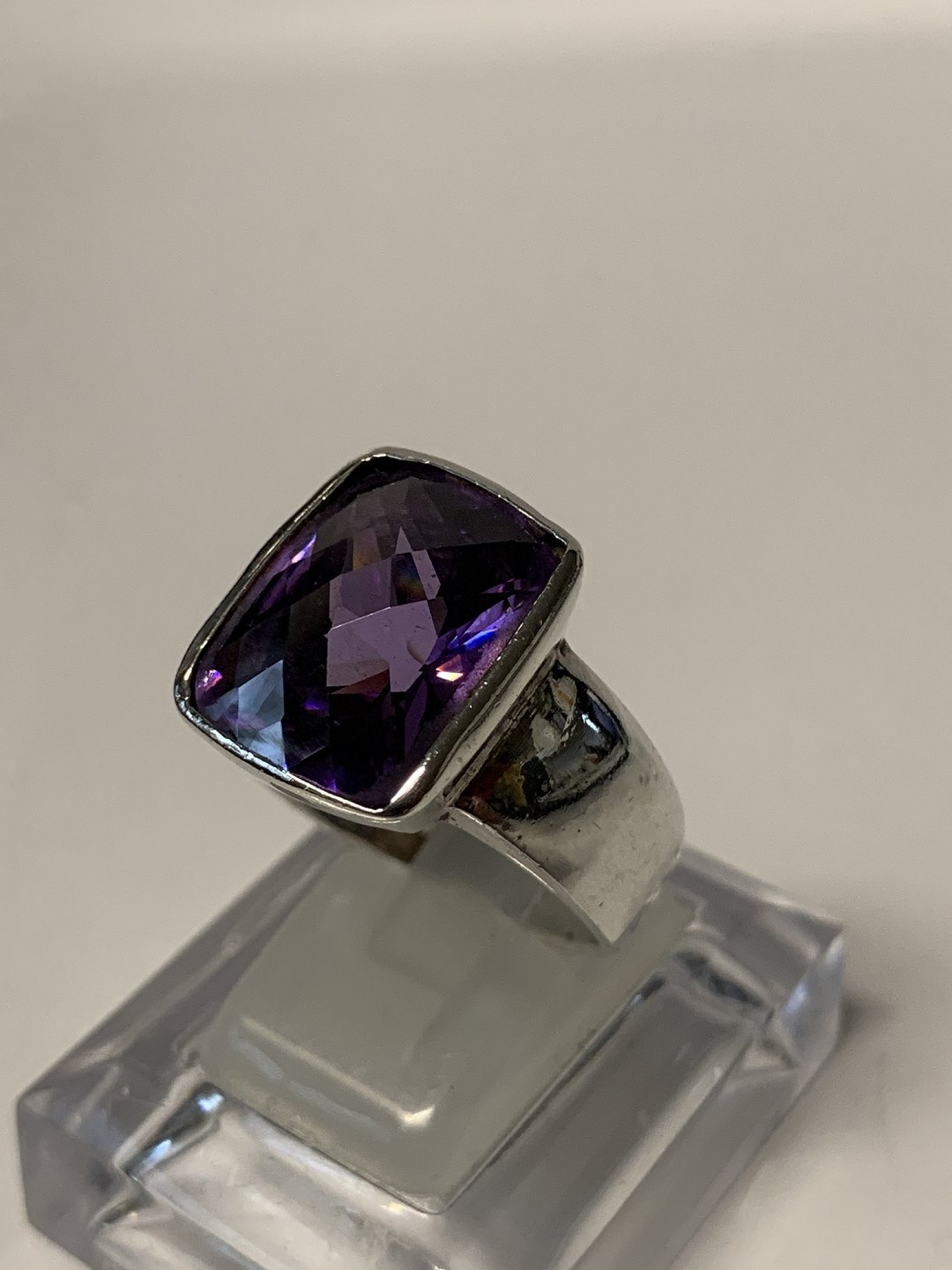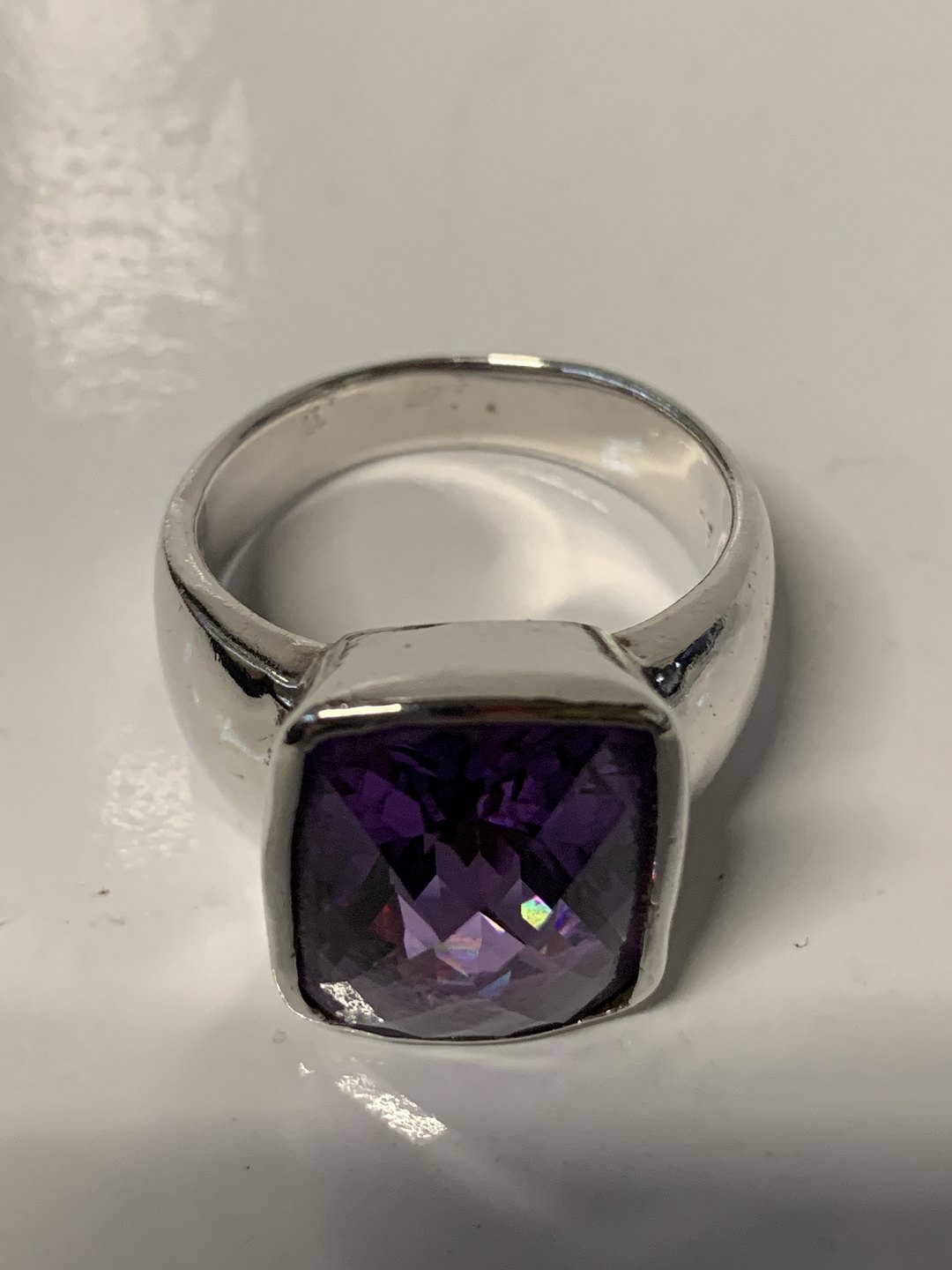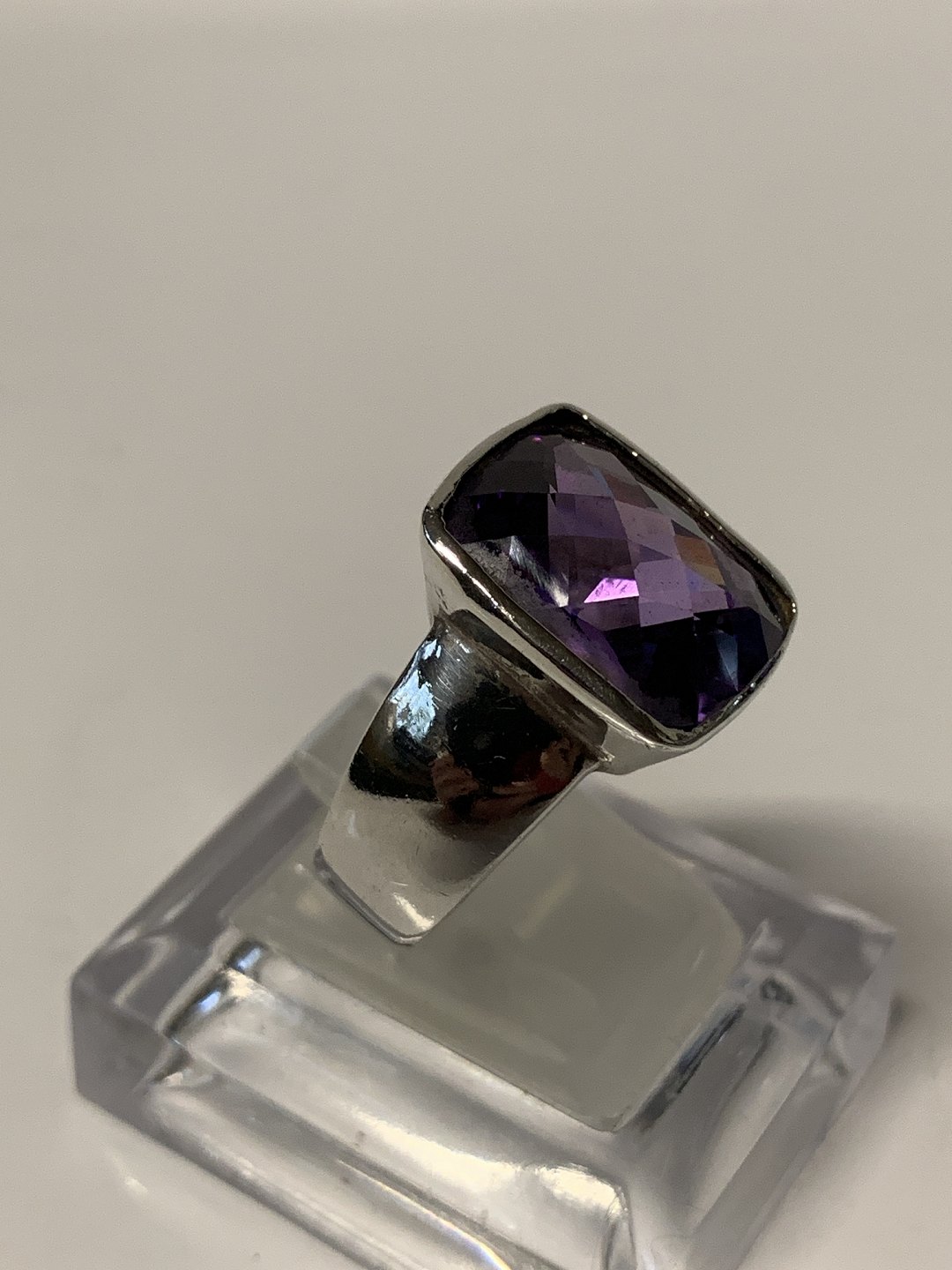 Cocktail Ring i sterlingsølv med lilla sten.Størrelse. 64.