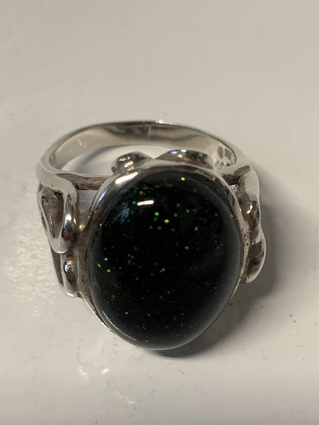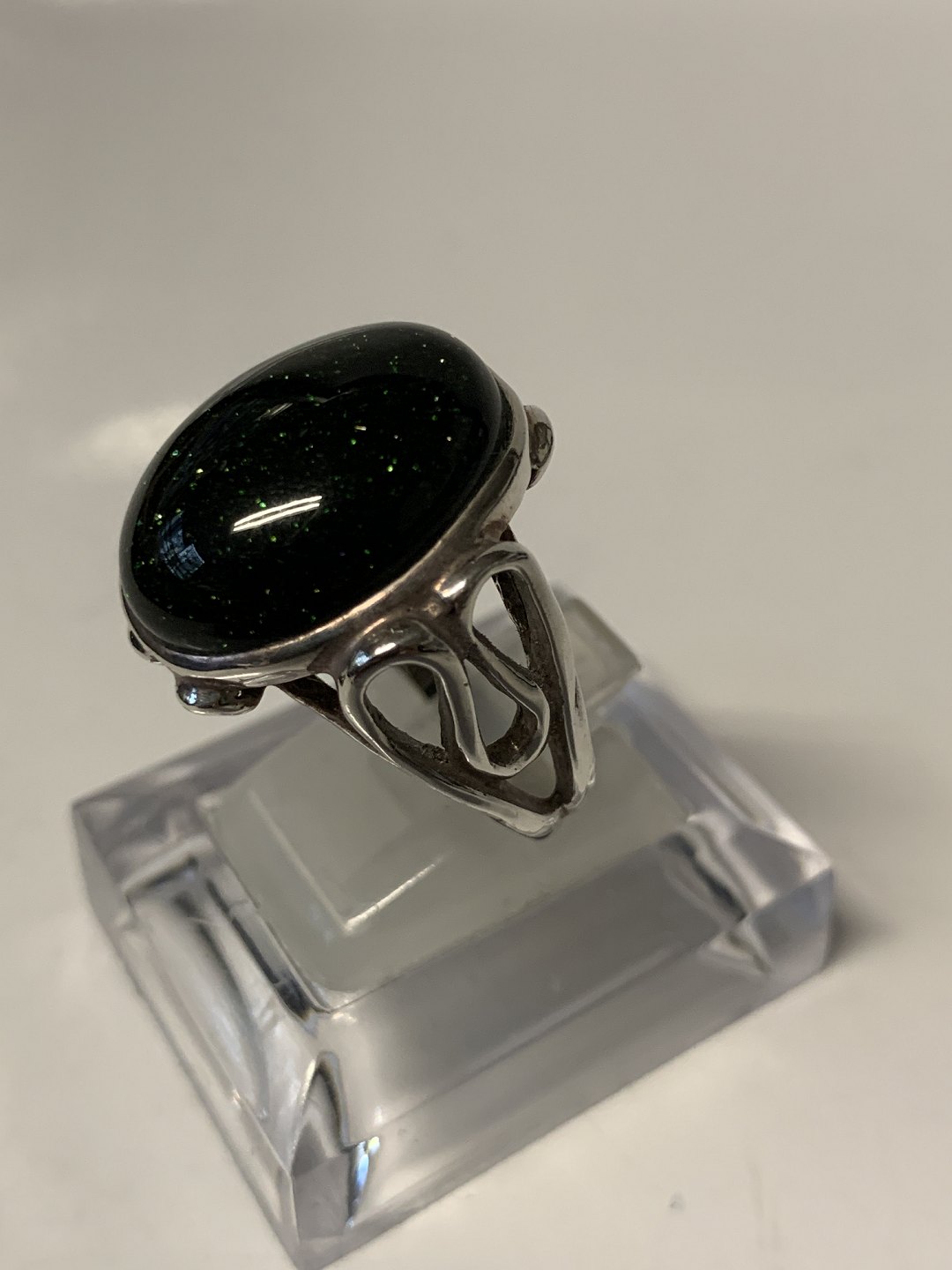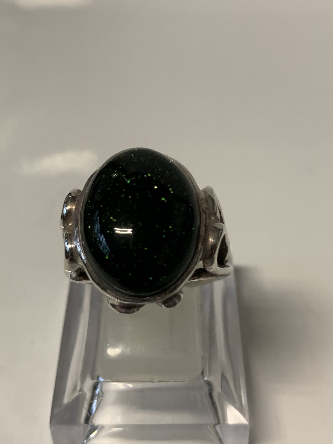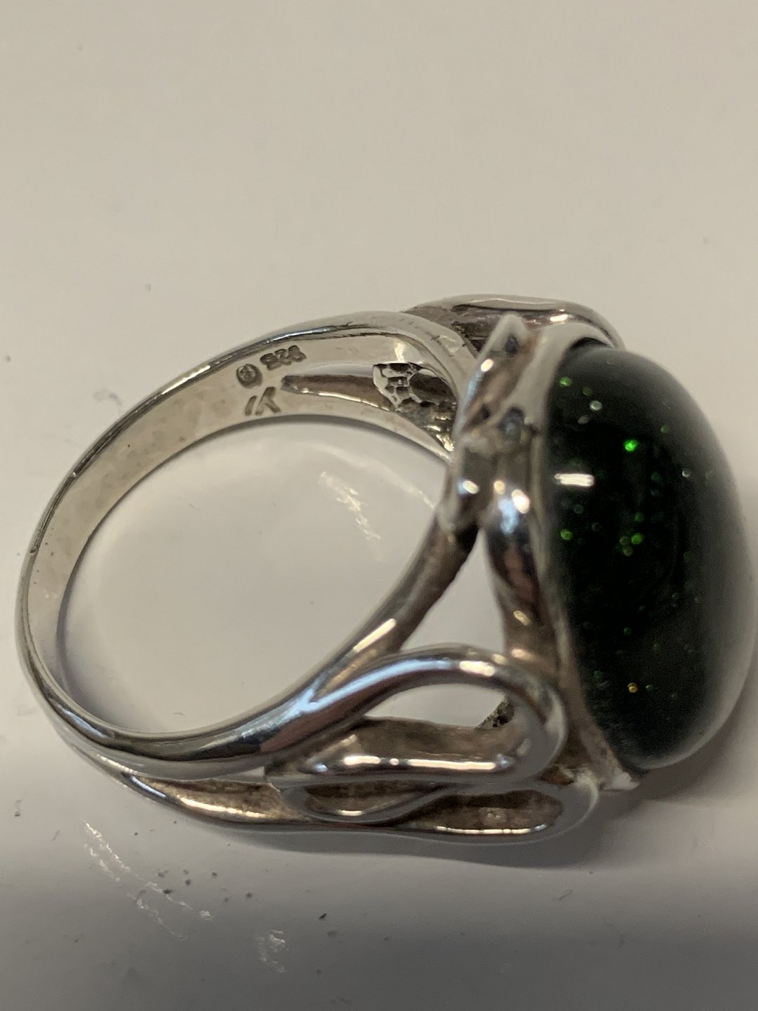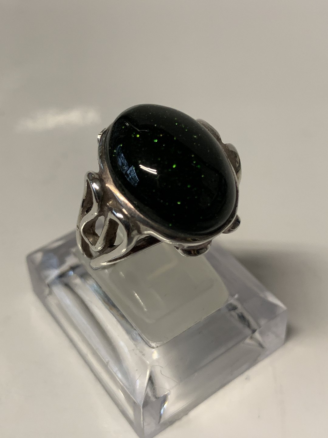Signet Ring i sterlingsølv med grøn sten.Størrelse. 63.