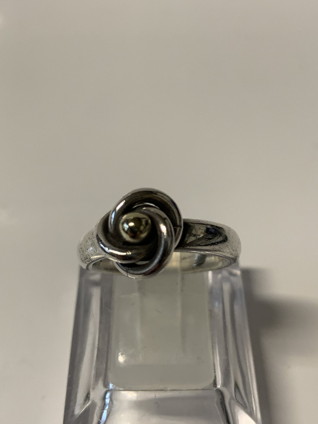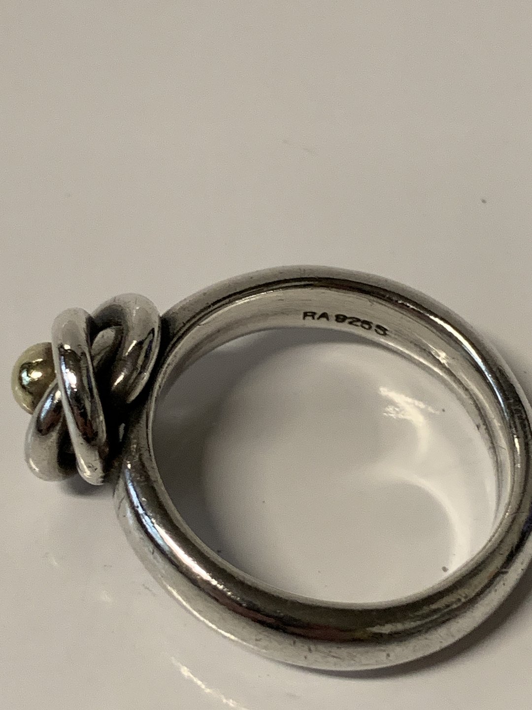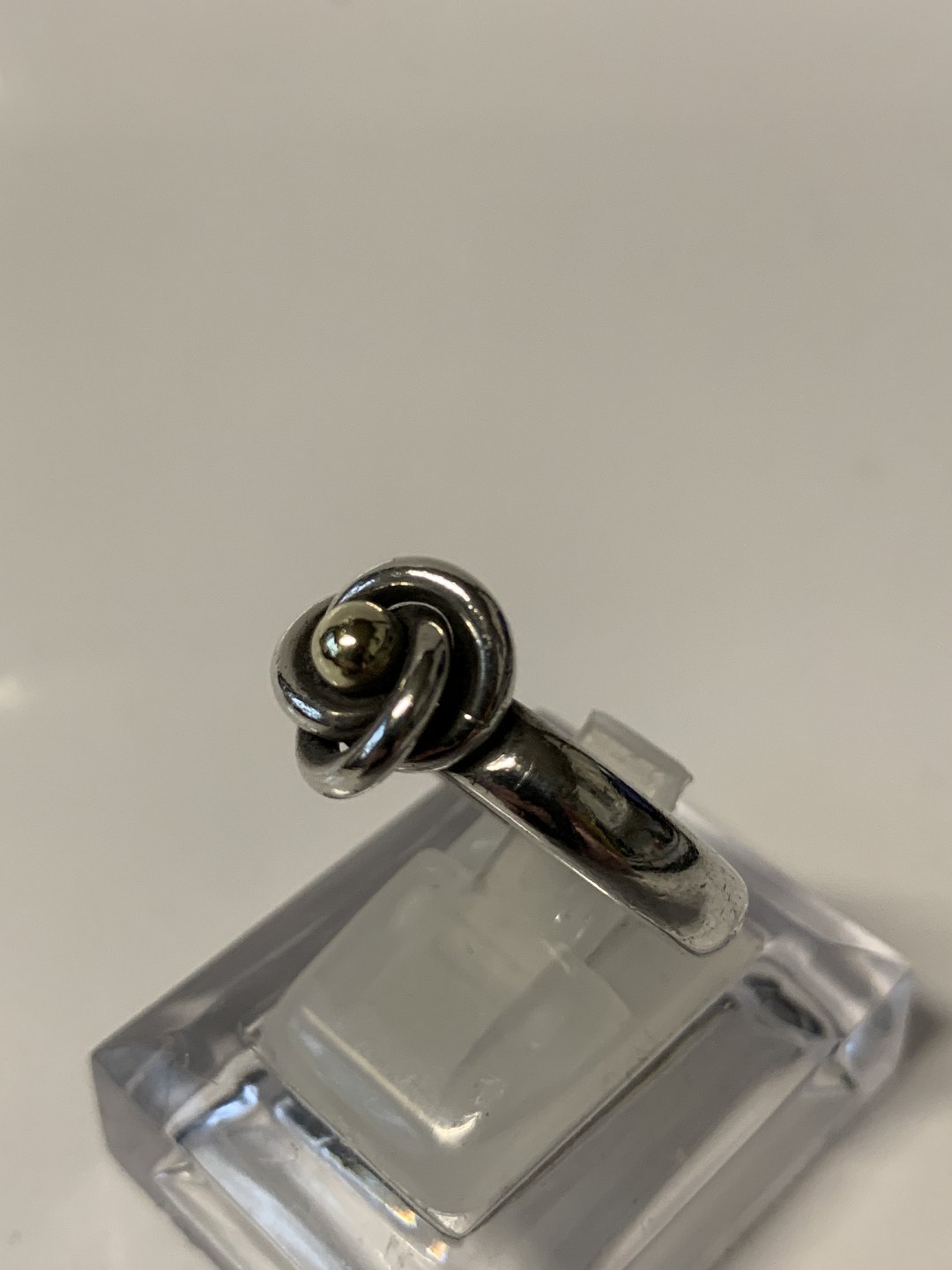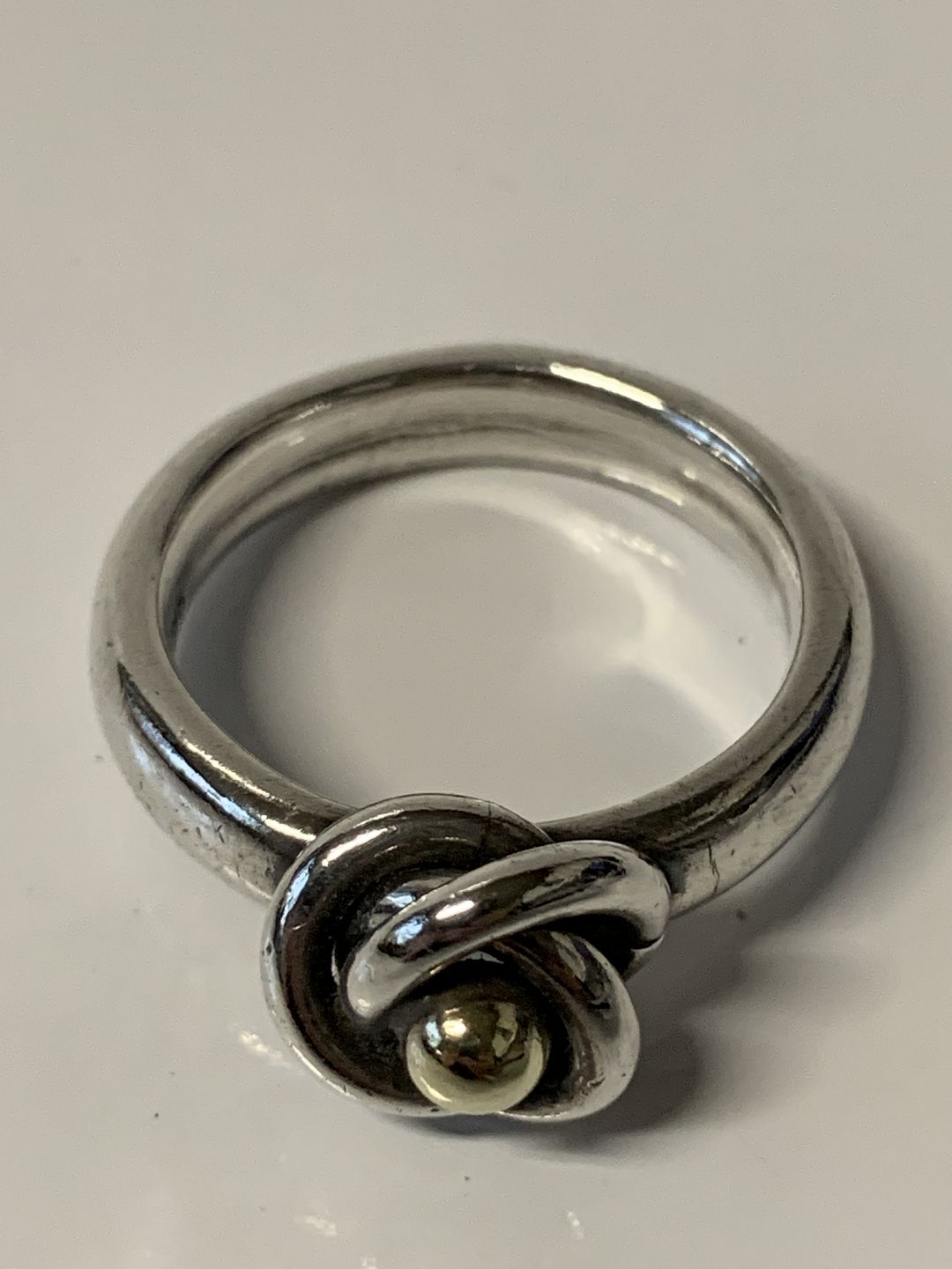 Sølvring i sterling sølv med guld kugle.Størrelse. 60.