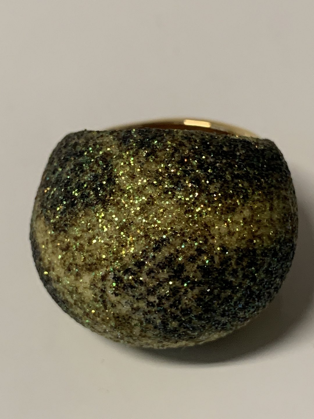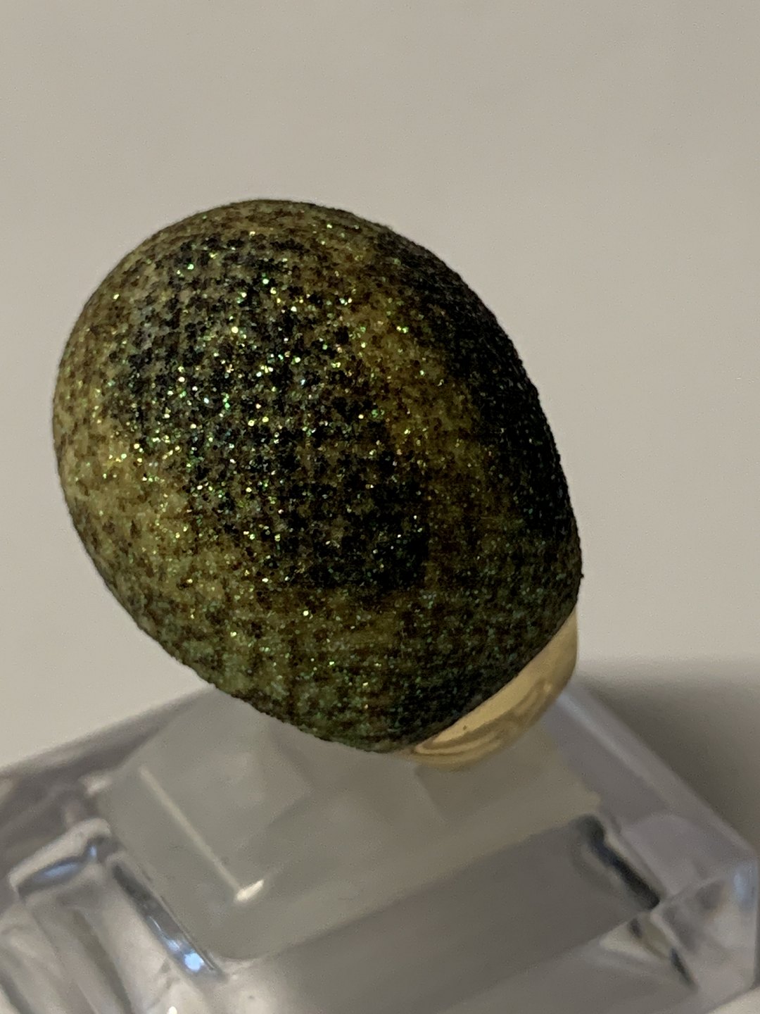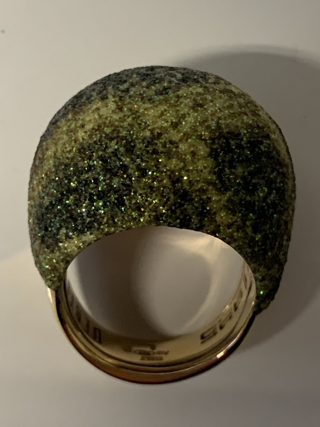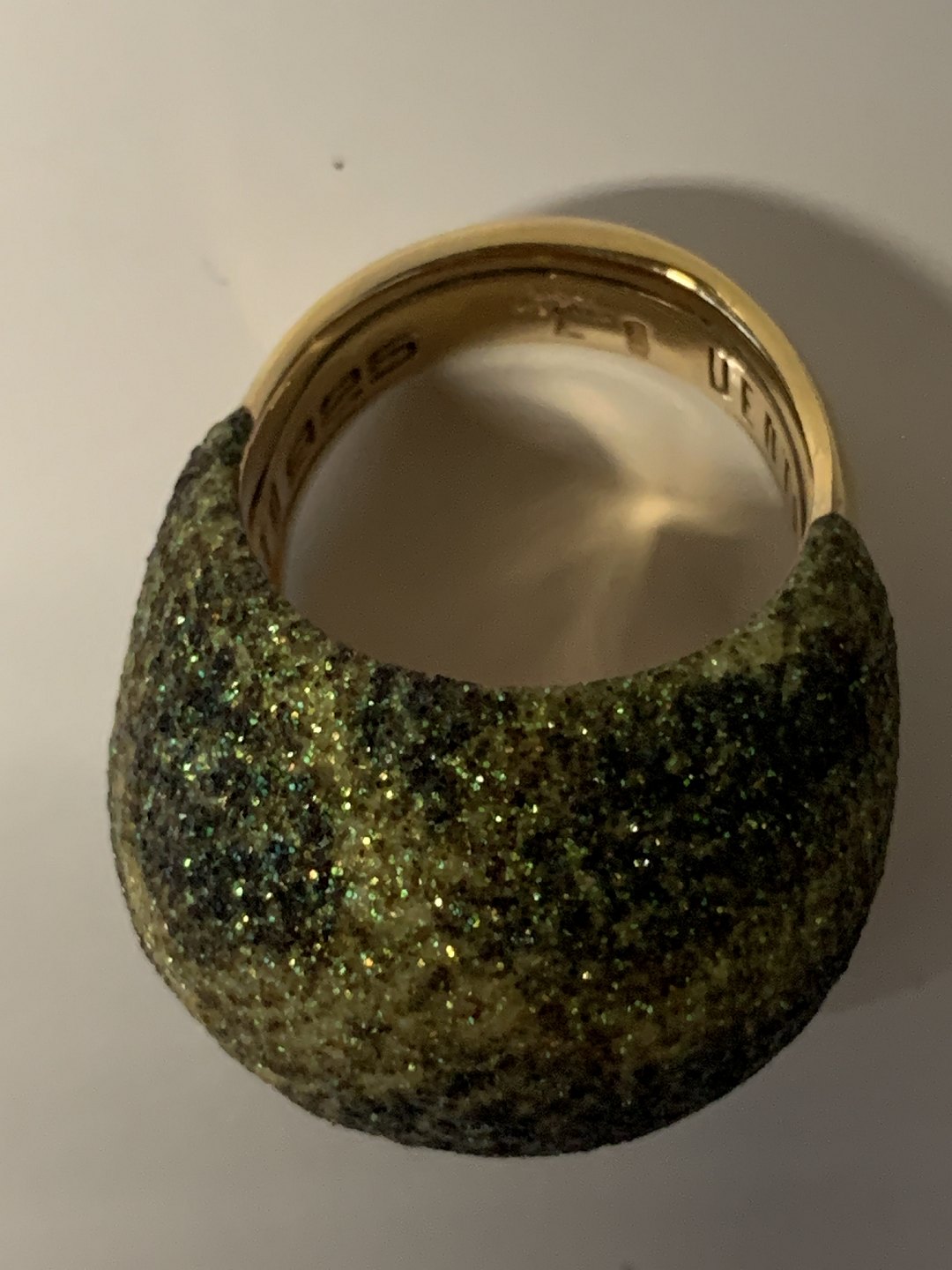 Statement ring i forgyldt sterlingsølv med grønne stene. Størrelse. 61.