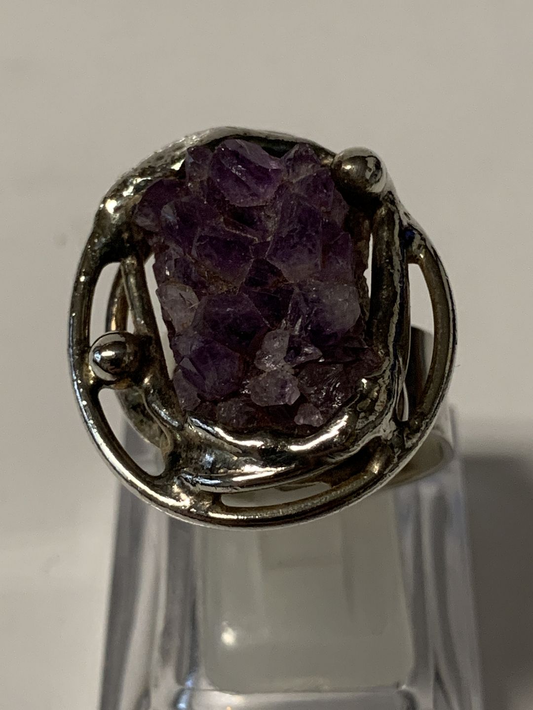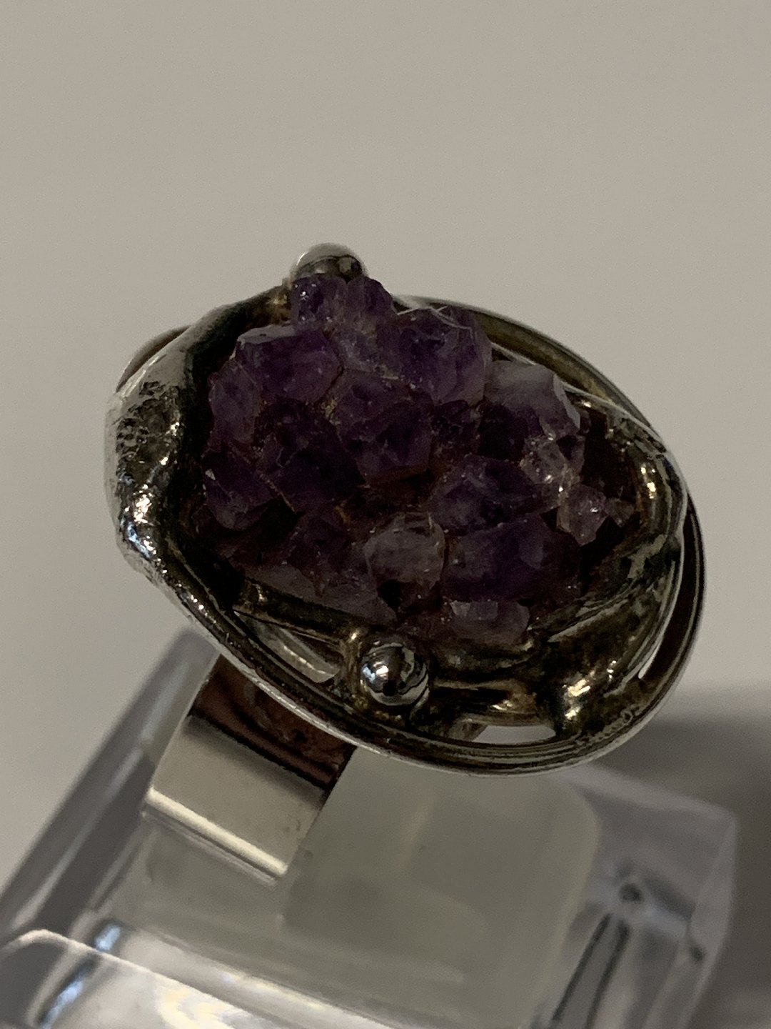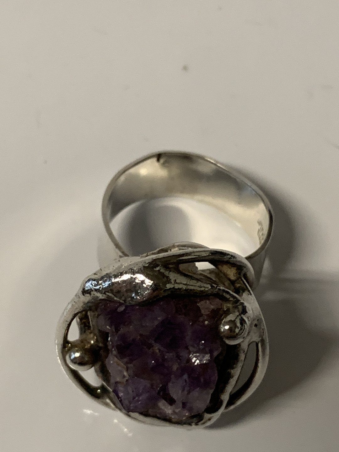 Damering med rå ametyster.Størrelse. 63 One Size.