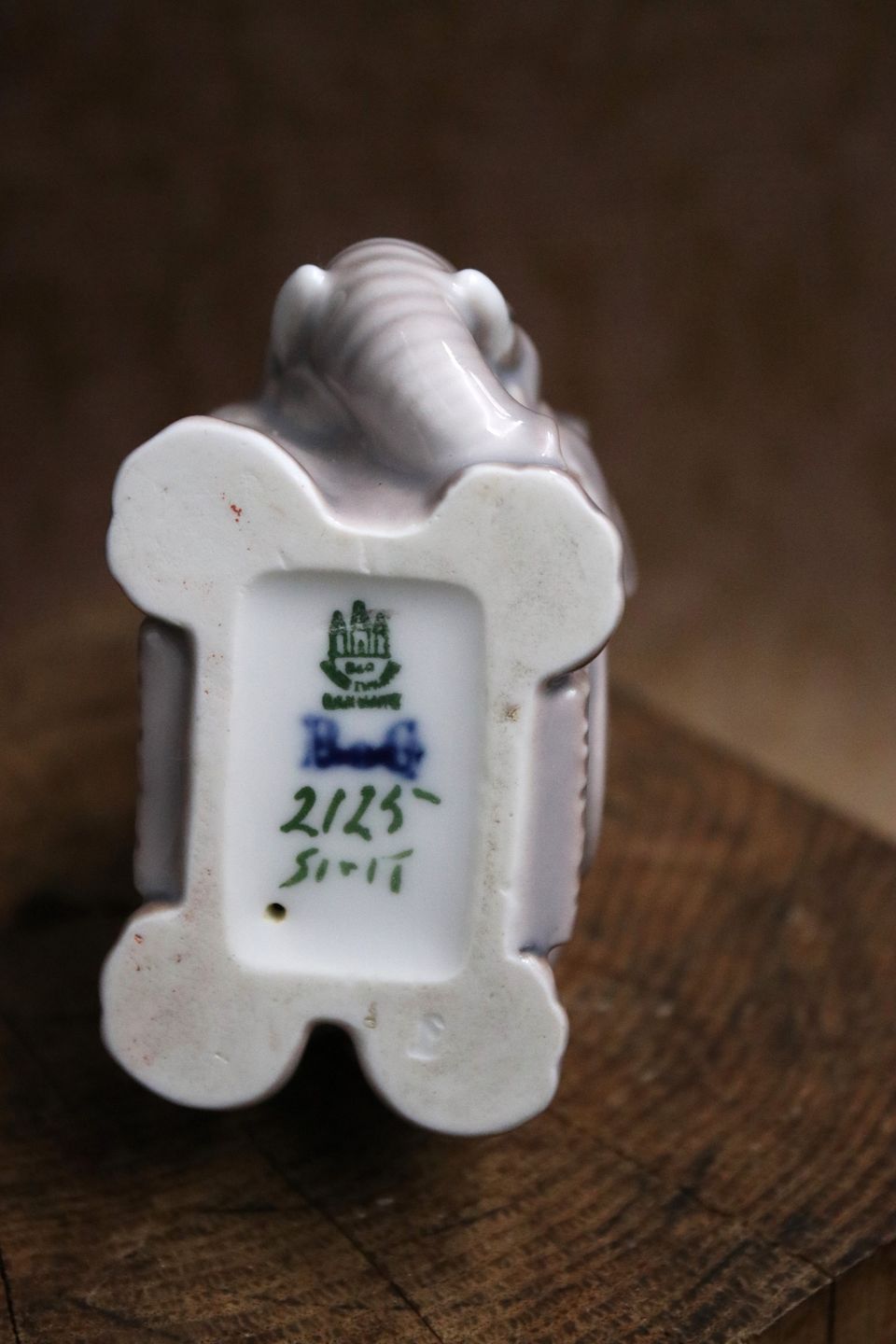 Bing & Grøndahl porcelænsfigur i form af elefant med grå glasur. Dekorationsnummer: 2125. H: 8,8cm.Er i hel og i fin stand.