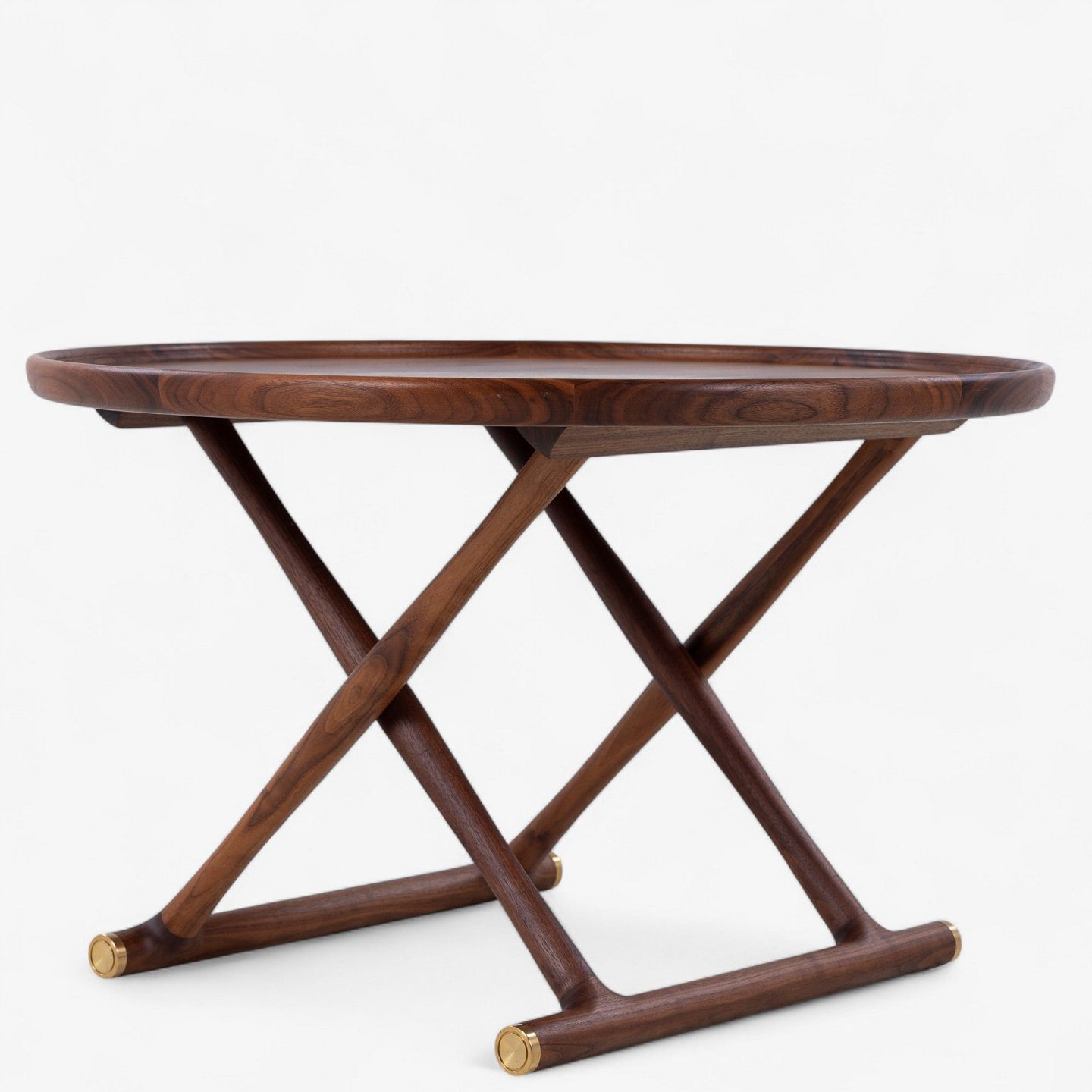 'Ægypterbordet' i valnød med messingdetaljer. Mærket fra producenten. Formgivet i 1940.