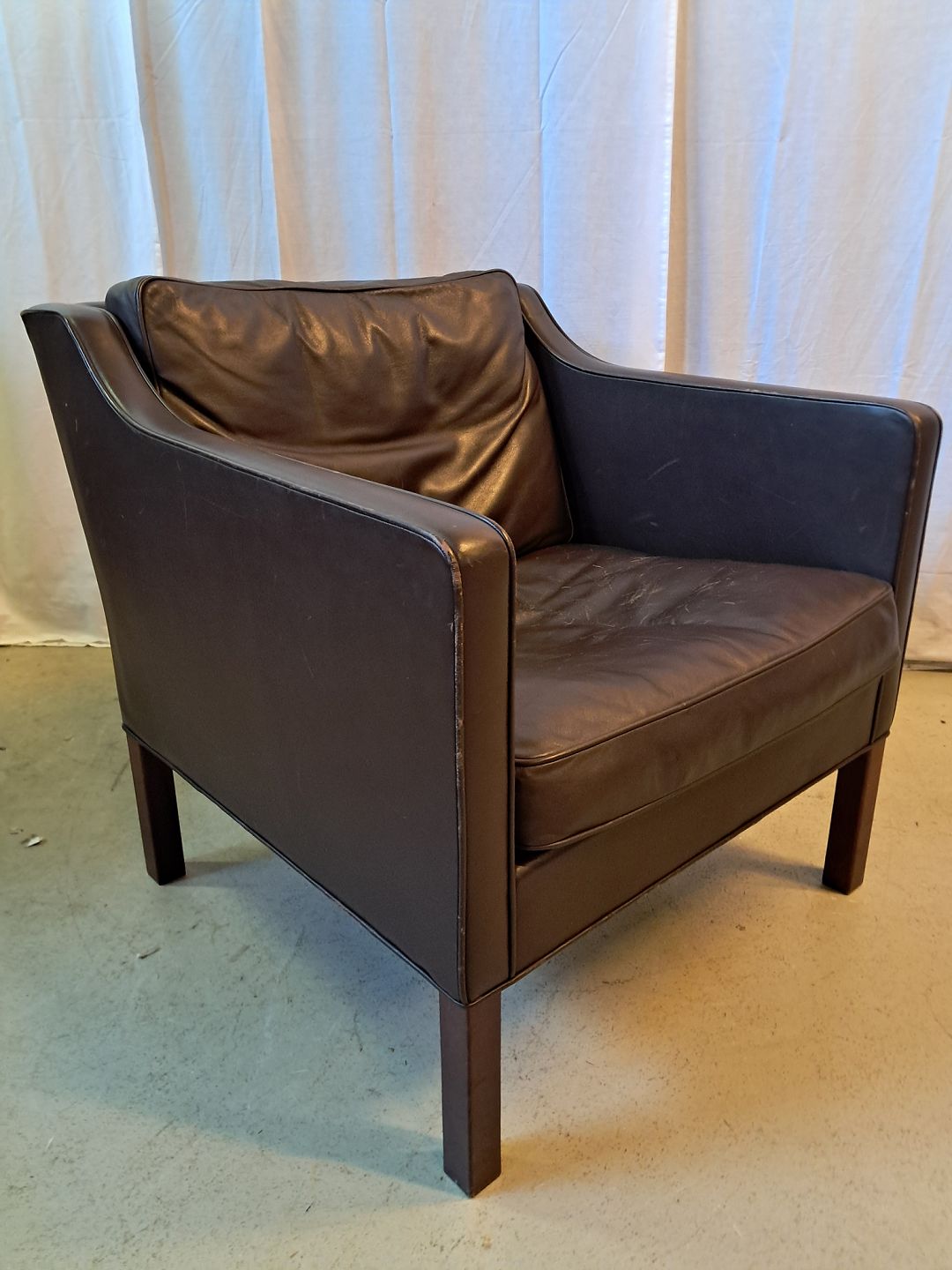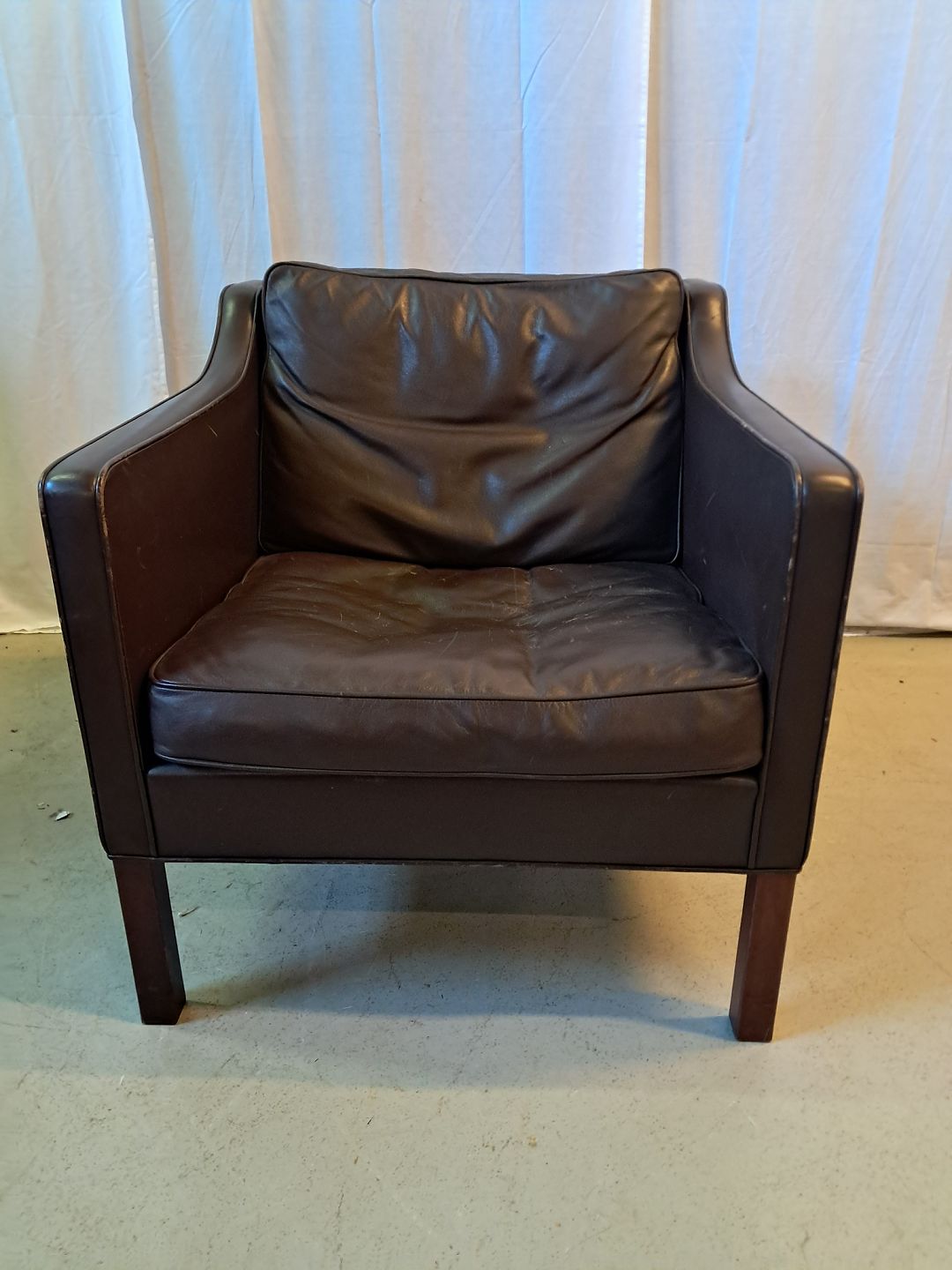 Lænestol i læder, fra 1980erne.Den har brugsspor.
