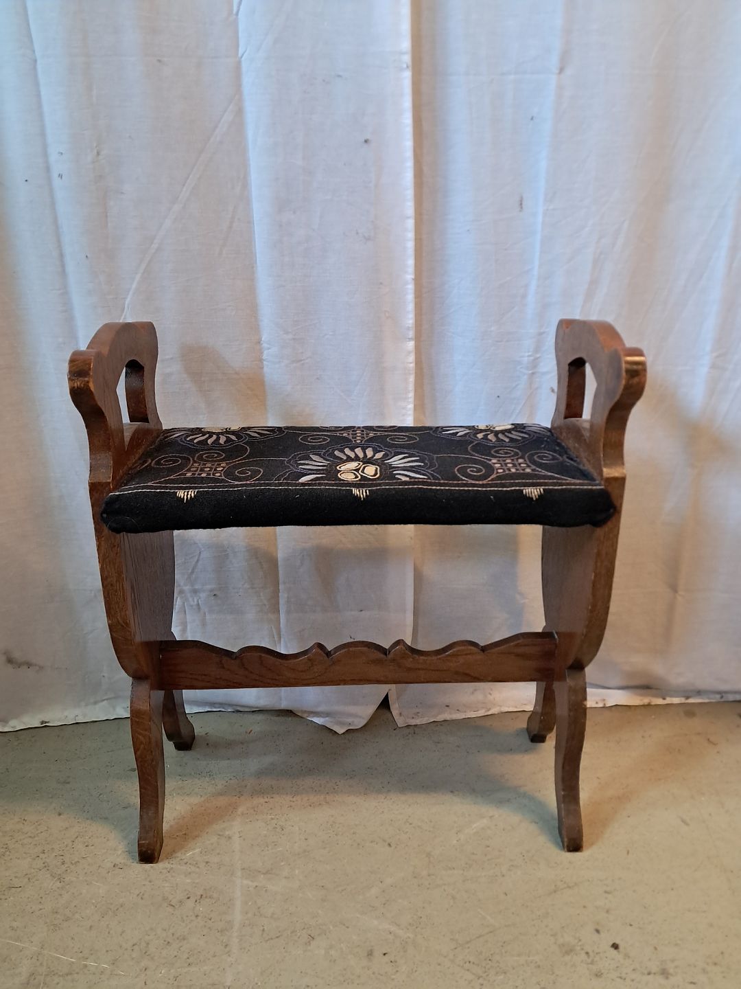 Klaverbænk i massivt egetræ, fra 1920erne.Den har brugsspor.