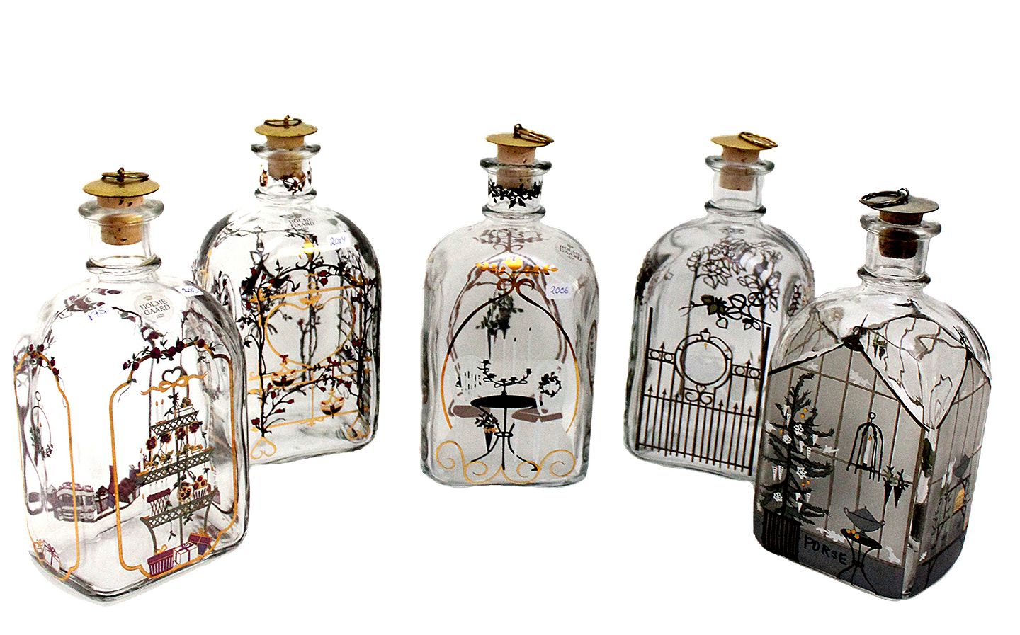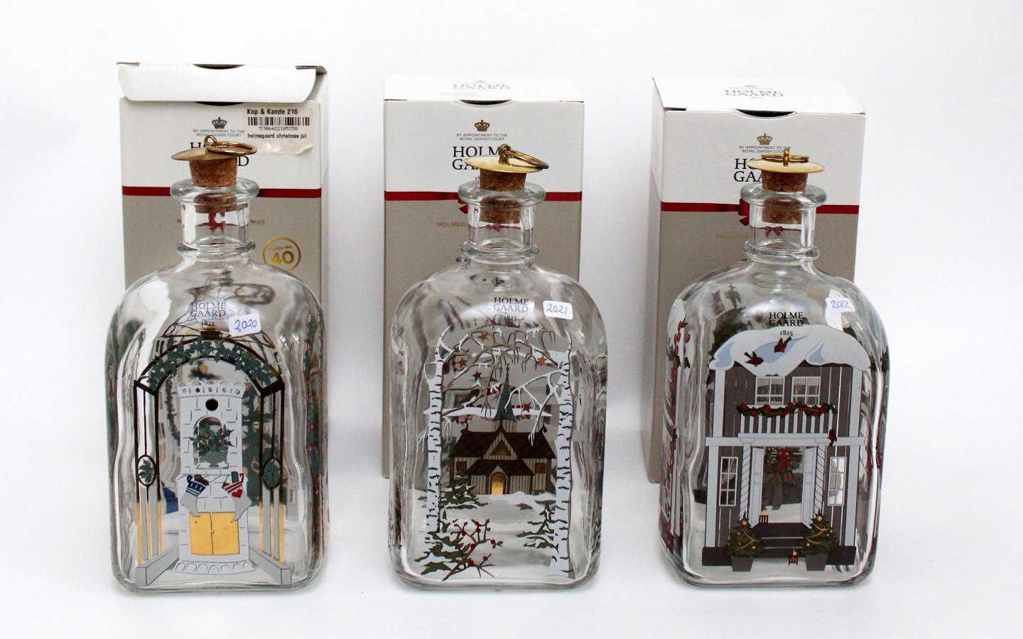 Holmegaard, Juleflasker 2000-2024. 2000. Buede vinduer, pige der skøjter. Pris: 175 kr. stk. Lager: 0
