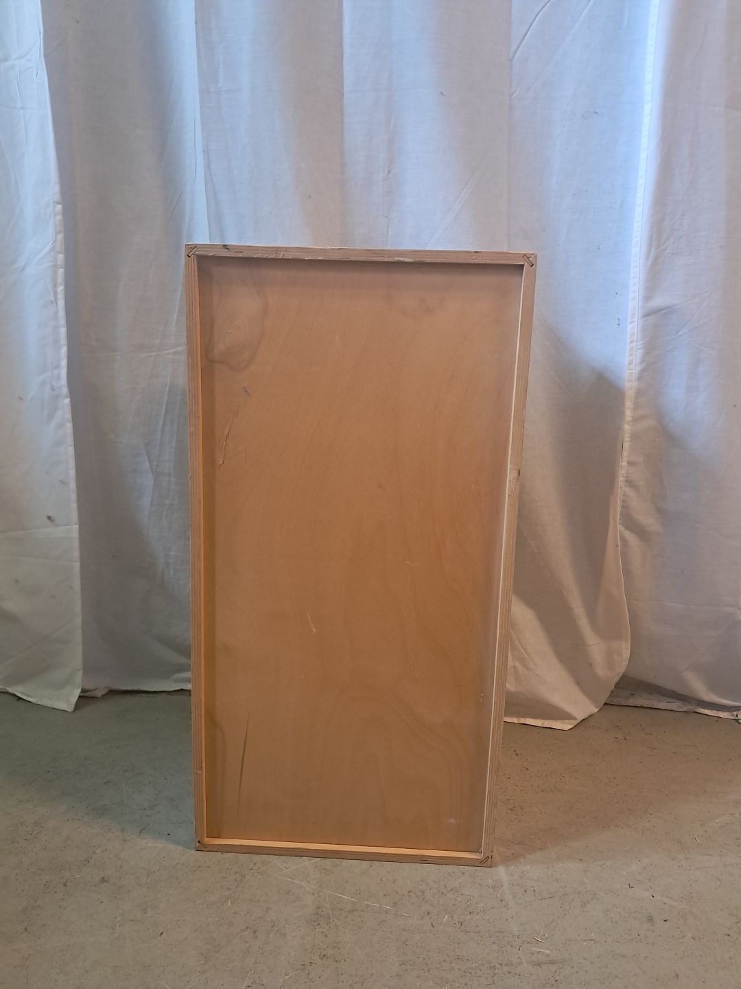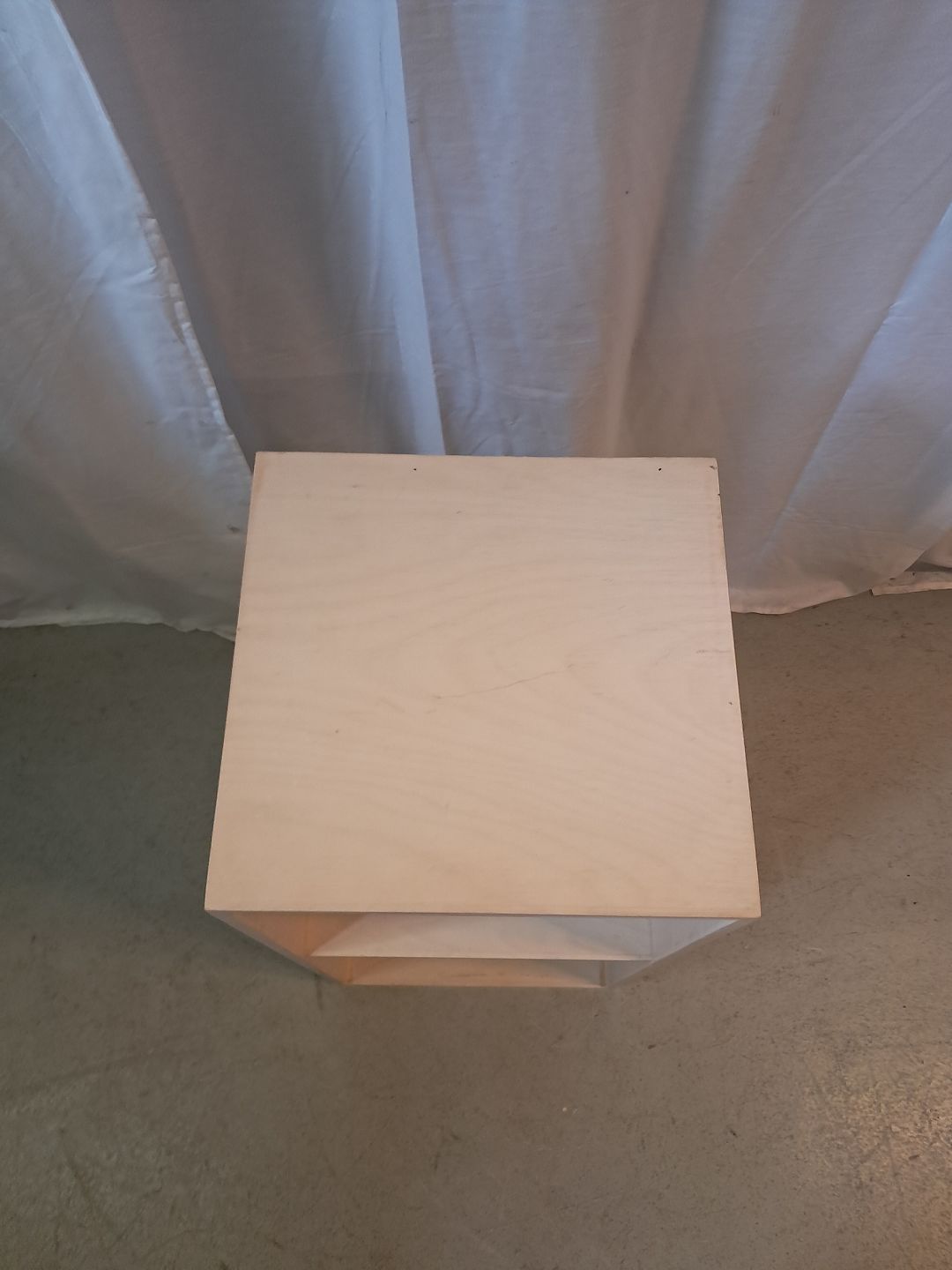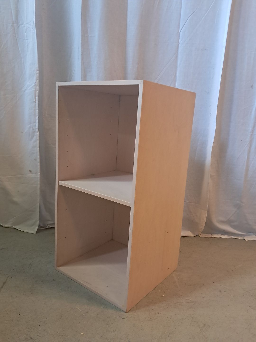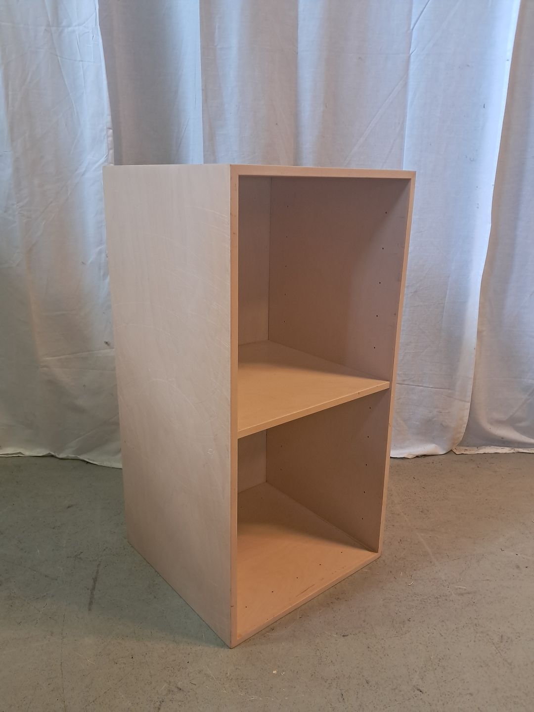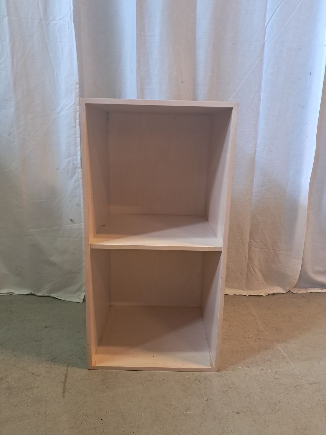 At-bo reolkasse i krydsfiner, fra 2000erne.Den har brugsspor og der medfølger ikke ophæng.