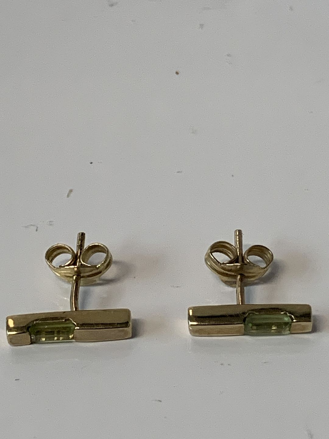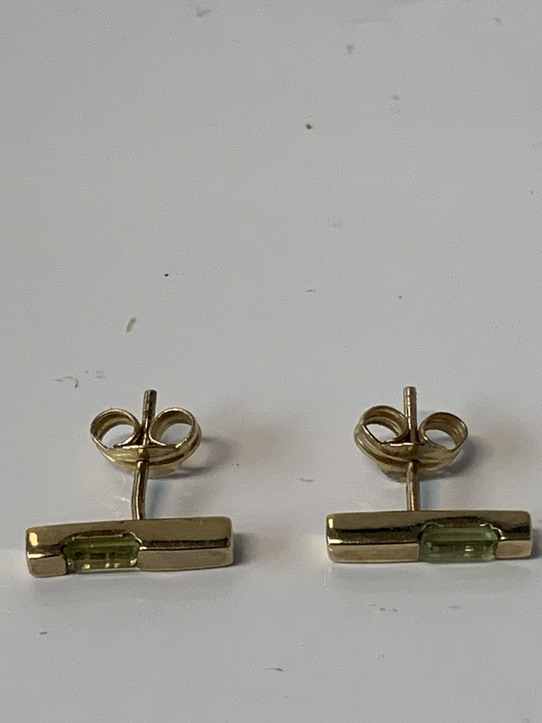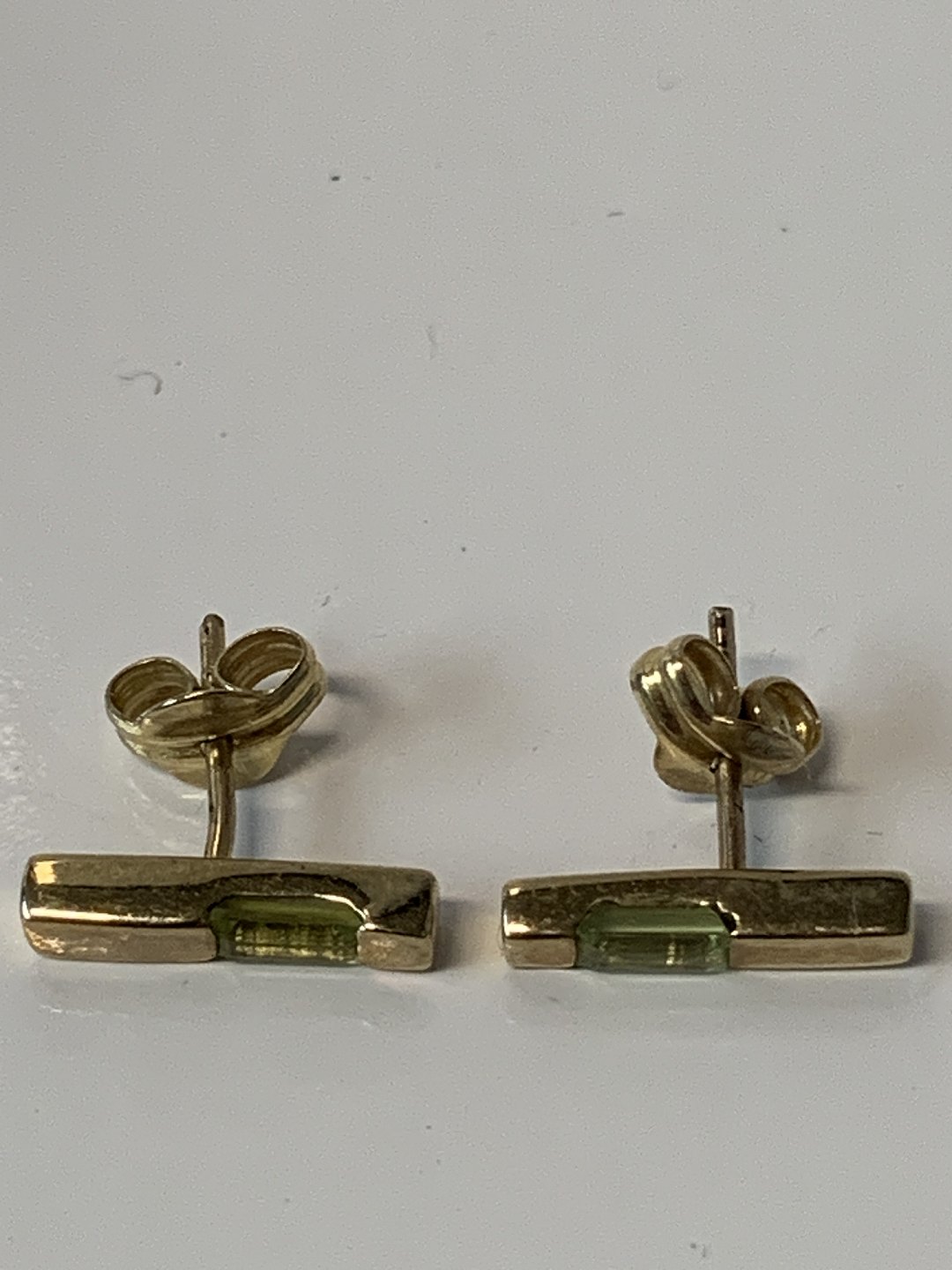 Guldøreringe i 8 karat guld, indlagt lyse grøn sten.