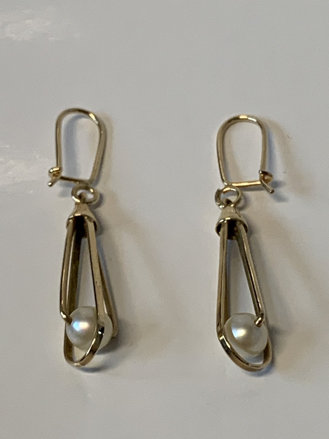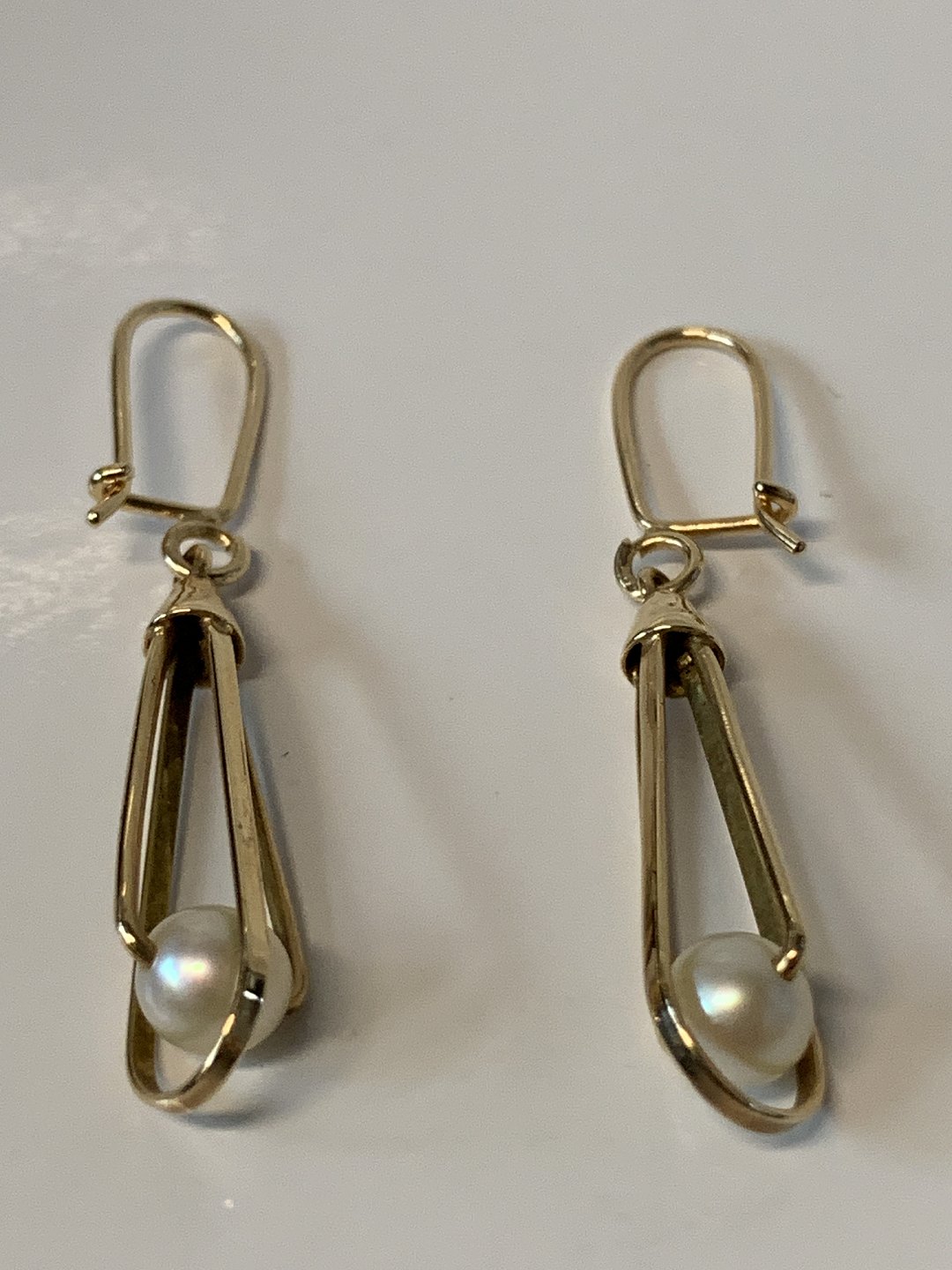 14 karat guld Øreringe med Perle.Længde 4,1 cm