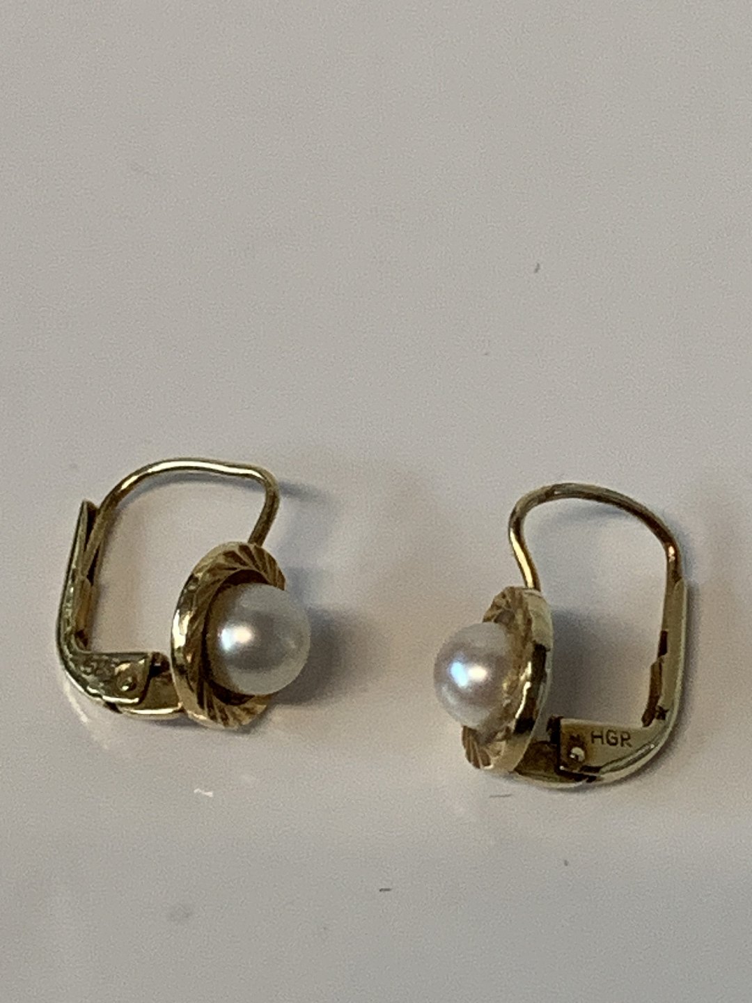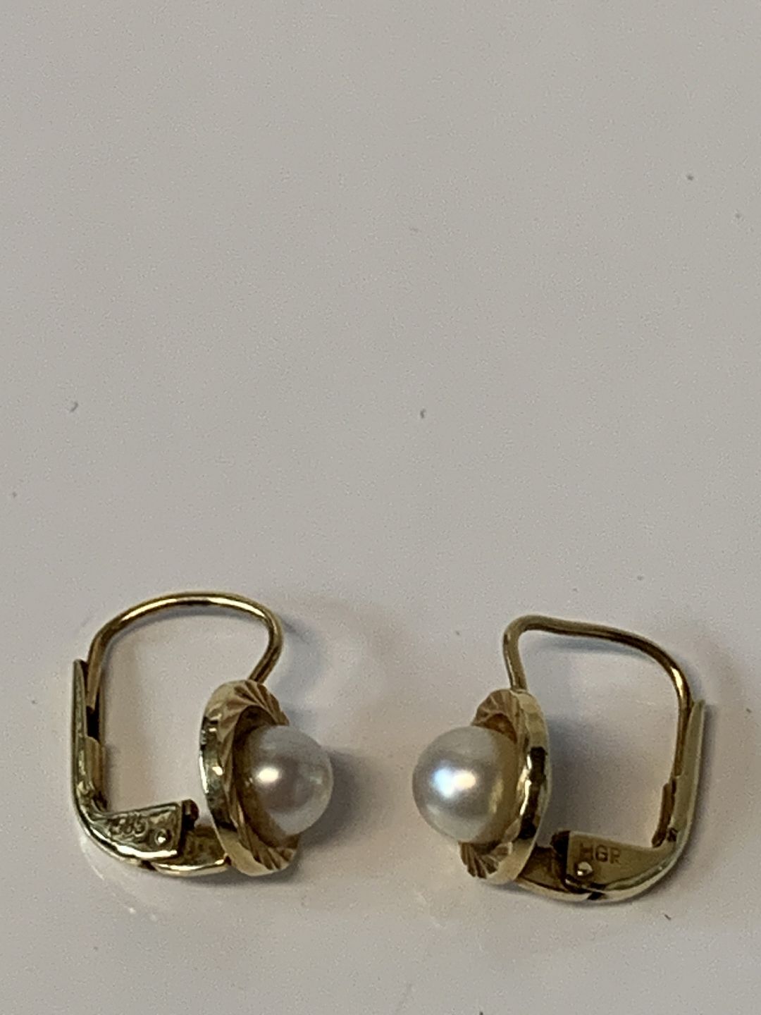 14 karat guld Øreringe med Perle.Stemplet HGR 585.