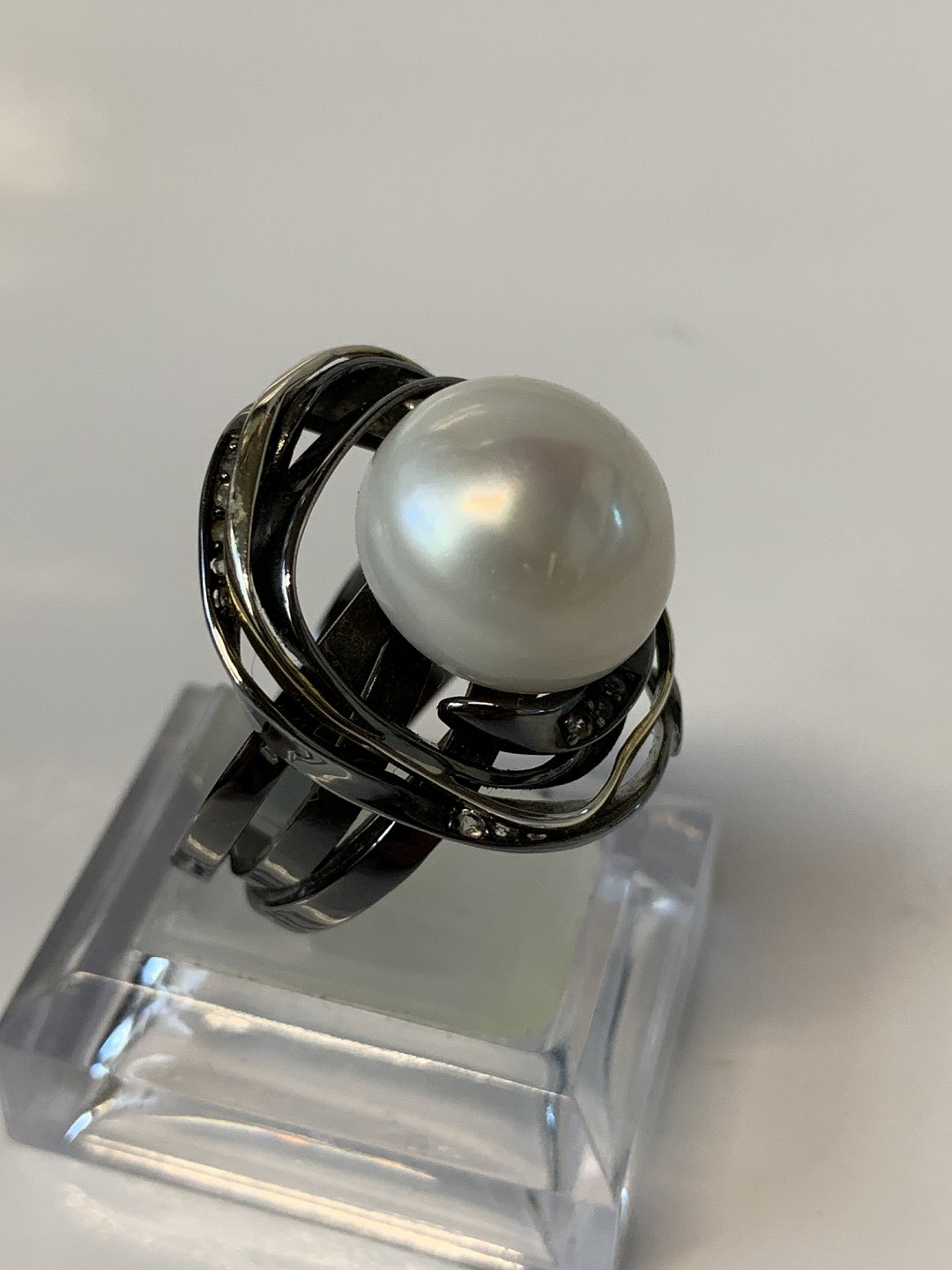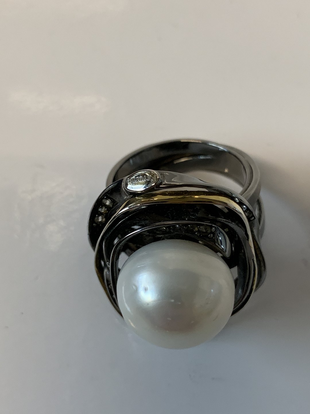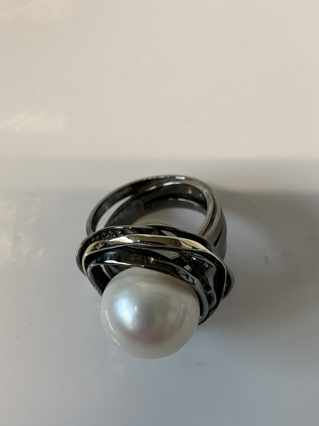 Designers Favorite ring med Perle og sten, Sterling sølvSort Rhodium og 18 karat guld belægning