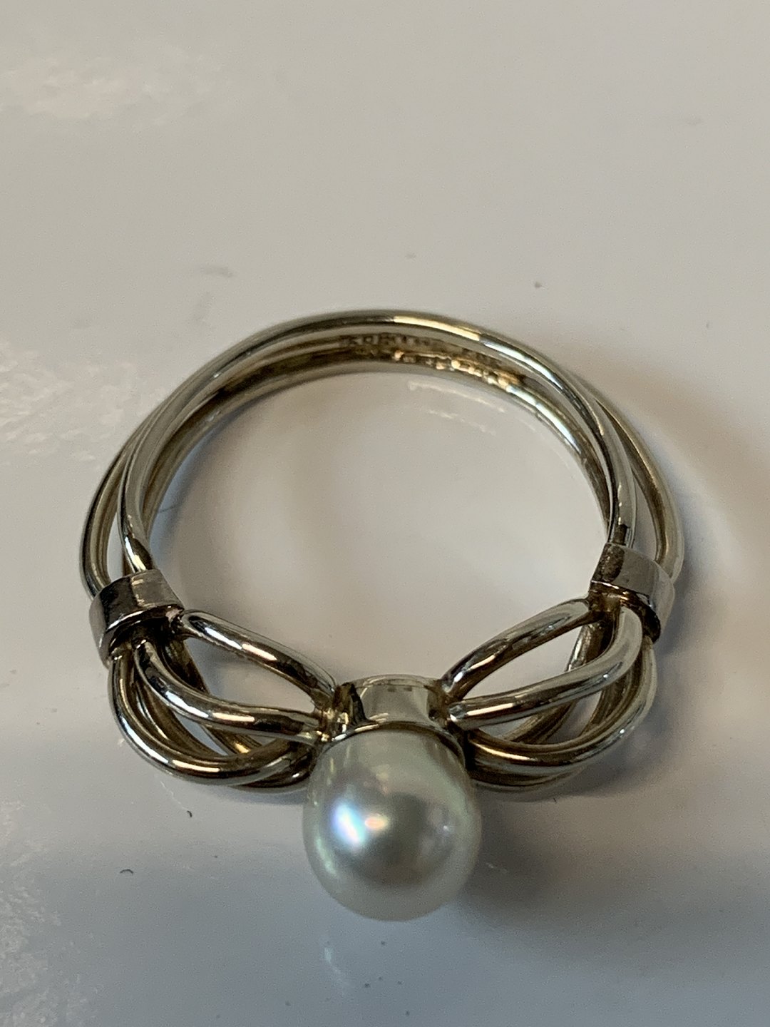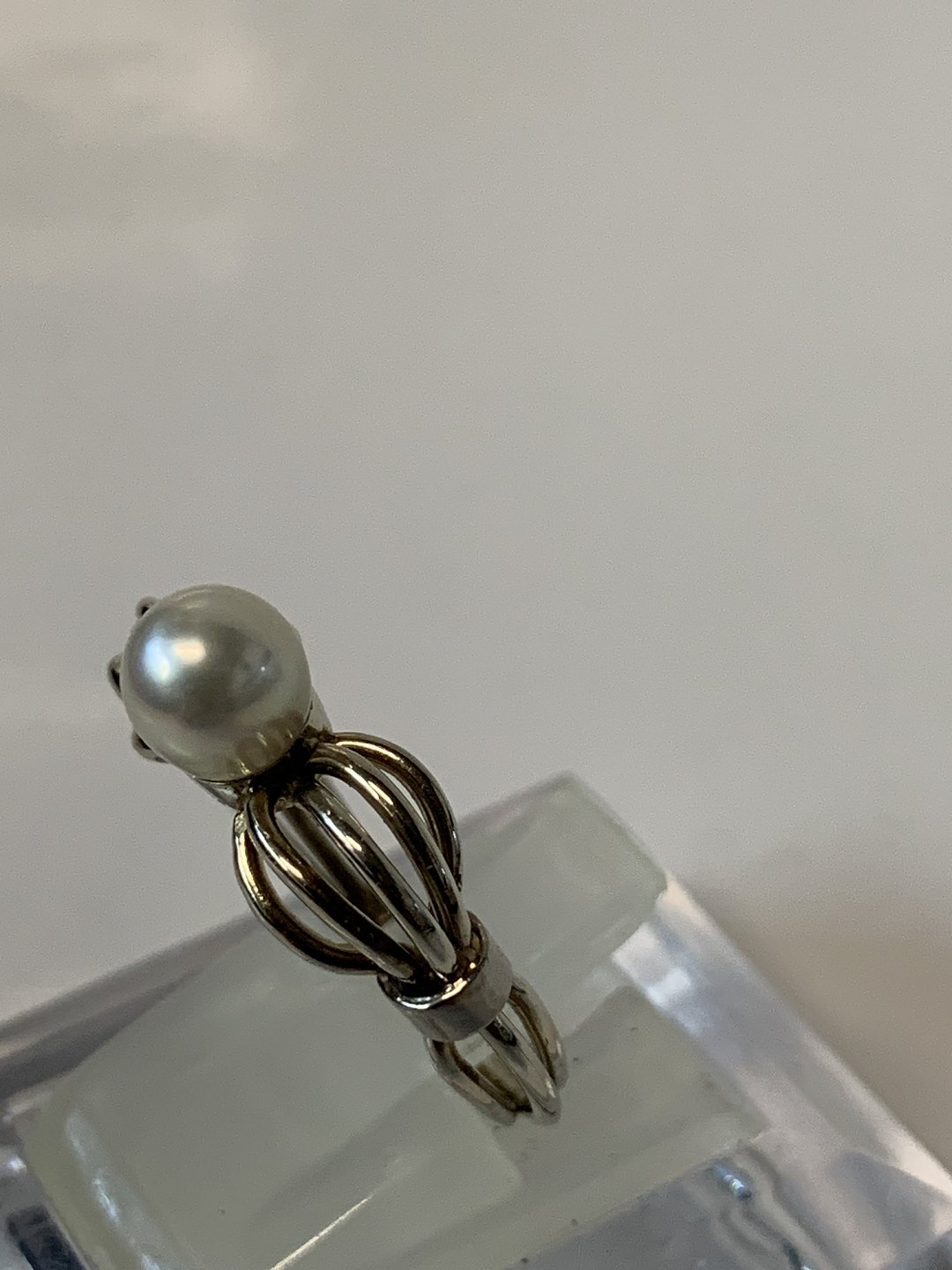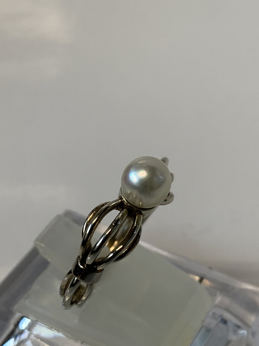 Elegant Damering i 14 karat hvidguld, med indlagt perle.