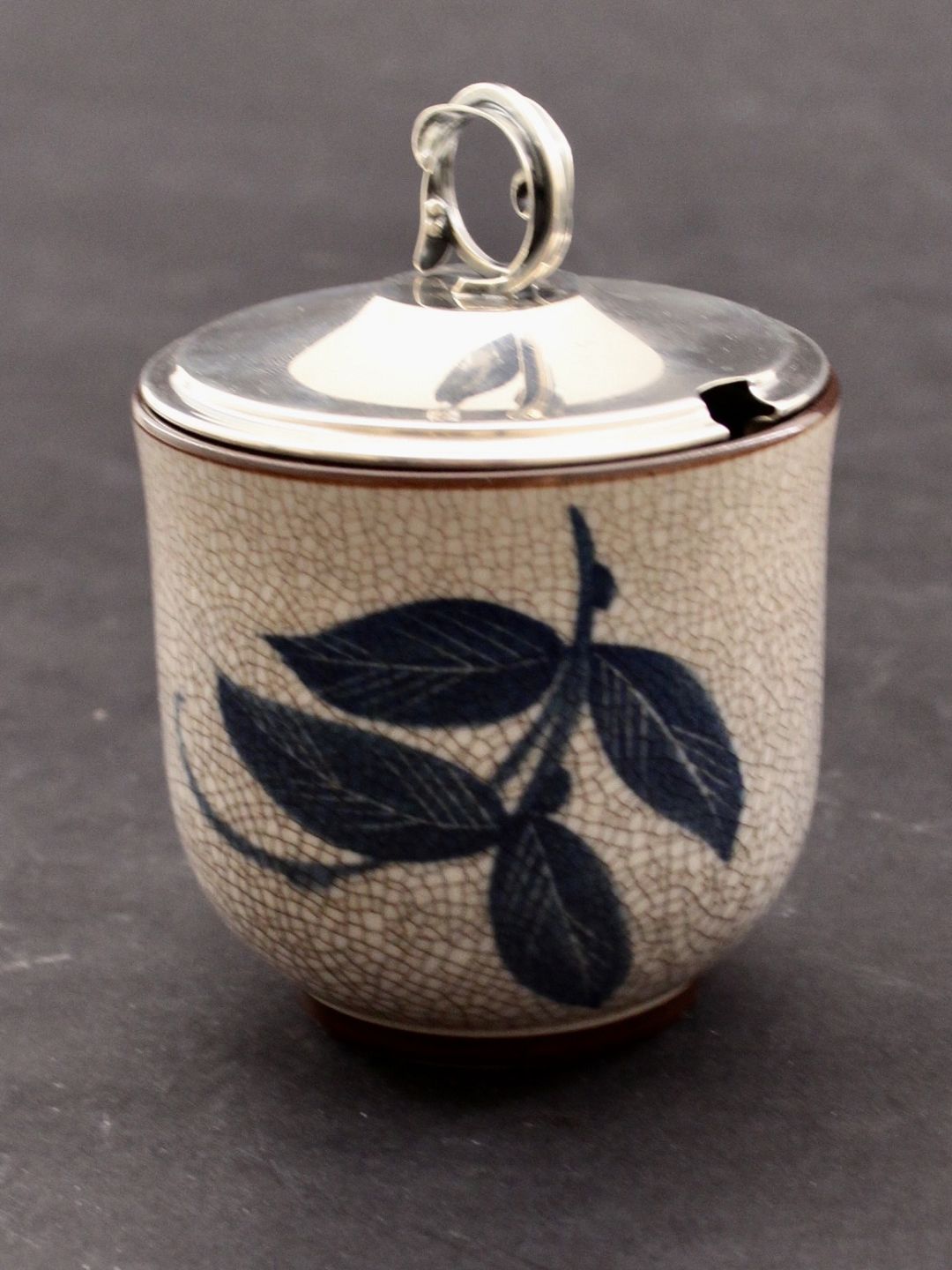 B&G syltetøjsskål krukke med tretårnet sølv låg fra Hugo Grün København emne nr. 619617