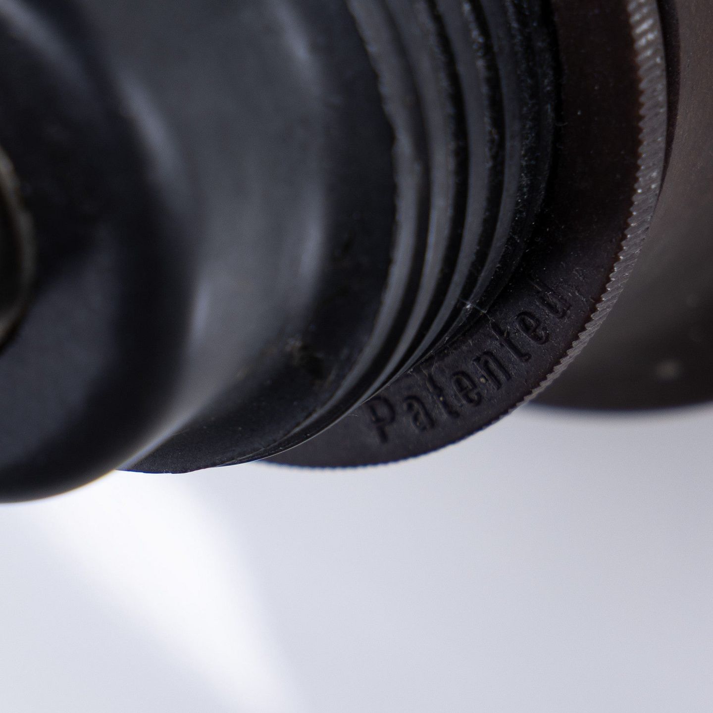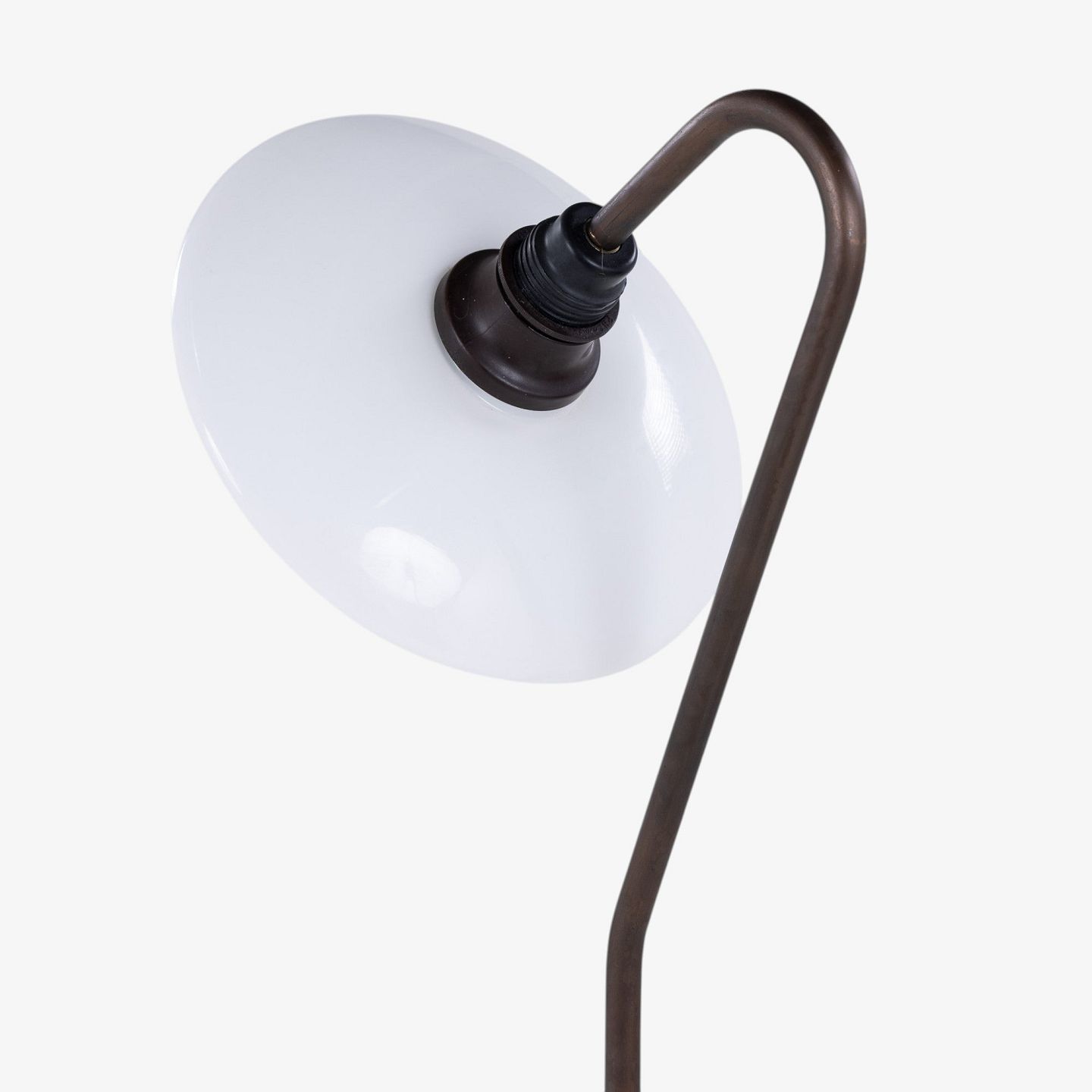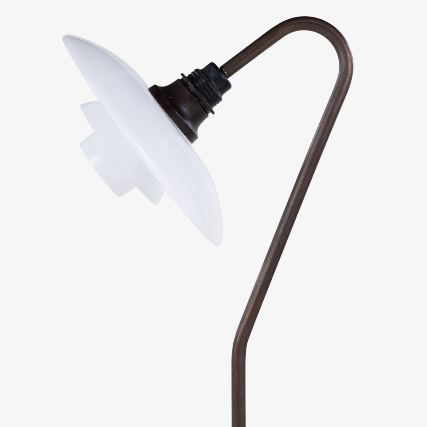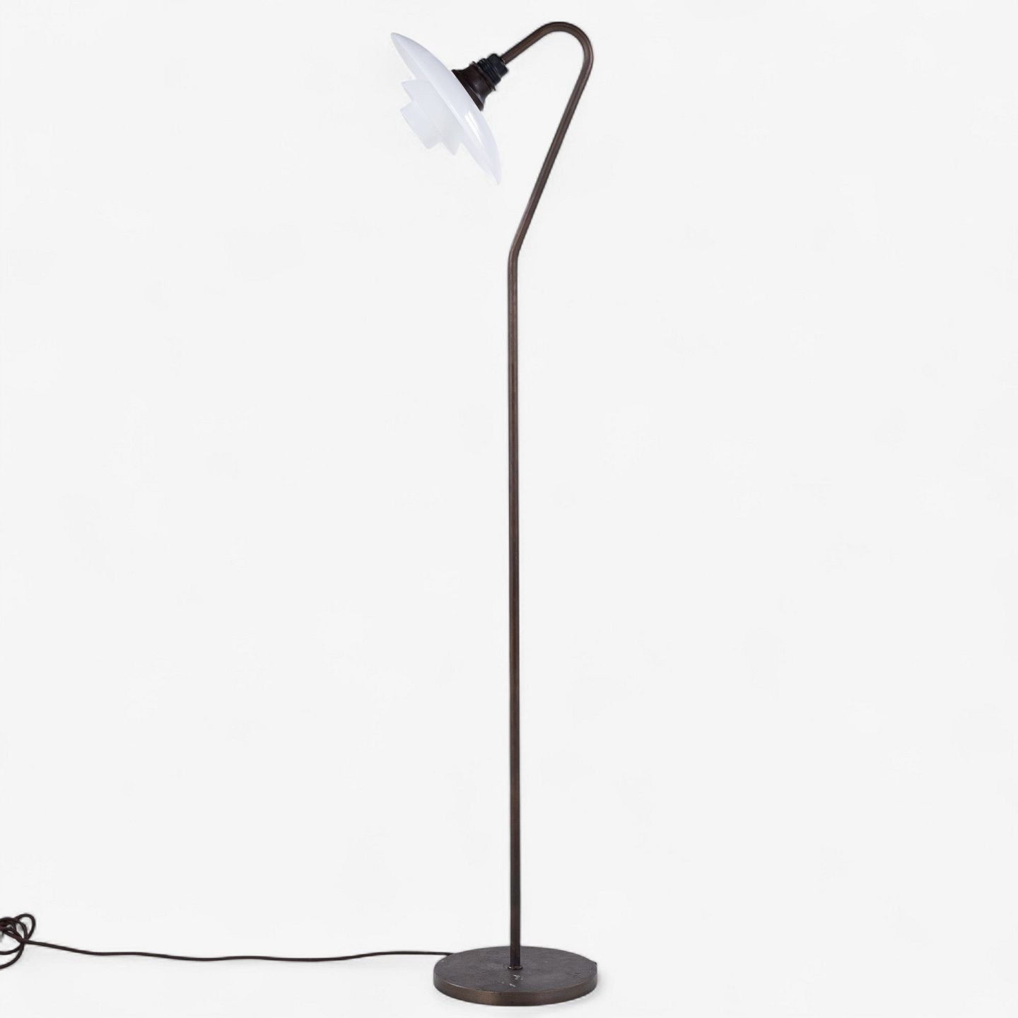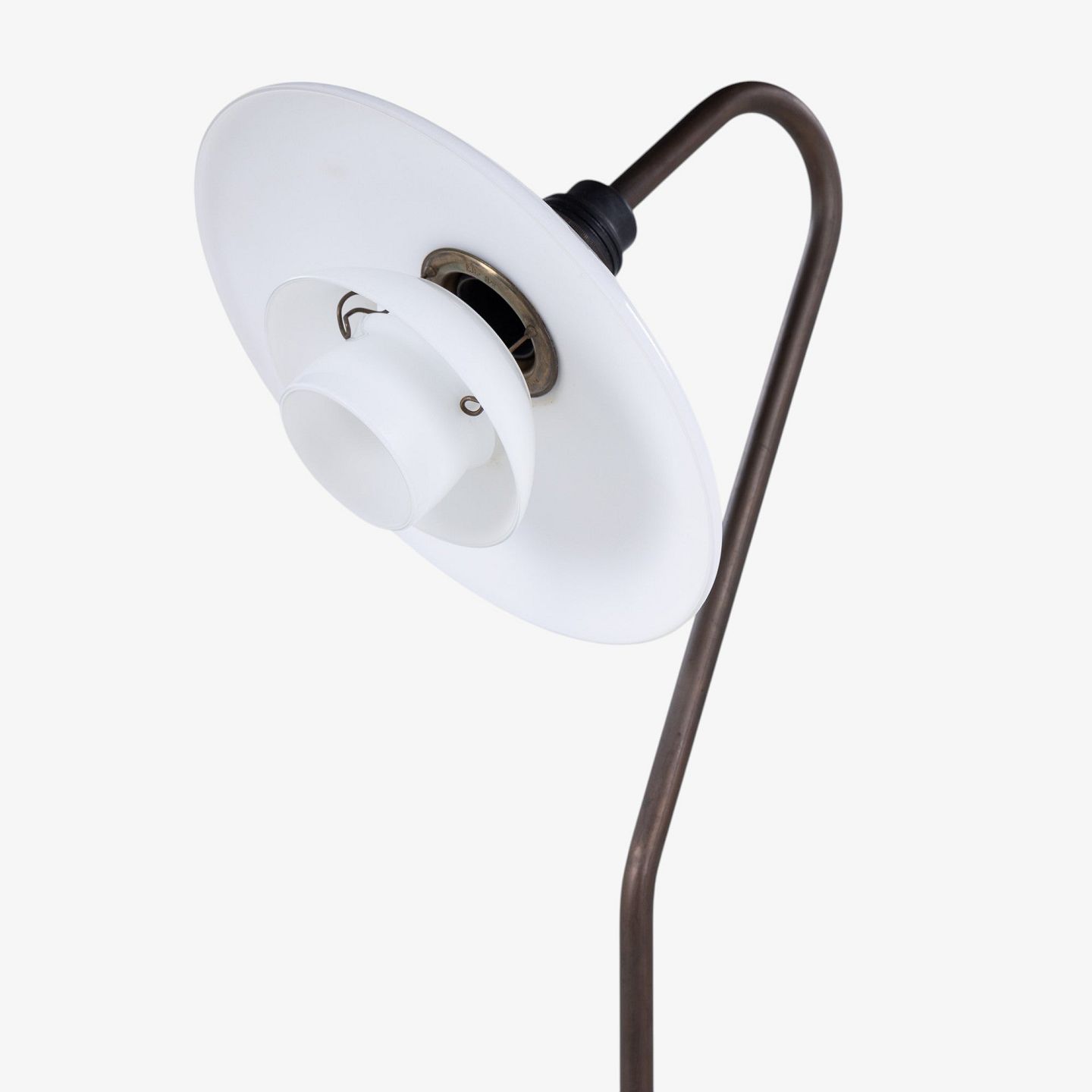 Louis Poulsen / Poul Henningsen.PH 3/2 - 'Syvtallet' gulvlampe med stel i bruneret messing og skærme i hvidt opalglas. Stemplet 'Patented'.