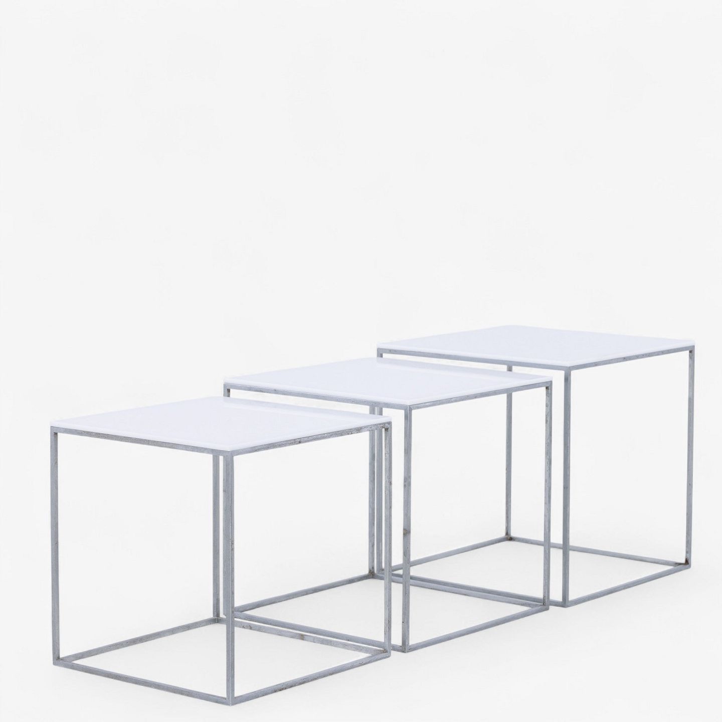 PK 71 - Indskudsborde i stål med top i hvid formica (3 stk).