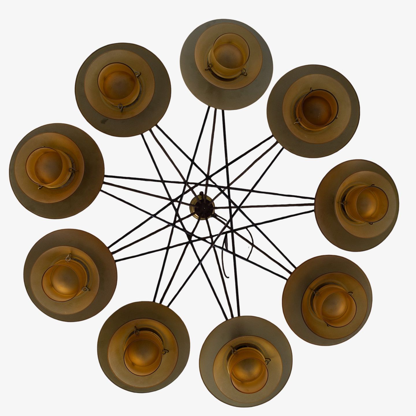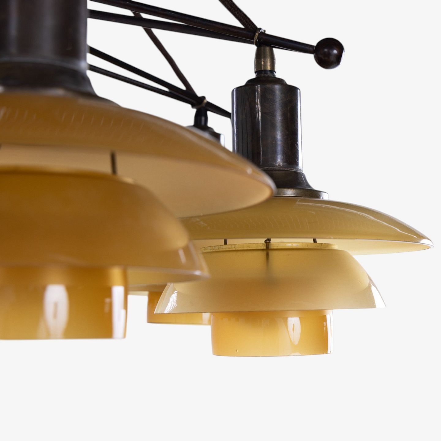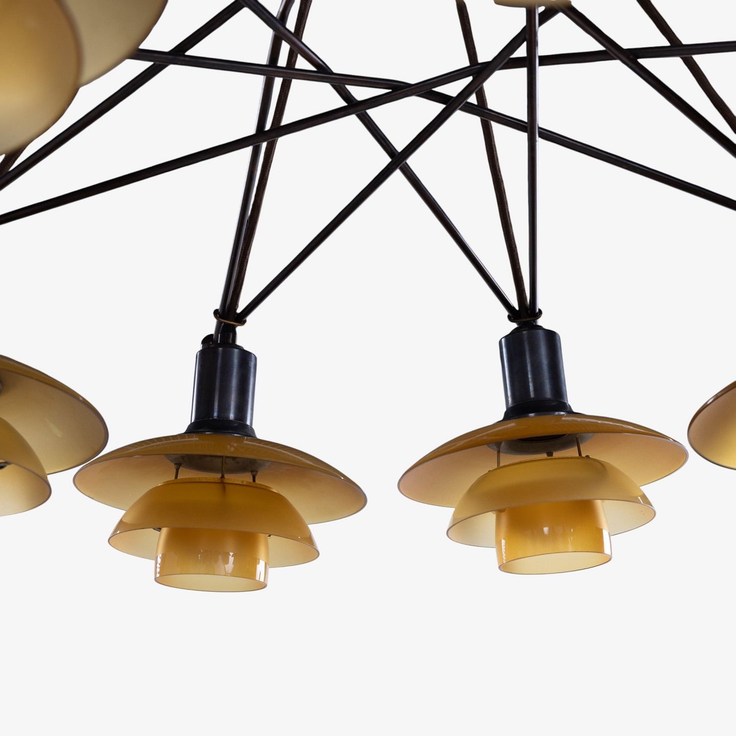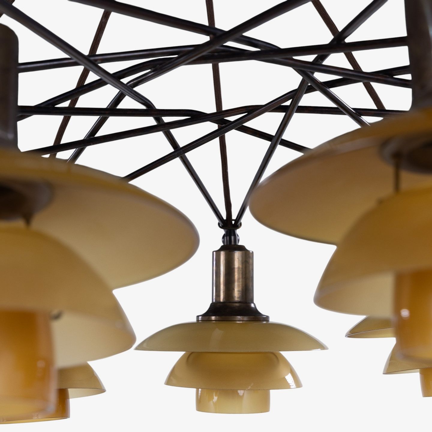Poul Henningsen / Louis Poulsen.PH 2/2 - Sjælden 'Stjernekrone' i bruneret messing med skærme i ravfarvet glas. Stemplet 'Patented'.