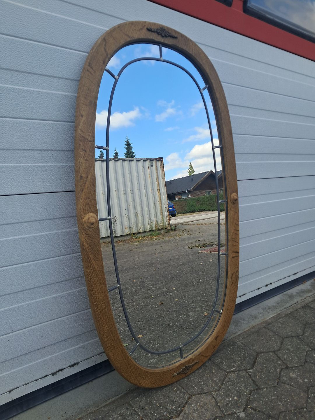 Spejl i massivt egtræ, fra 1980erne.Det har brugsspor.