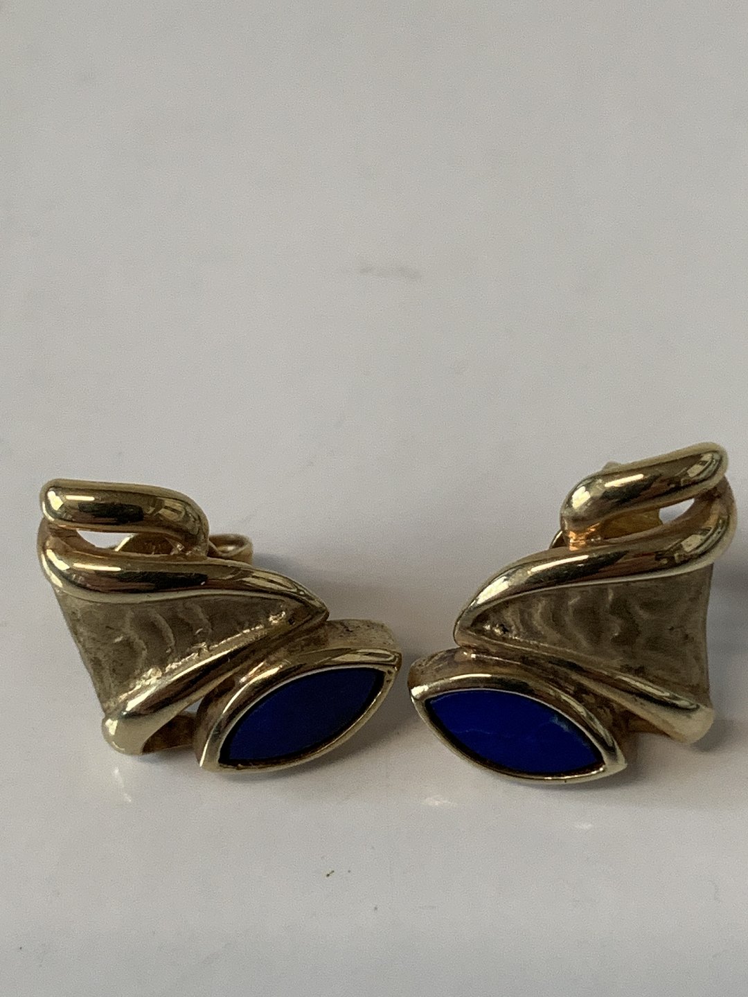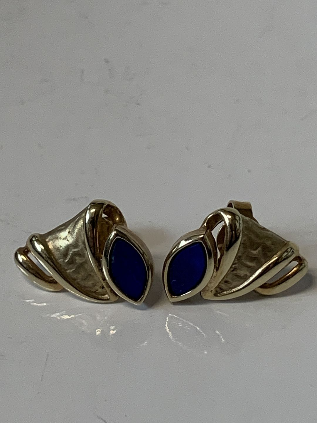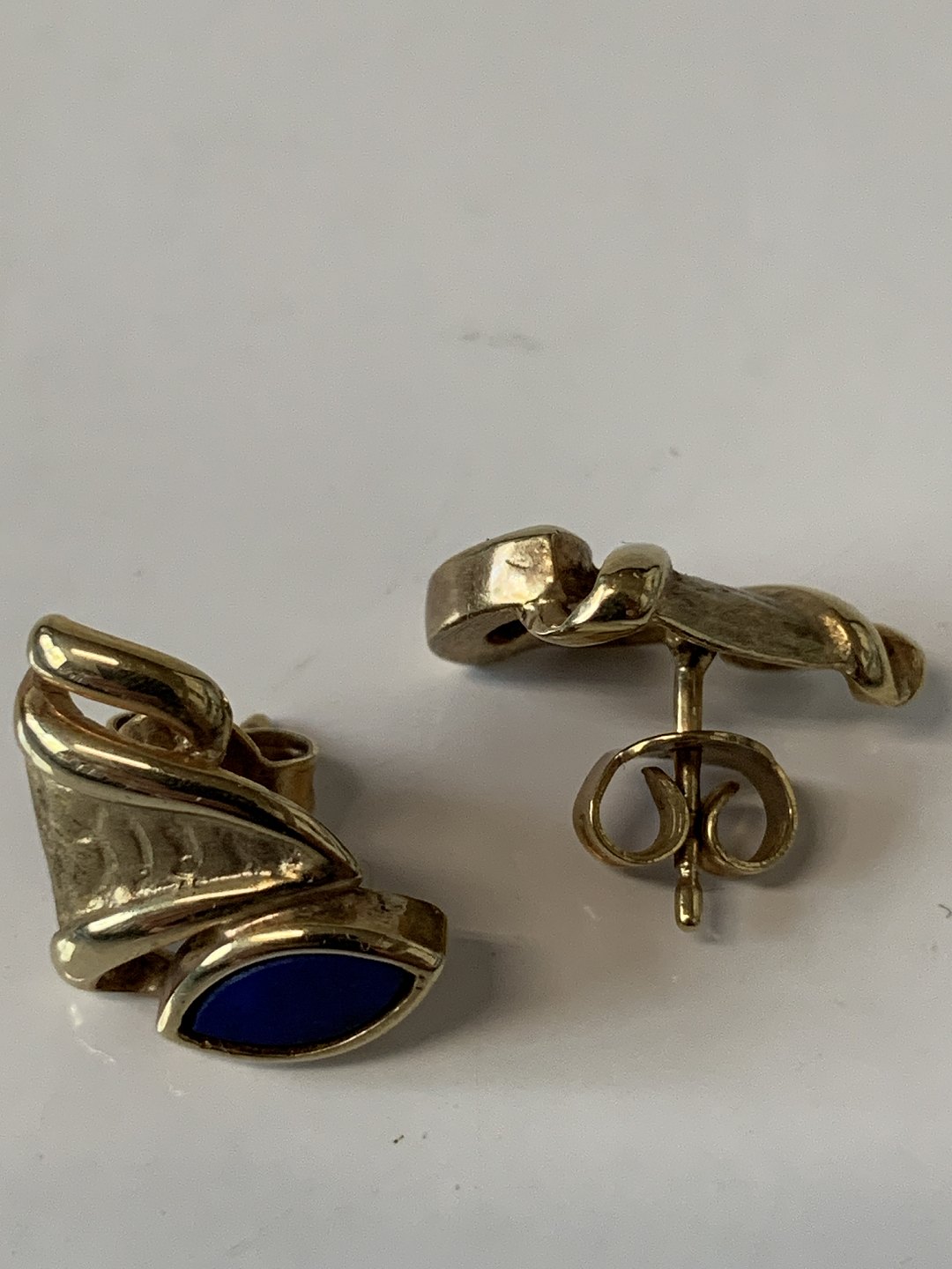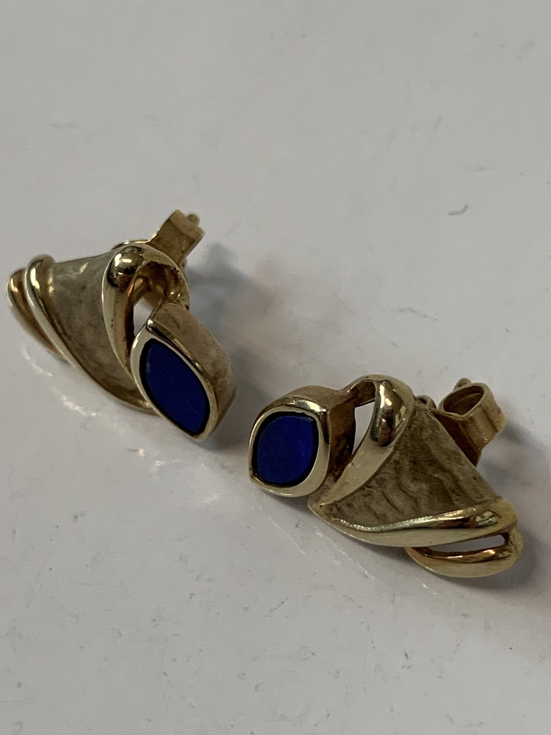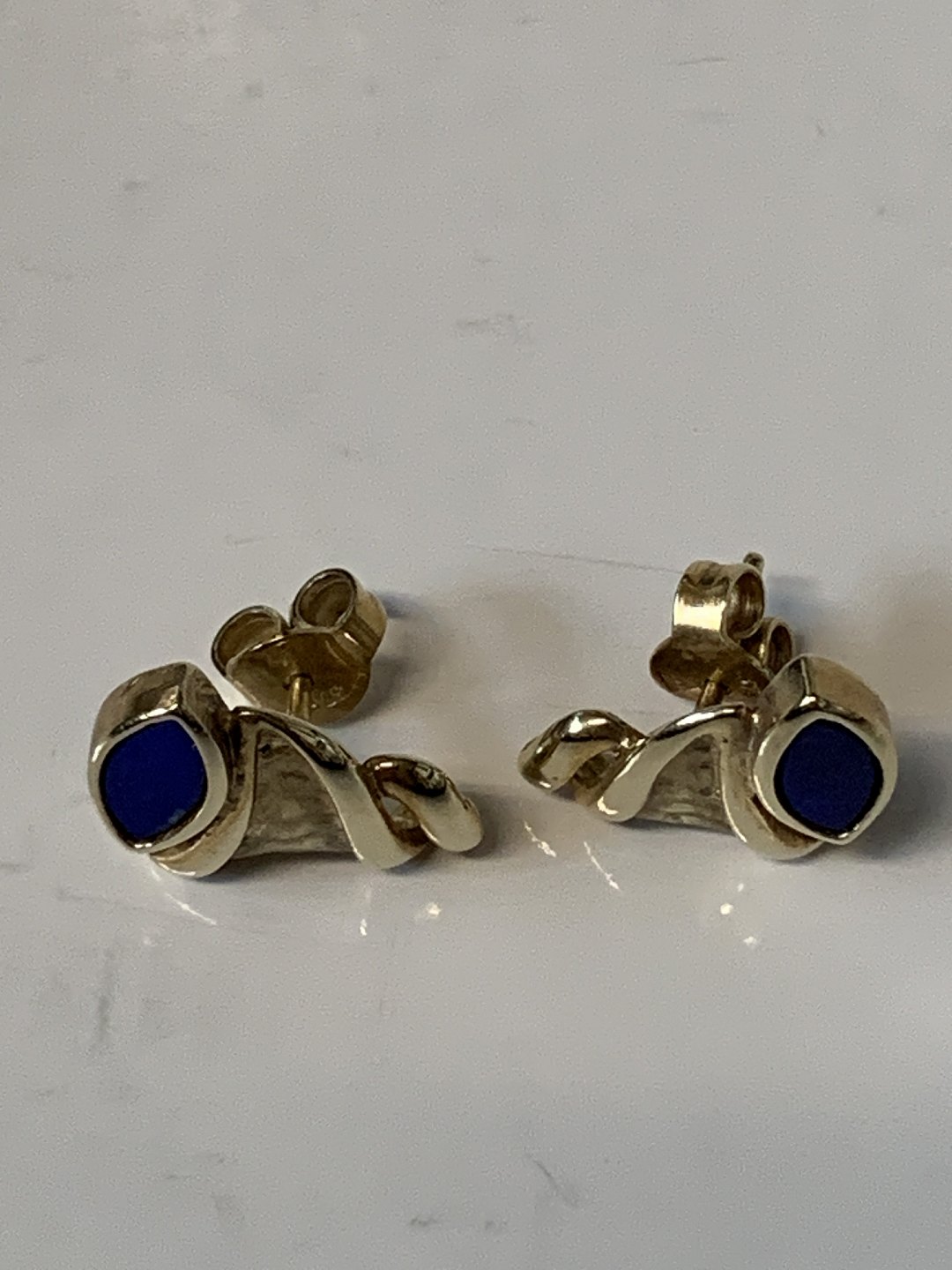 Øreringe med Lapis i 9 karat guld.Måler 1,5 x 1,1 cm.