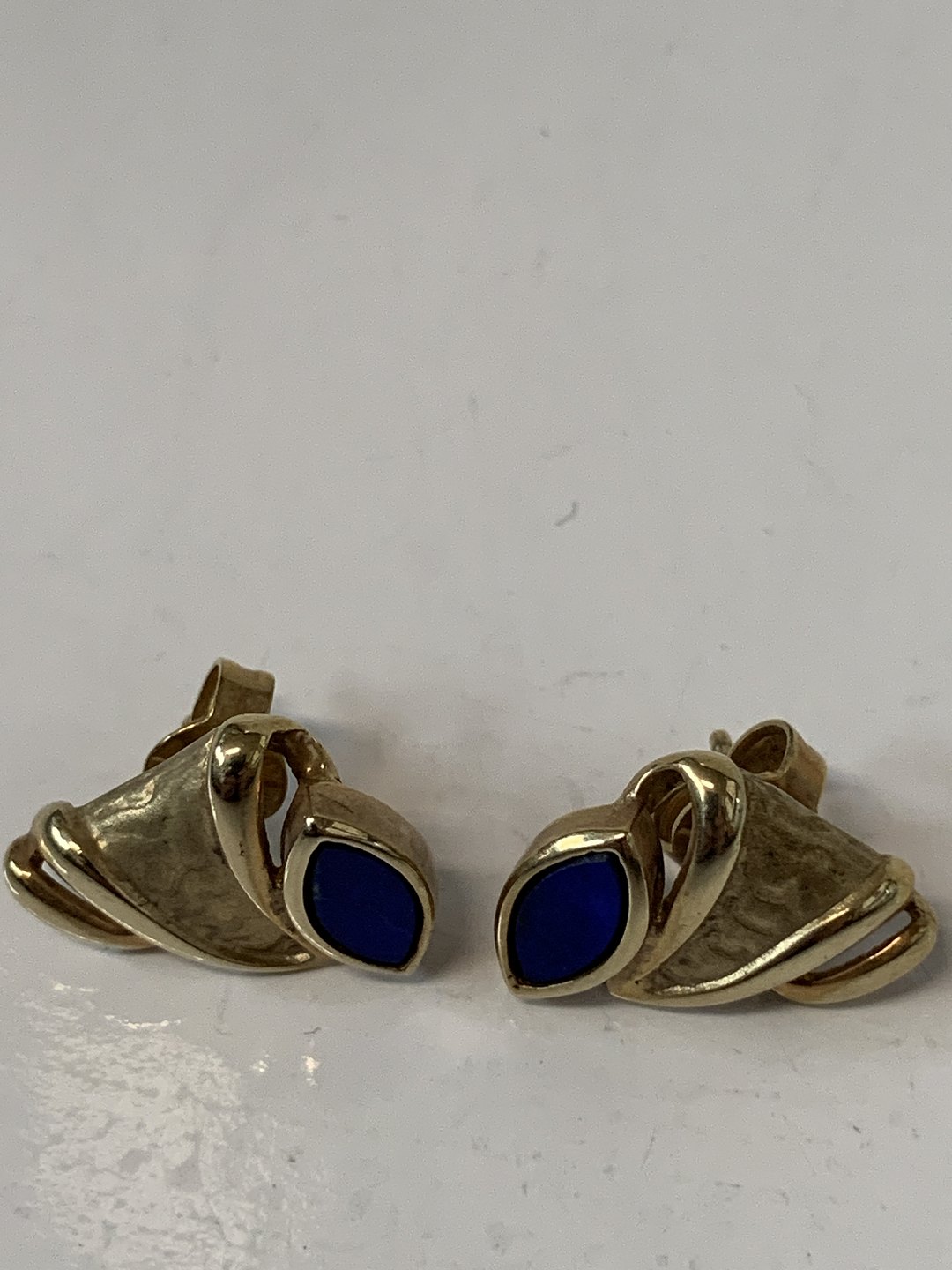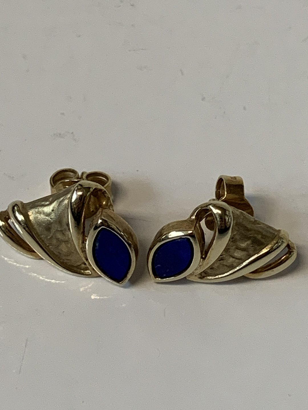 9 karat guld, Øreringe med en Lapis.Længde 1,5 cm.