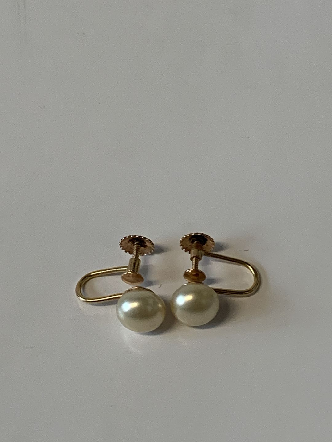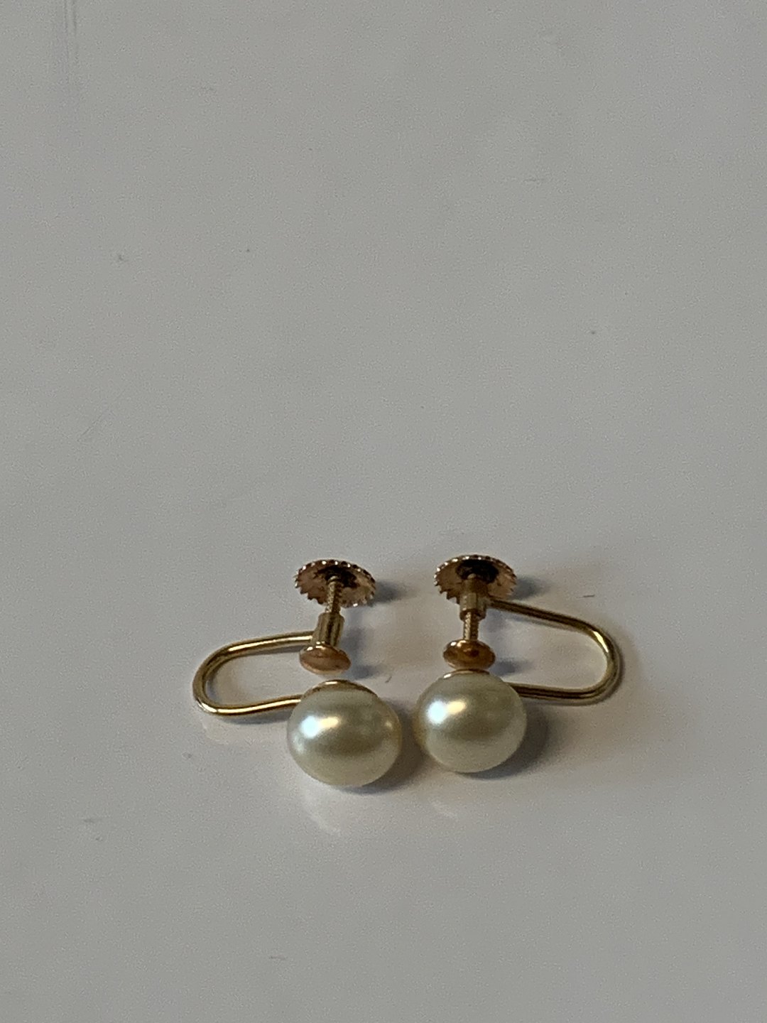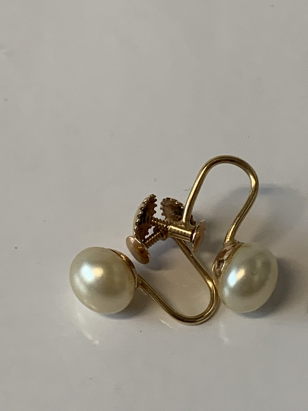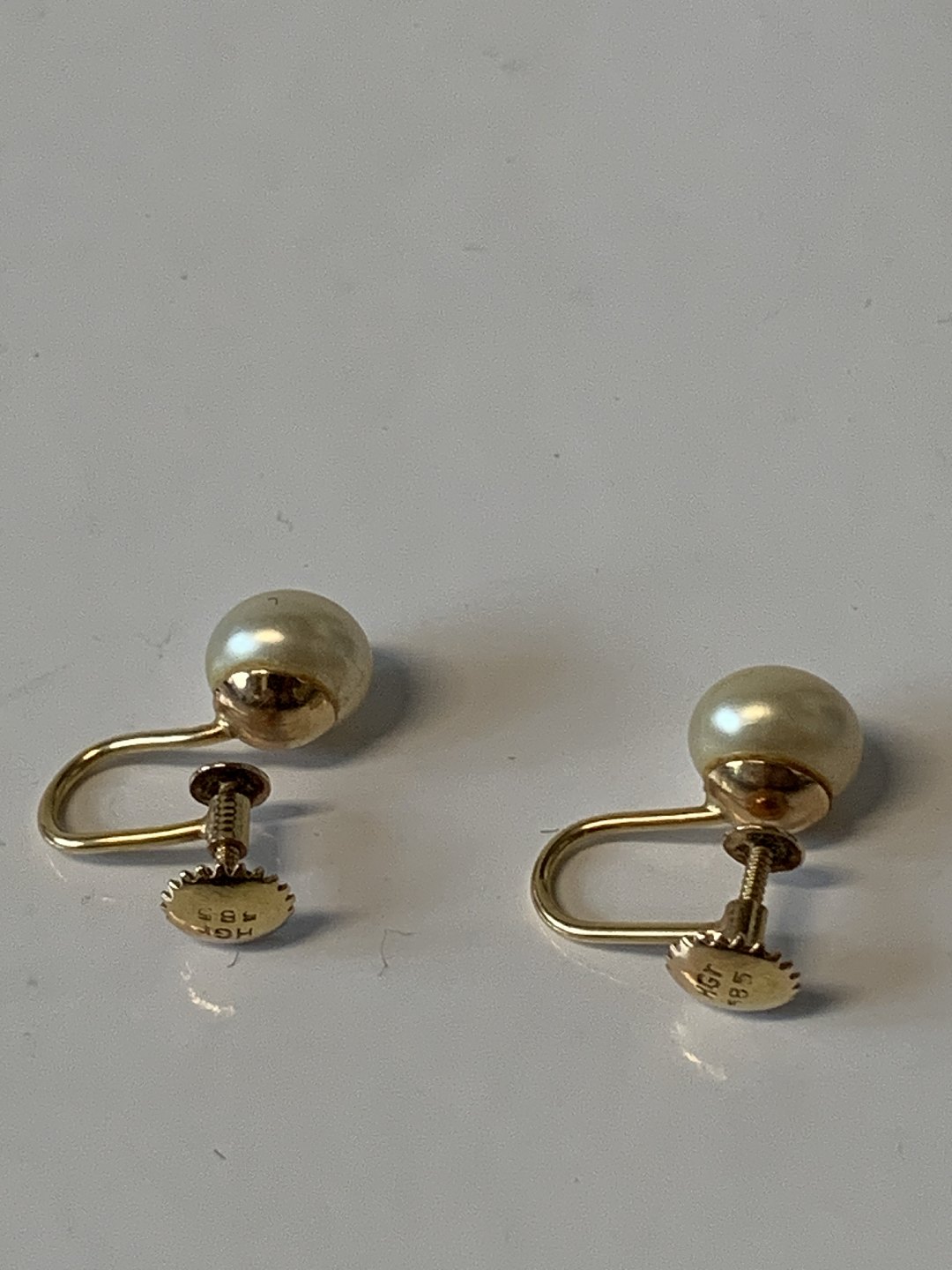 Øreringe med perle, 14 Karat Guld med Skruelås.Stemplet: 585, H.Gr.