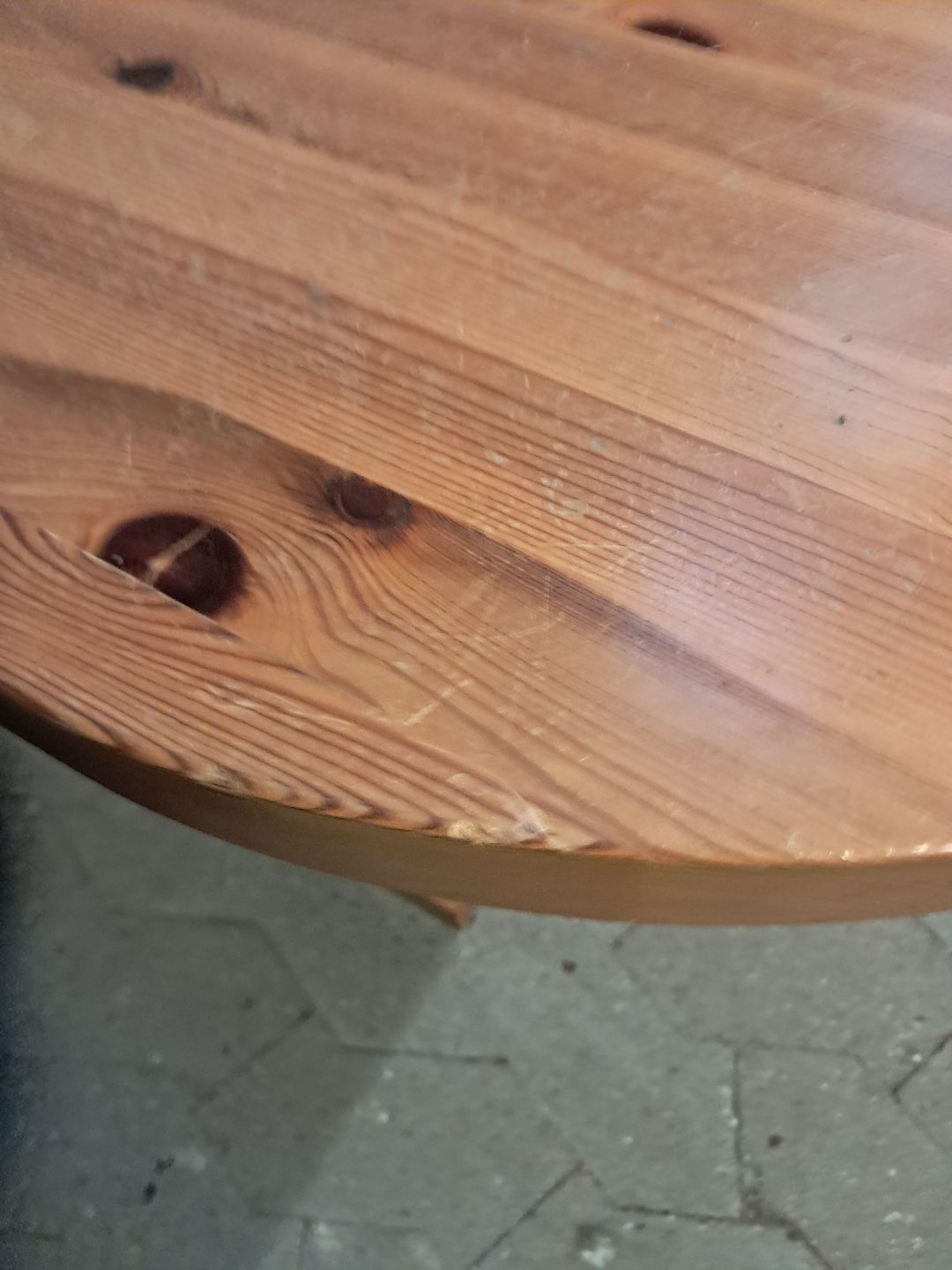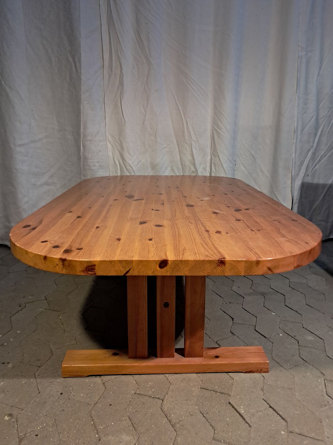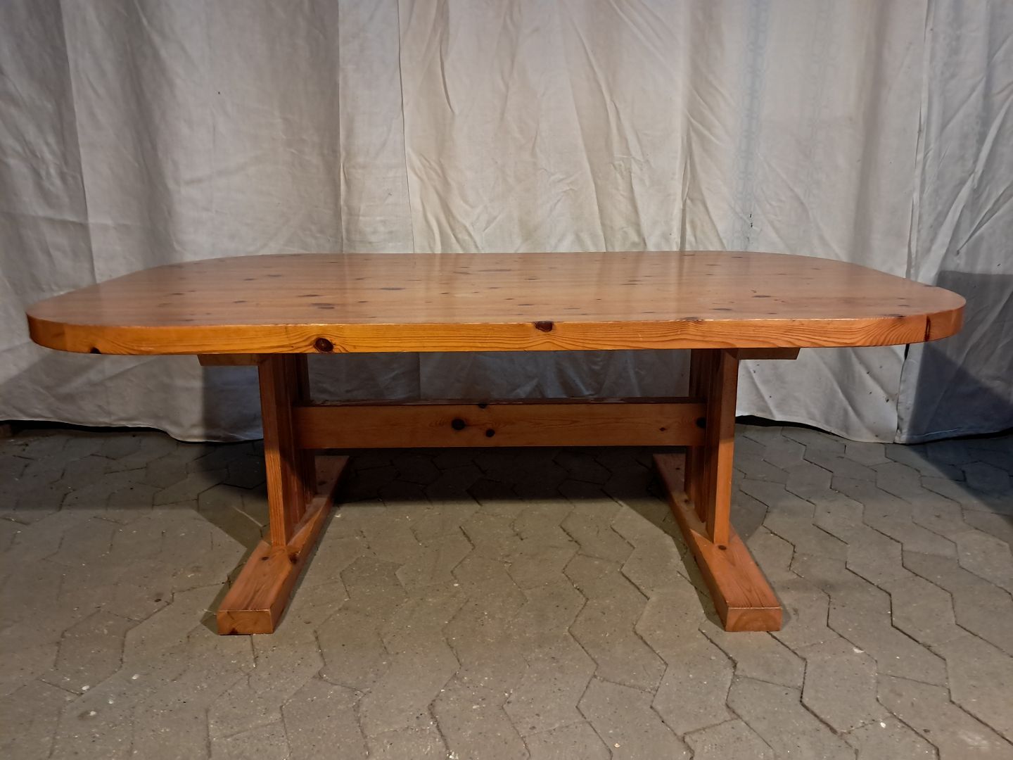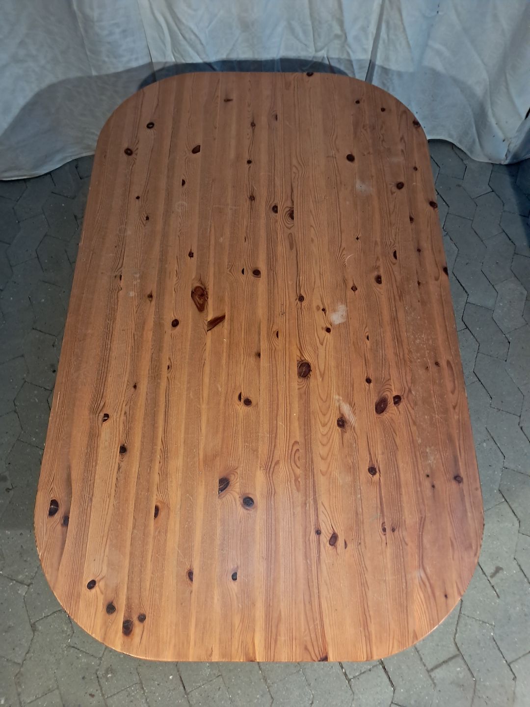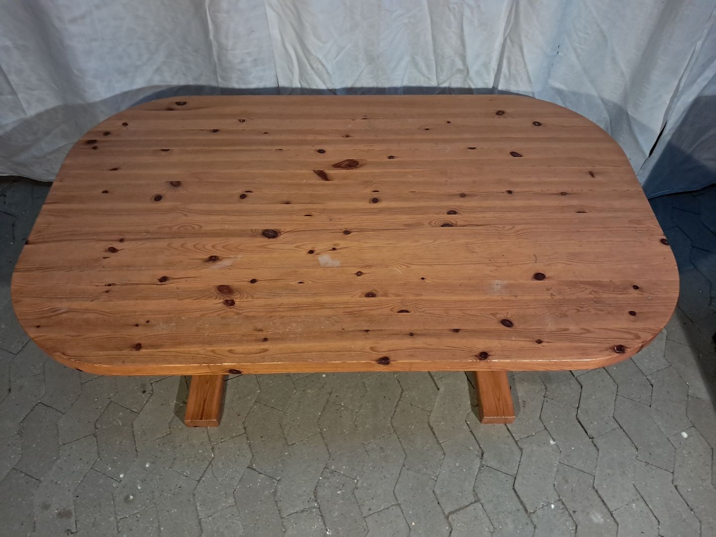 Sofabord i massivt fyrretræ, fra 1980erne.Det har brugsspor og bordpladen trænger til en slibning.