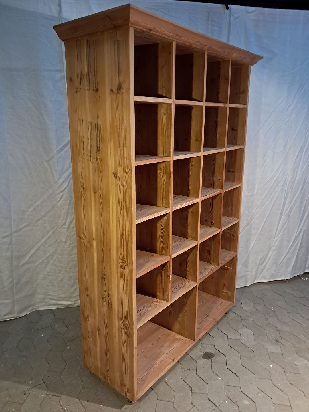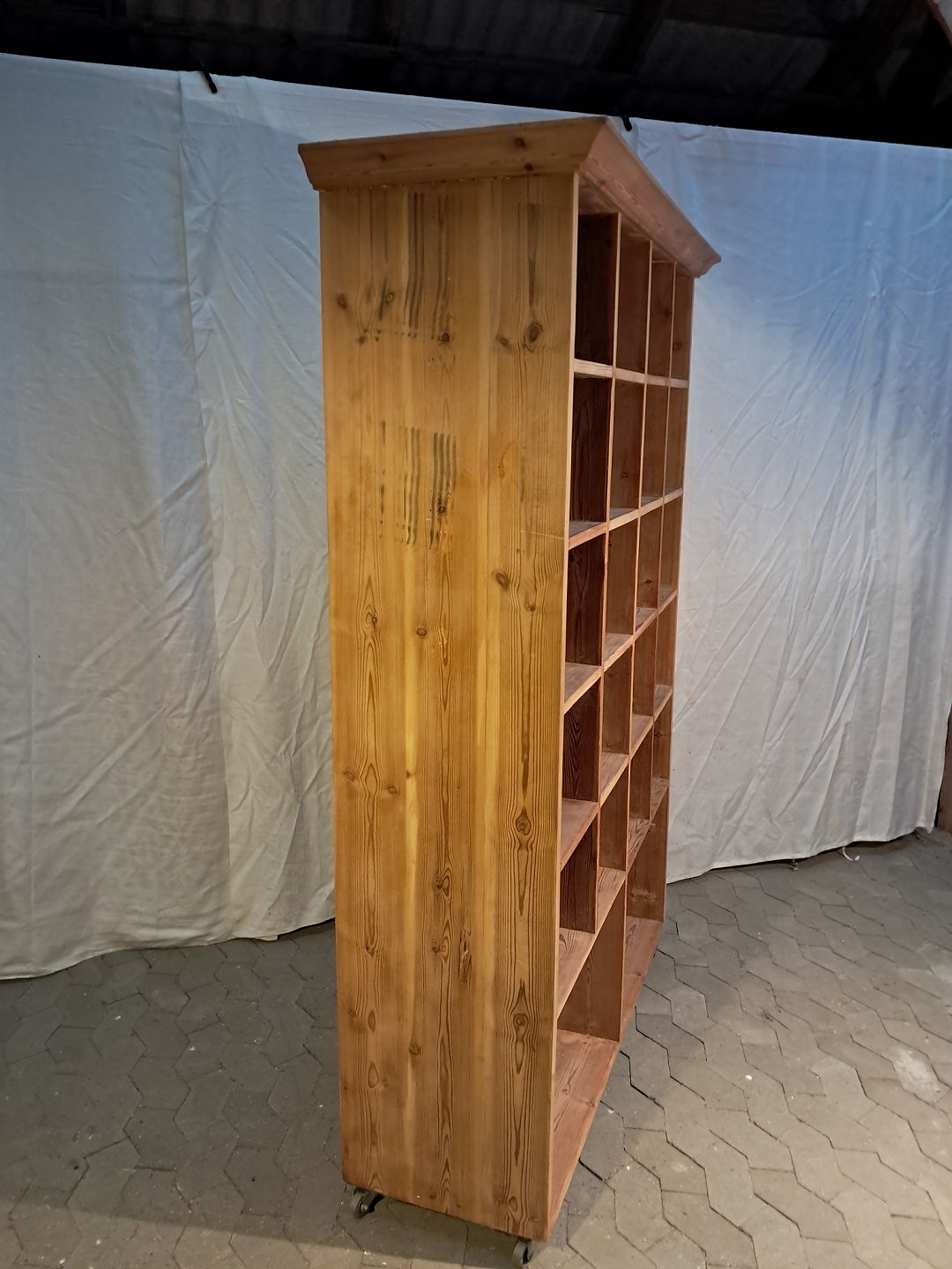 Reol i massivt fyrretræ, fra 1930erne.Den har brugsspor.