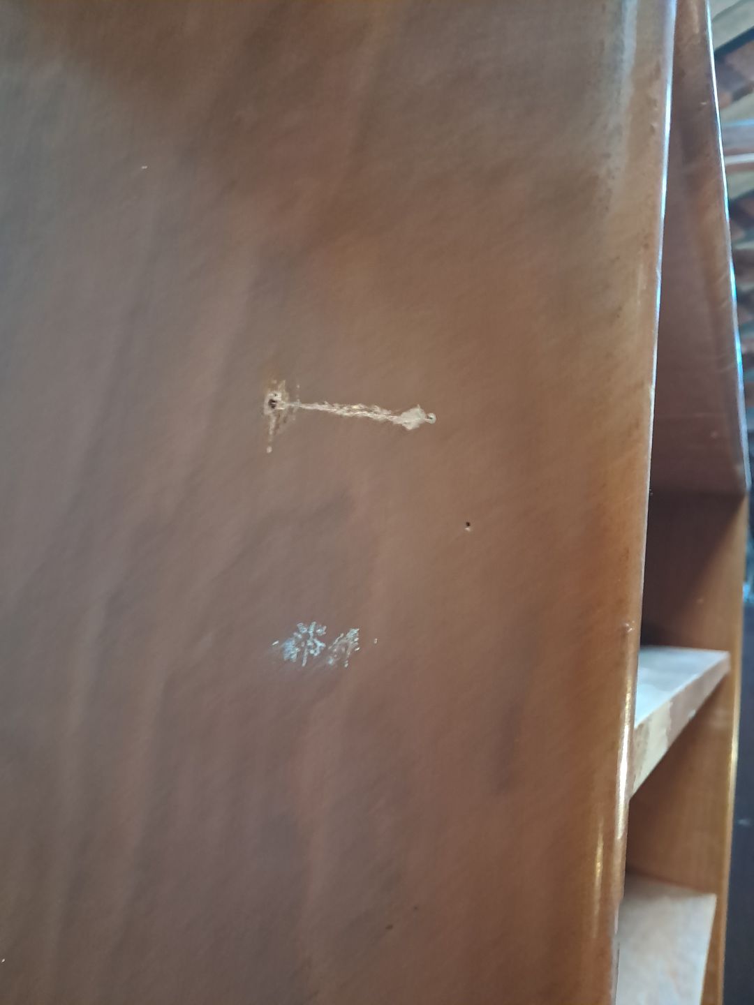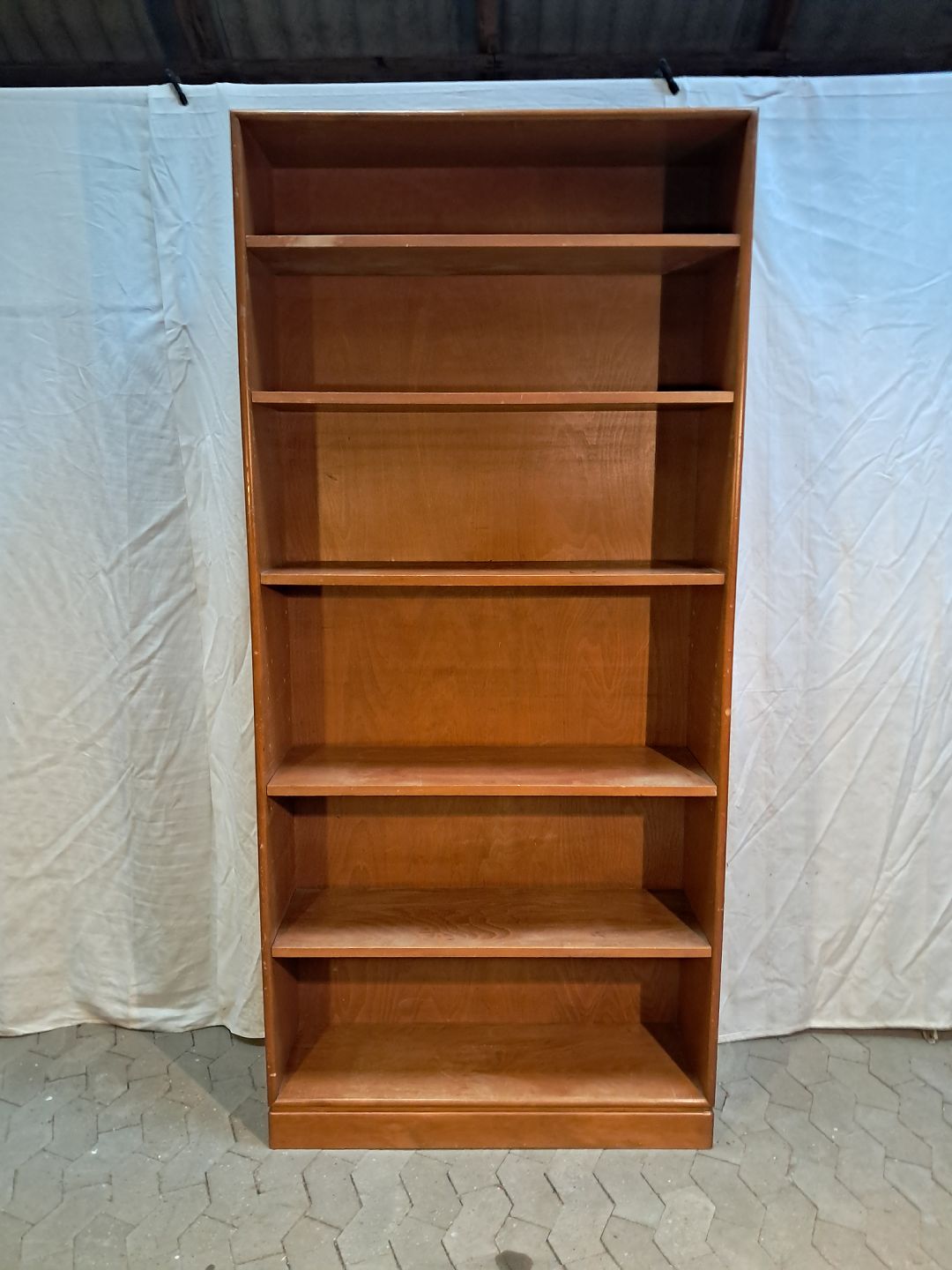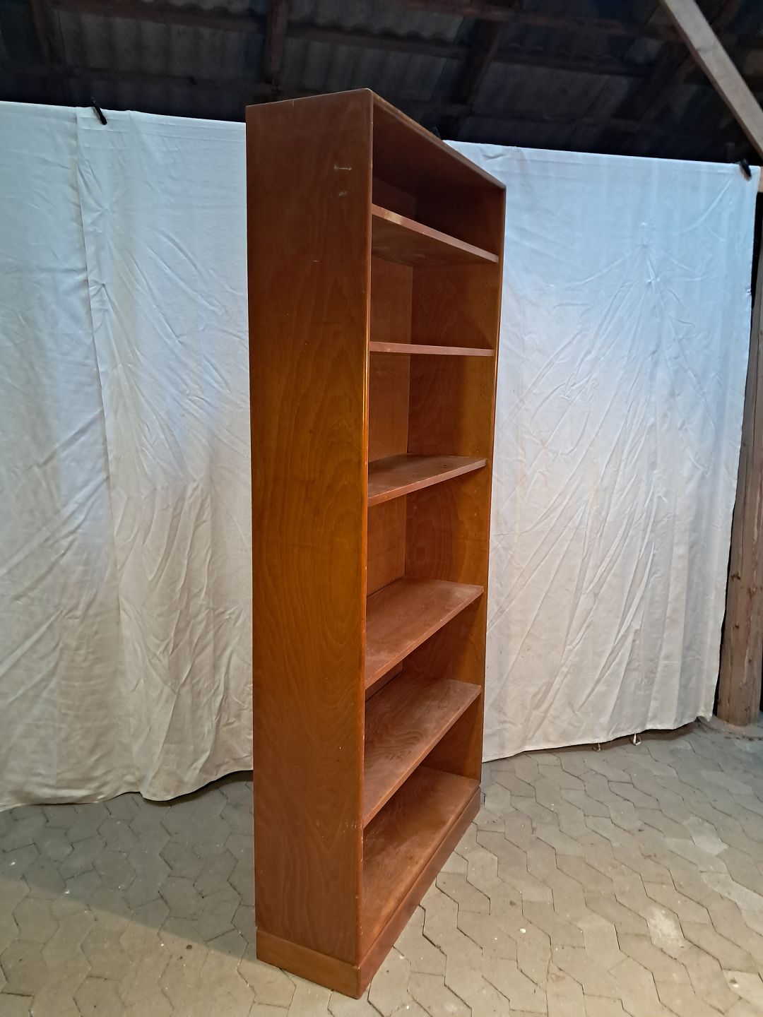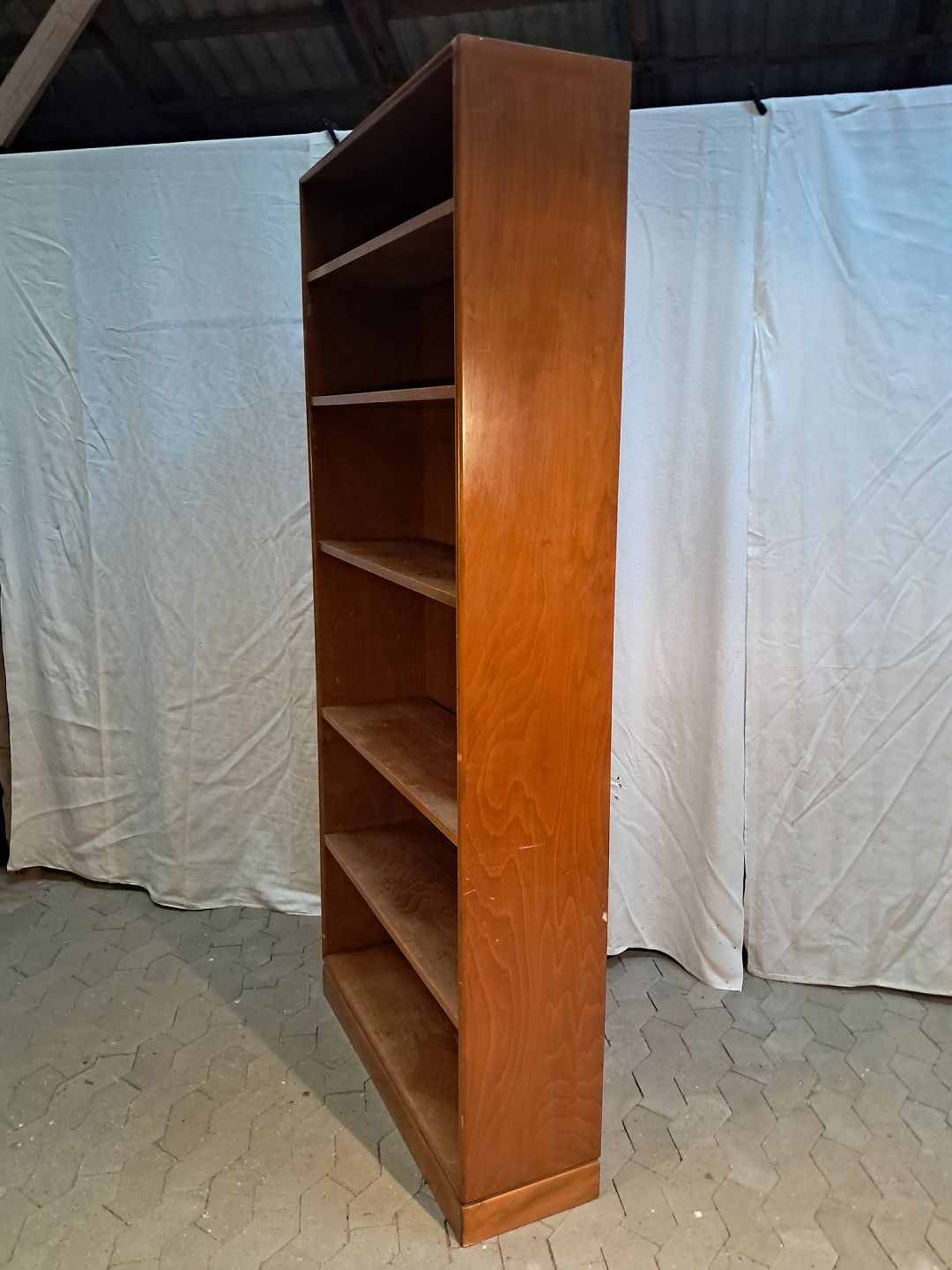 Reol i fineret bøgetræ, fra 1960erne.Den har Breugsspor.