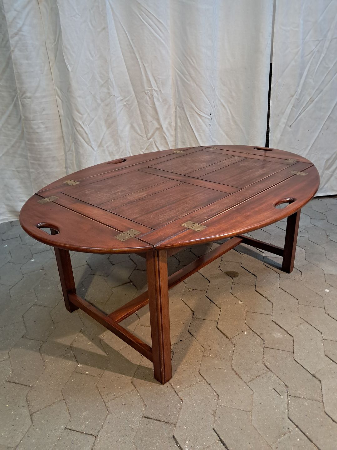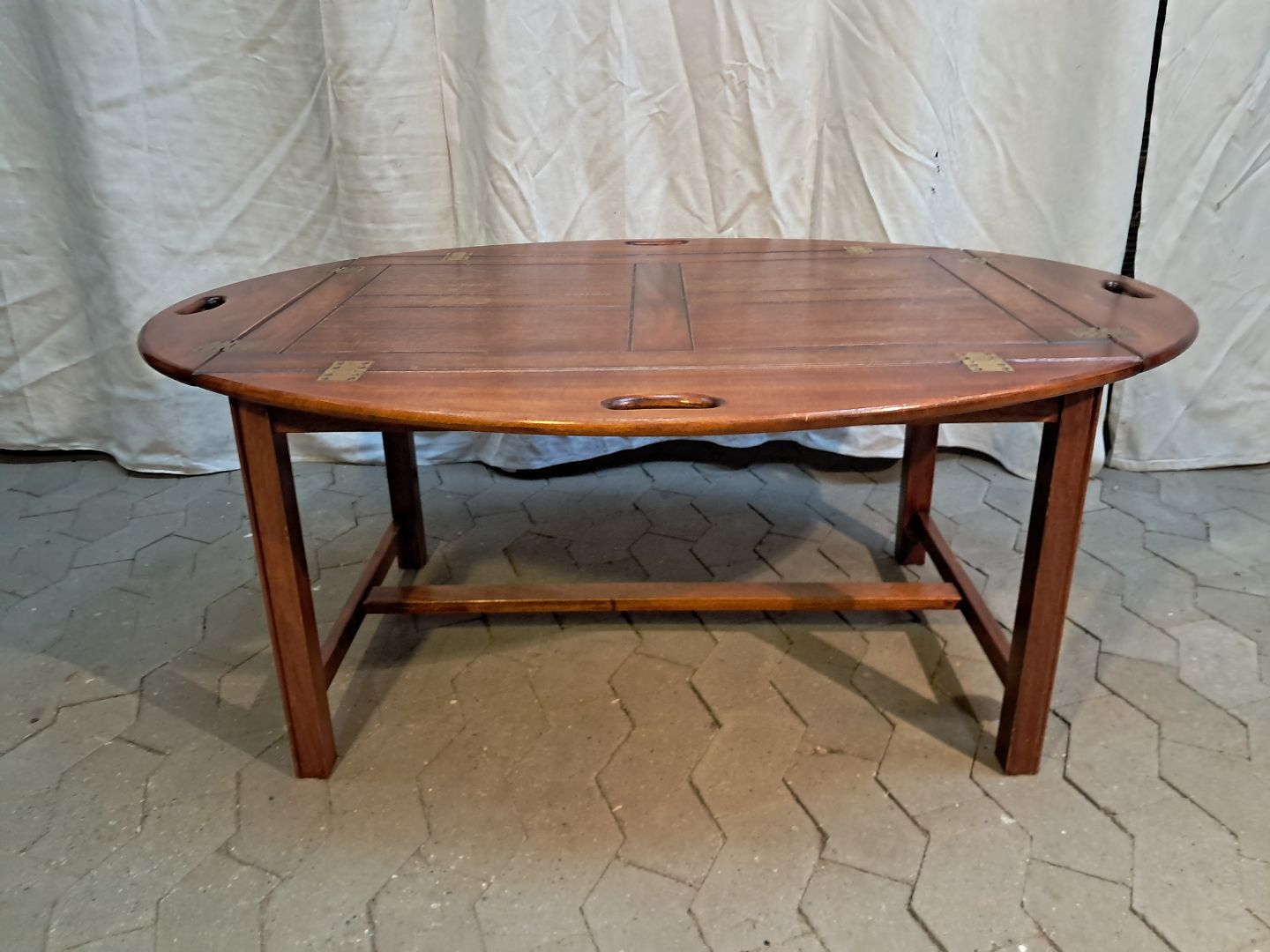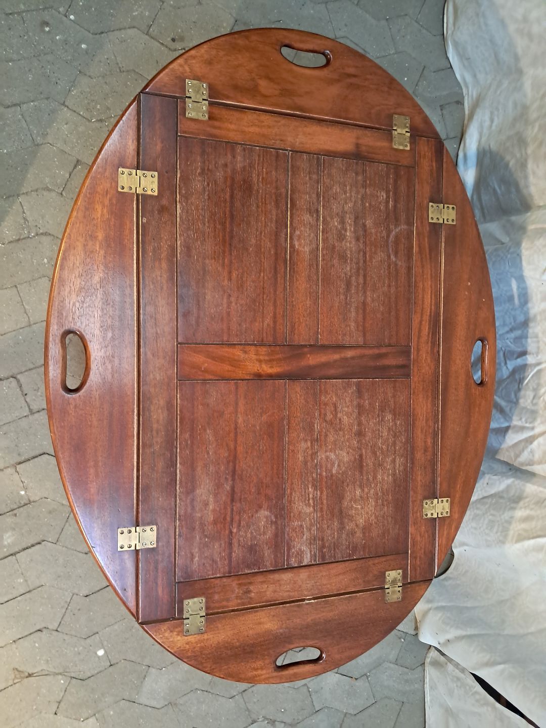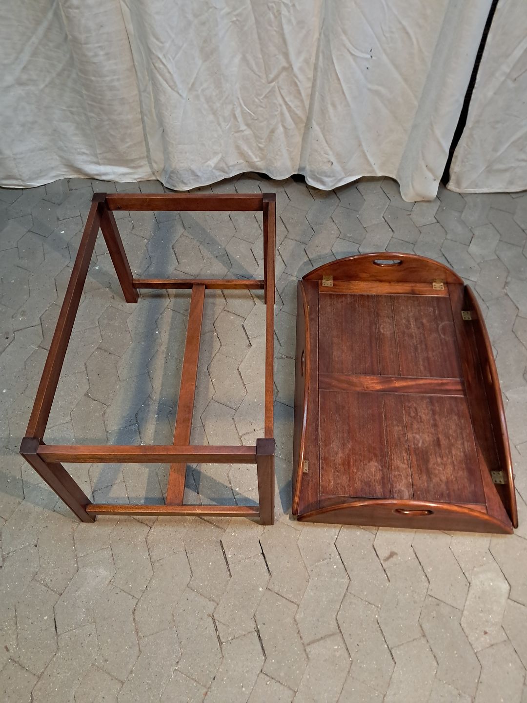 Butlers tray i fineret og massivt mahogni, fra 1980erne.Det har brugsspor.