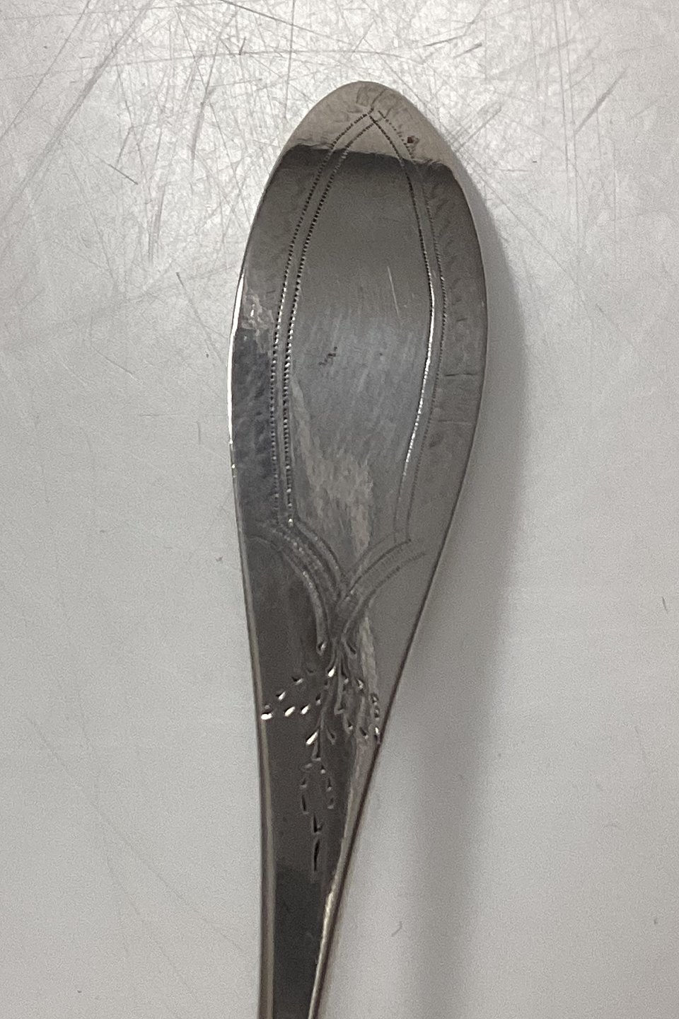 Ornamental Dekorations ske i sølv 1832 med Sneglehus