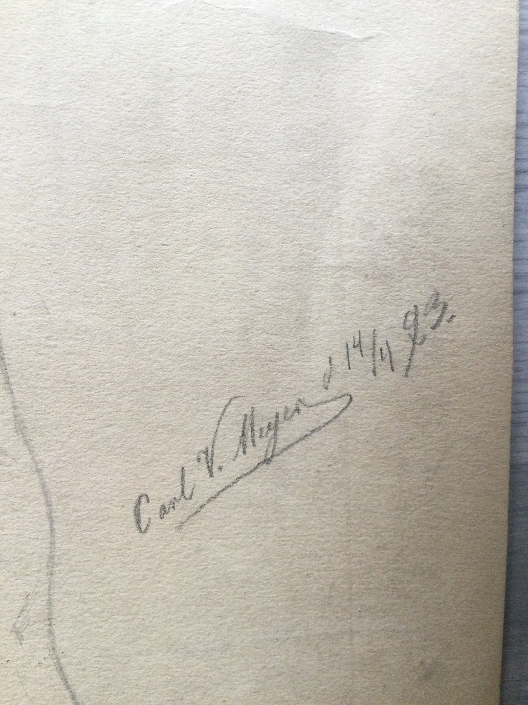 Akademitegning af Carl V. Meyer - Nøgen mand med kølle - Den Farnesiske Herkules 1893.