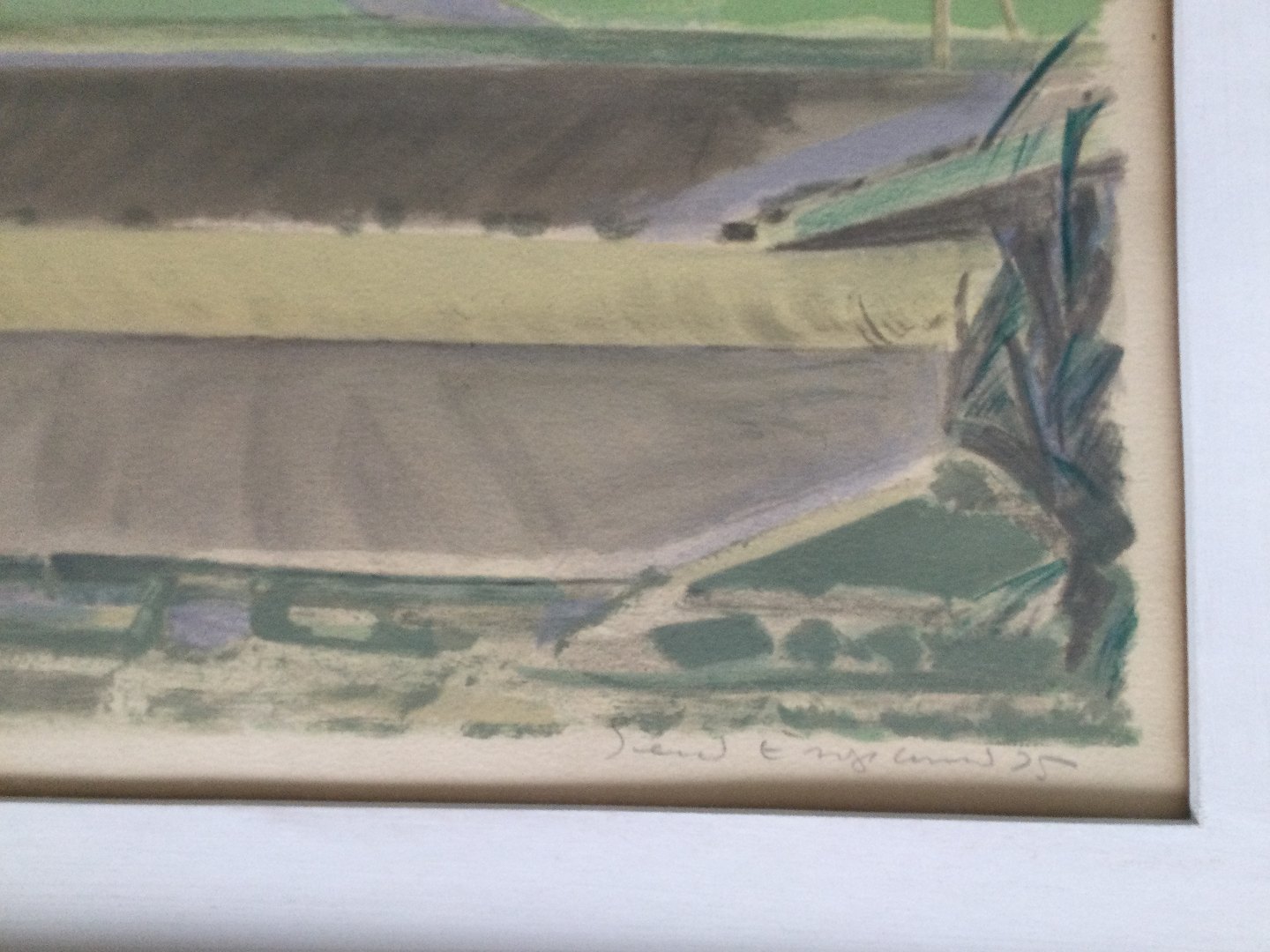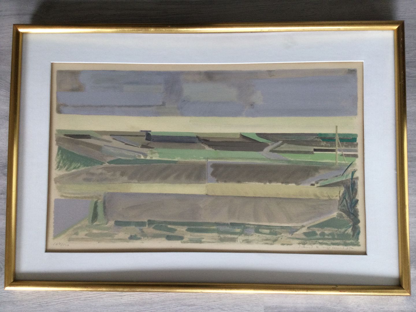 Farvelitografi af Svend Engelund - Nordjysk landskab 1975.