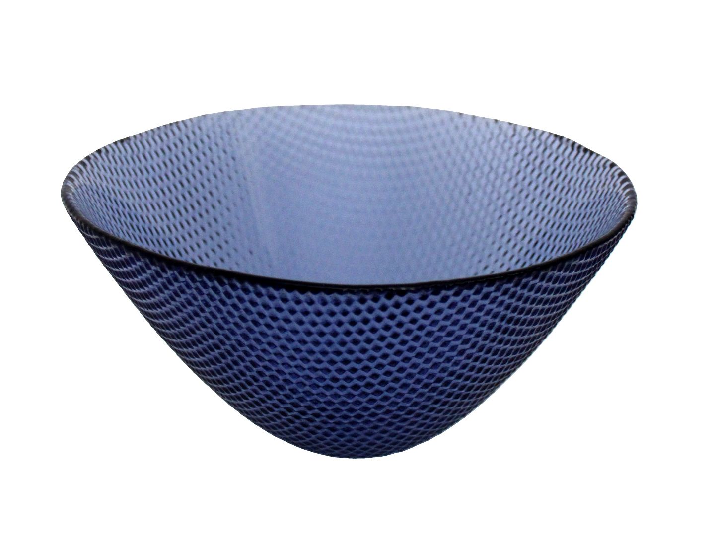 Holmegaard, Trigona skål i lilla/lavendelfarvet glas. Designet af Torben Jørgensen i 1988 for Royal Copenhagen. Centrifugeret serie, glat indre og kube mønstret yderside. Lavendelfarven er ikke ramt rigtigt på fotos, hvor den virker nærmest blå. Trigona serien er også produceret i klar, grøn og blåt glas. Diameter 25 cm. Højde 12,5 cm. Pris: 250 kr. stk. Lager: 1 Händler