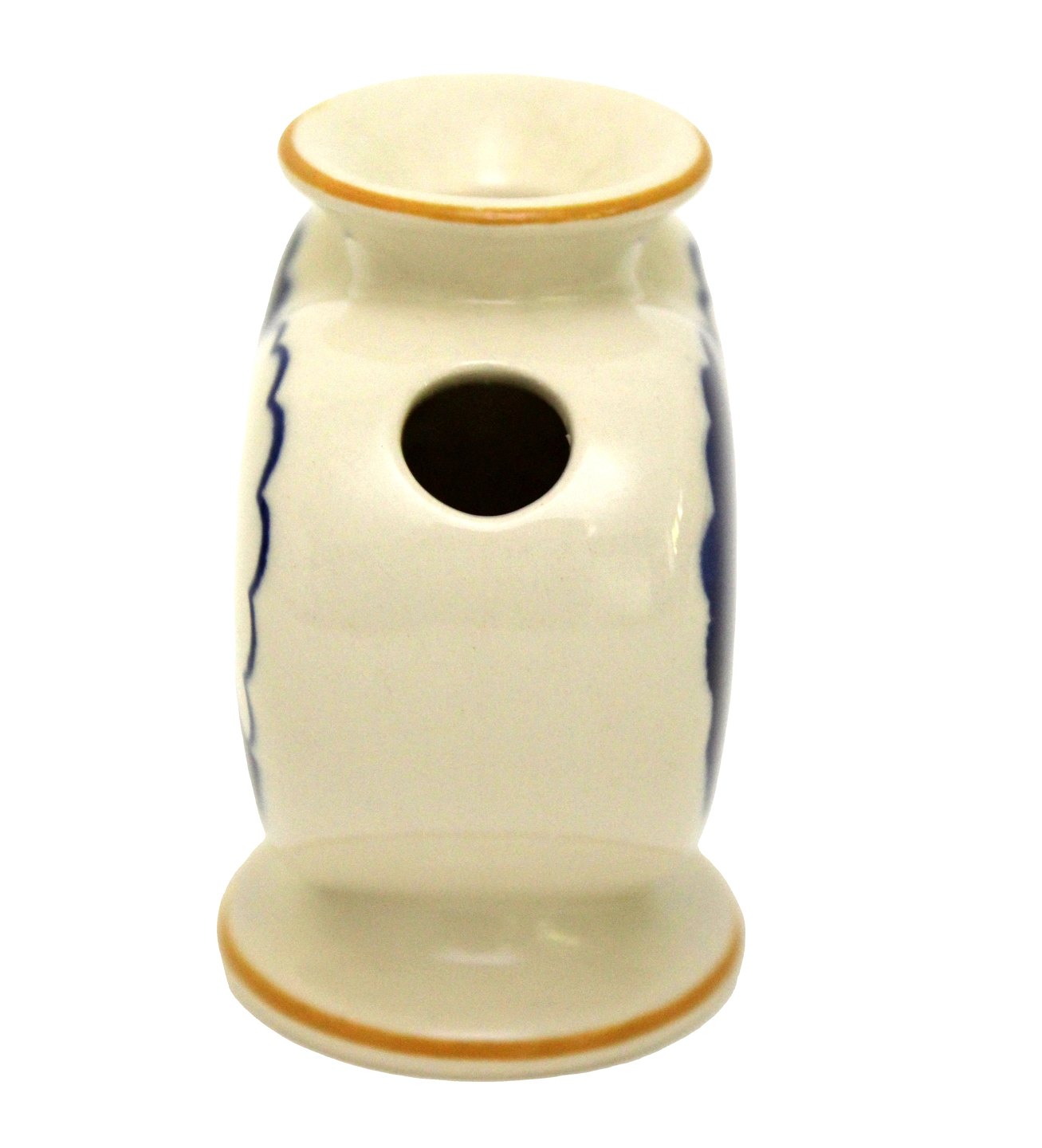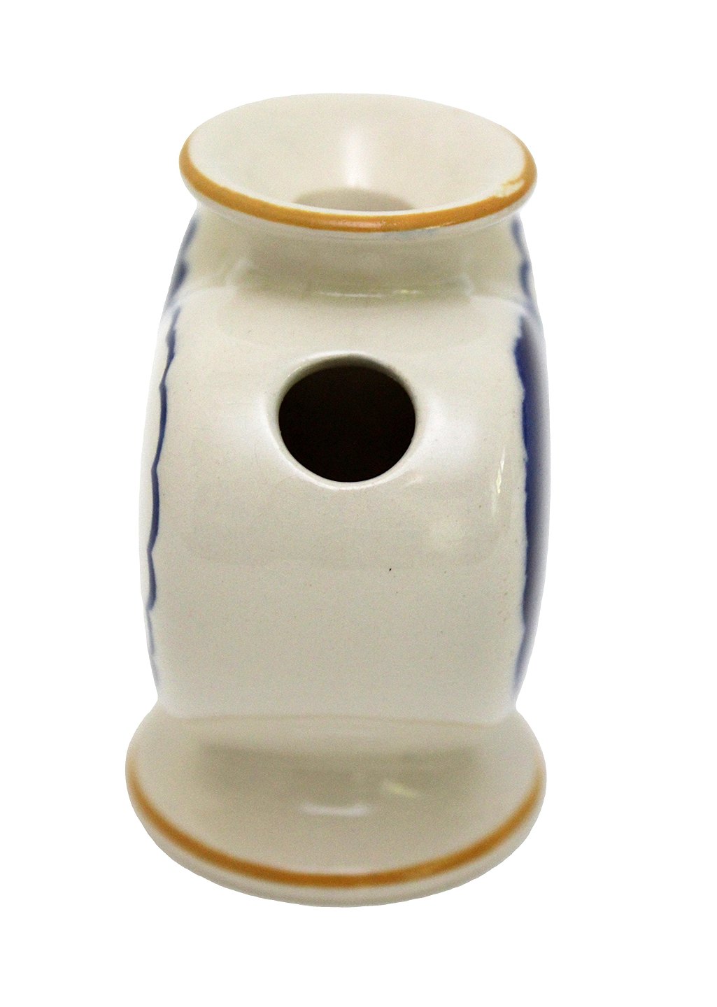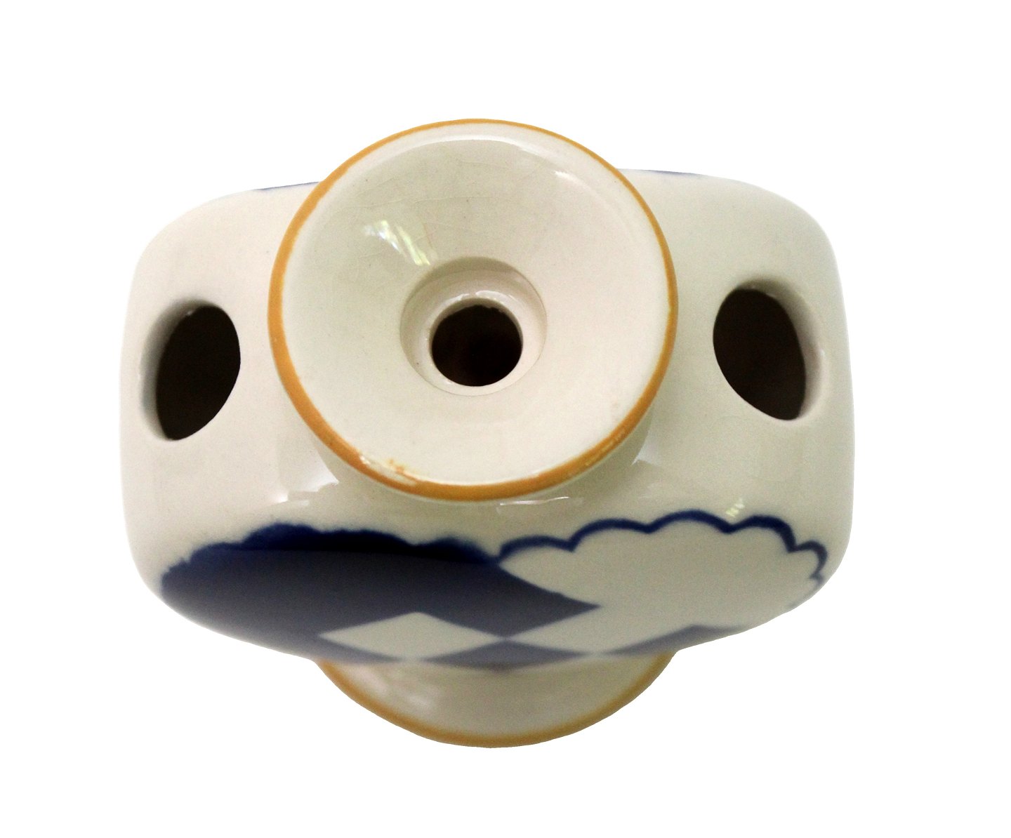 Aluminia, Blåt Julehjerte med gule kanter. Flot stand med få overfladekrakeleringer under kraven og manglende gul farve på kanten. Designet af Hans Henrik Hansen i 1944. Højde 7,7 cm. Bredde 7,6 cm. Pris: 1300 kr.